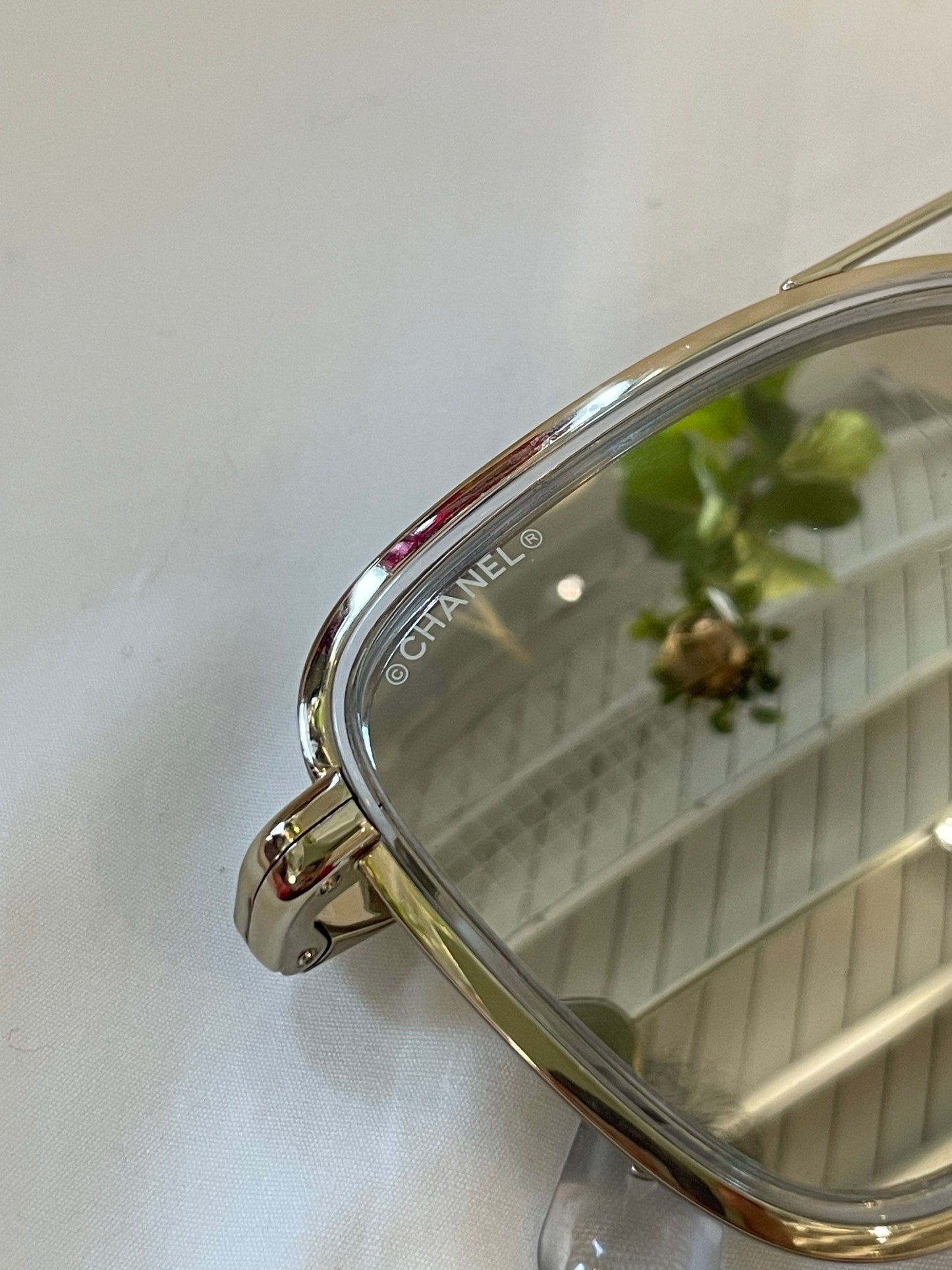 Chanel Silver Frame Pilot Mirrored Sunglasses