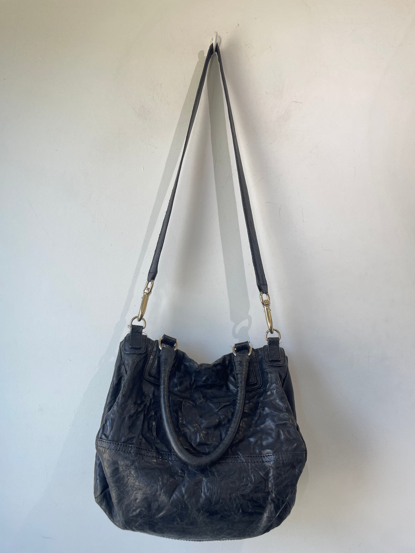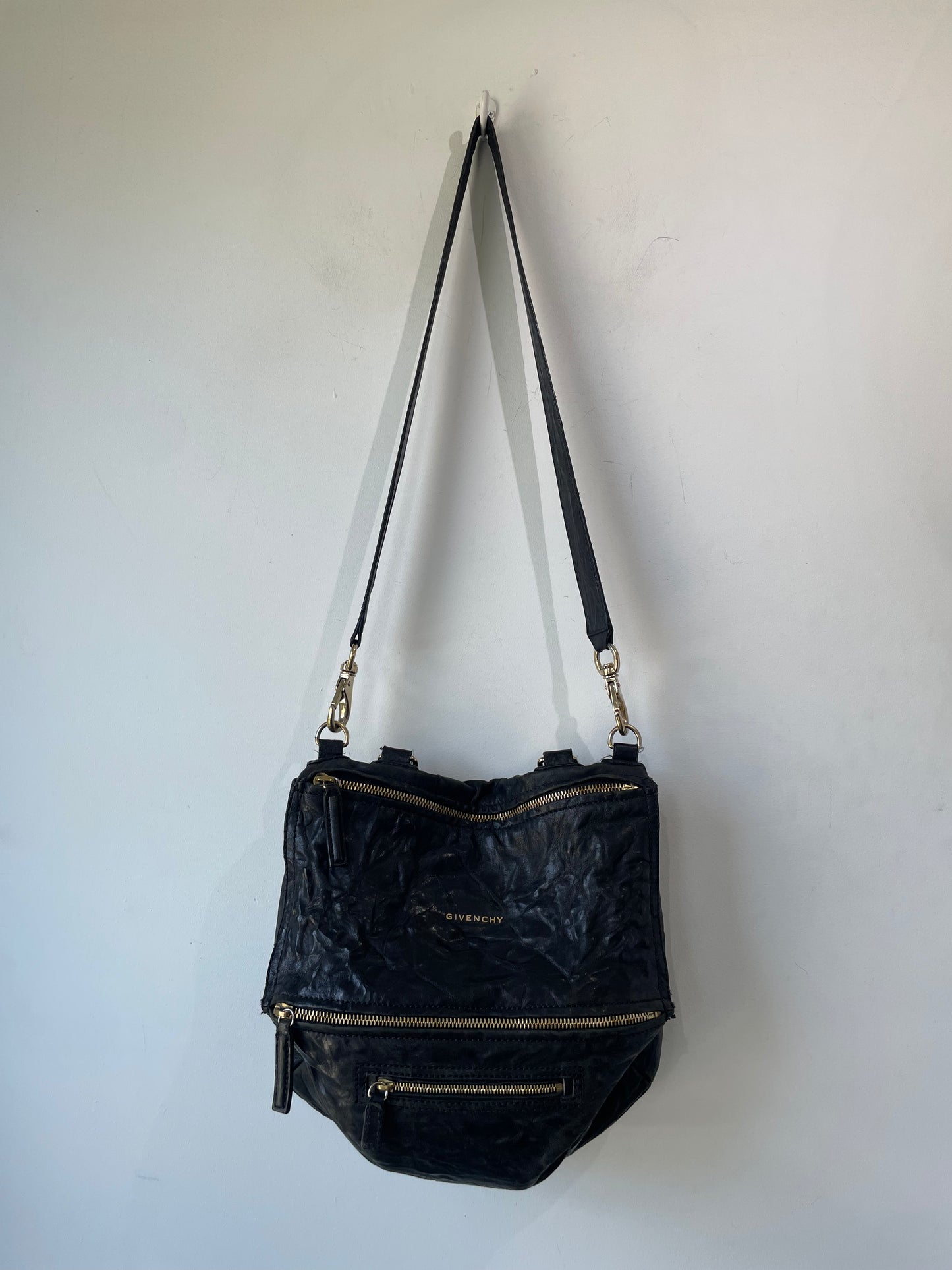 Givenchy Black Pandora Bag in a soft textured leather and gold hardware The iconic Pandora bag shape with three zipper design. Features two handles to adjust length to shoulder bag or handbag style. In excellent condition