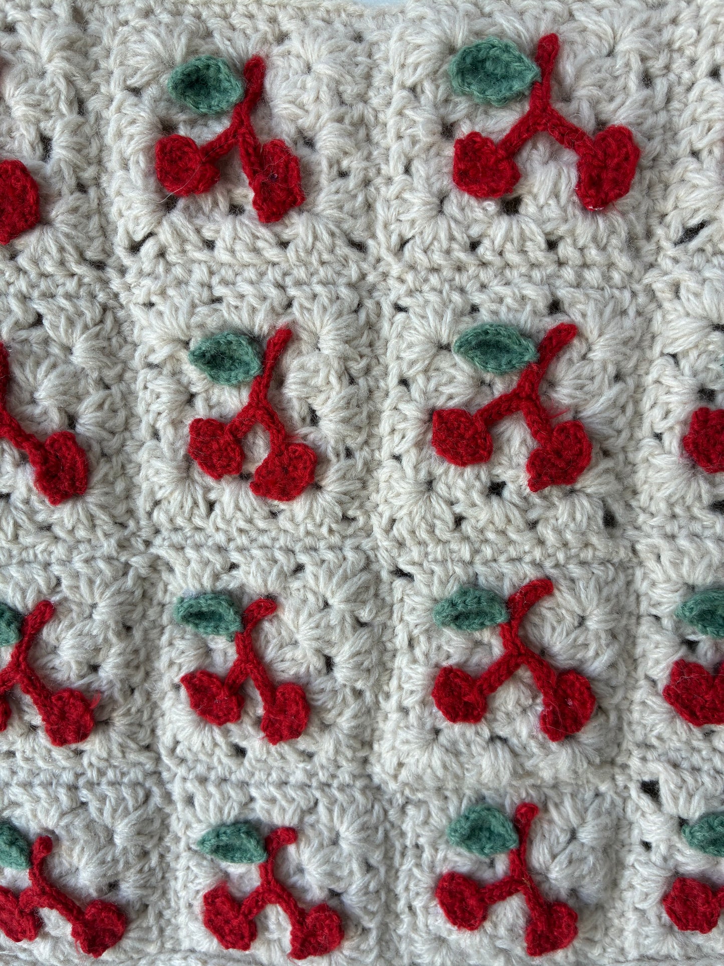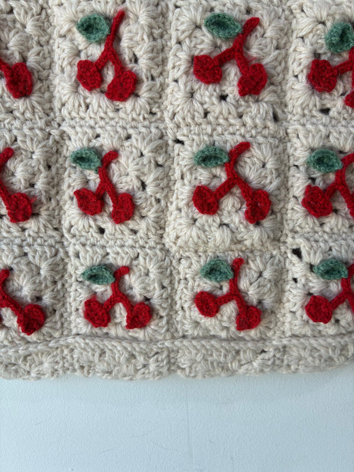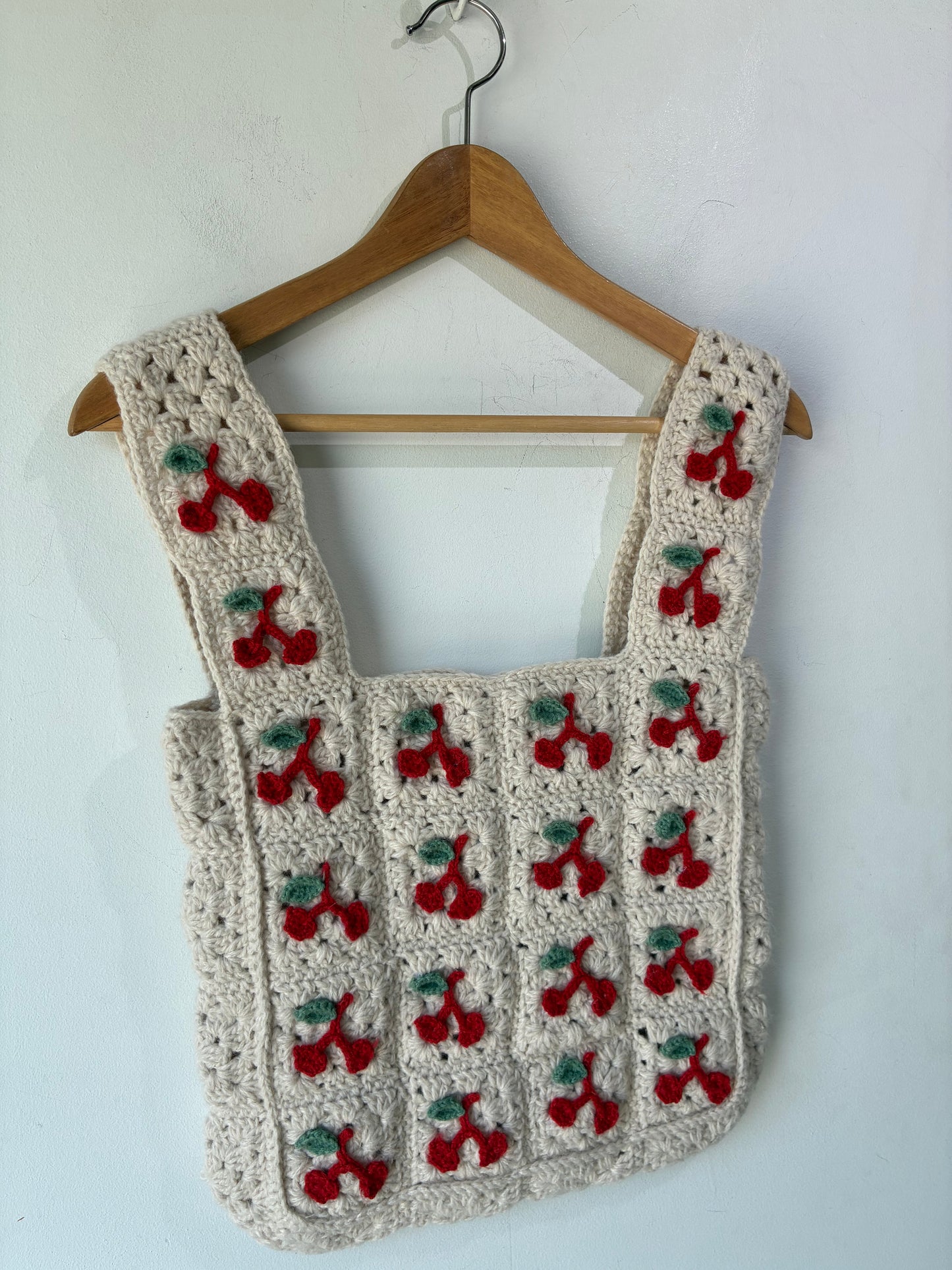 Hansel from Basel Cherries Shopper Bag. Haul your haul fashionably with this adorable, granny square crochet, two-handle bag featuring an appliqùe crochet cherry motif. Roomy and functional, this is the bag that you are going to want to take everywhere! New with Tags.