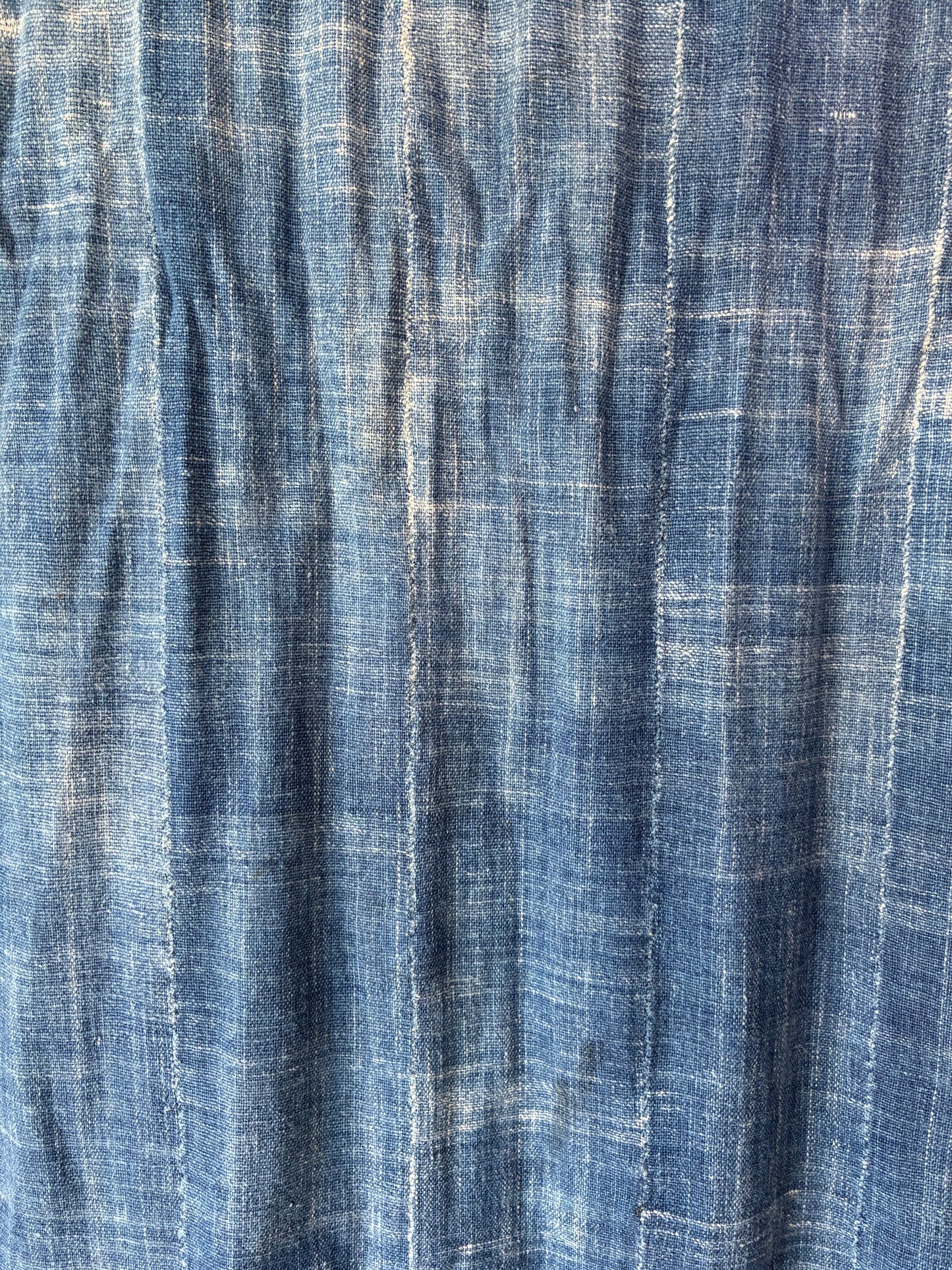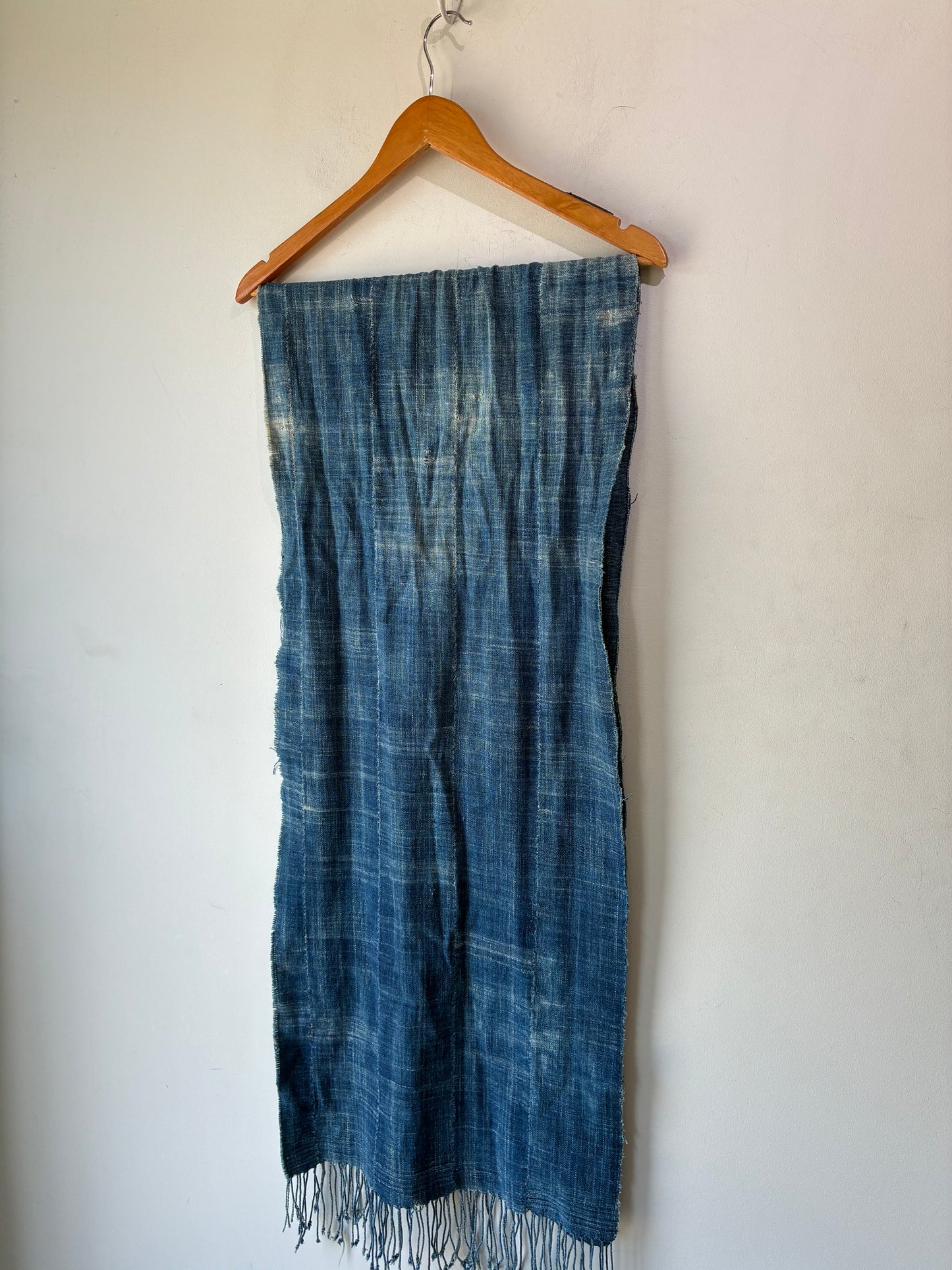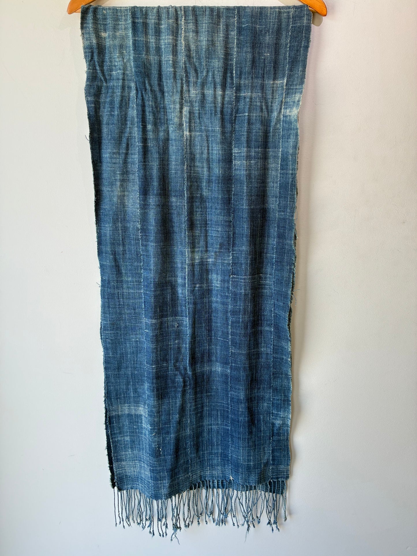 Indigo Mud Cloth Scarf. Earthy and simply wonderful, this woven scarf features strips of fabric in the loveliest hand-dyed indigo tone sewn together and tasseled fringe ends. Versatile and functional, it would also work as a table runner or throw. However you use it, it is sure to add a touch of beauty to your day.