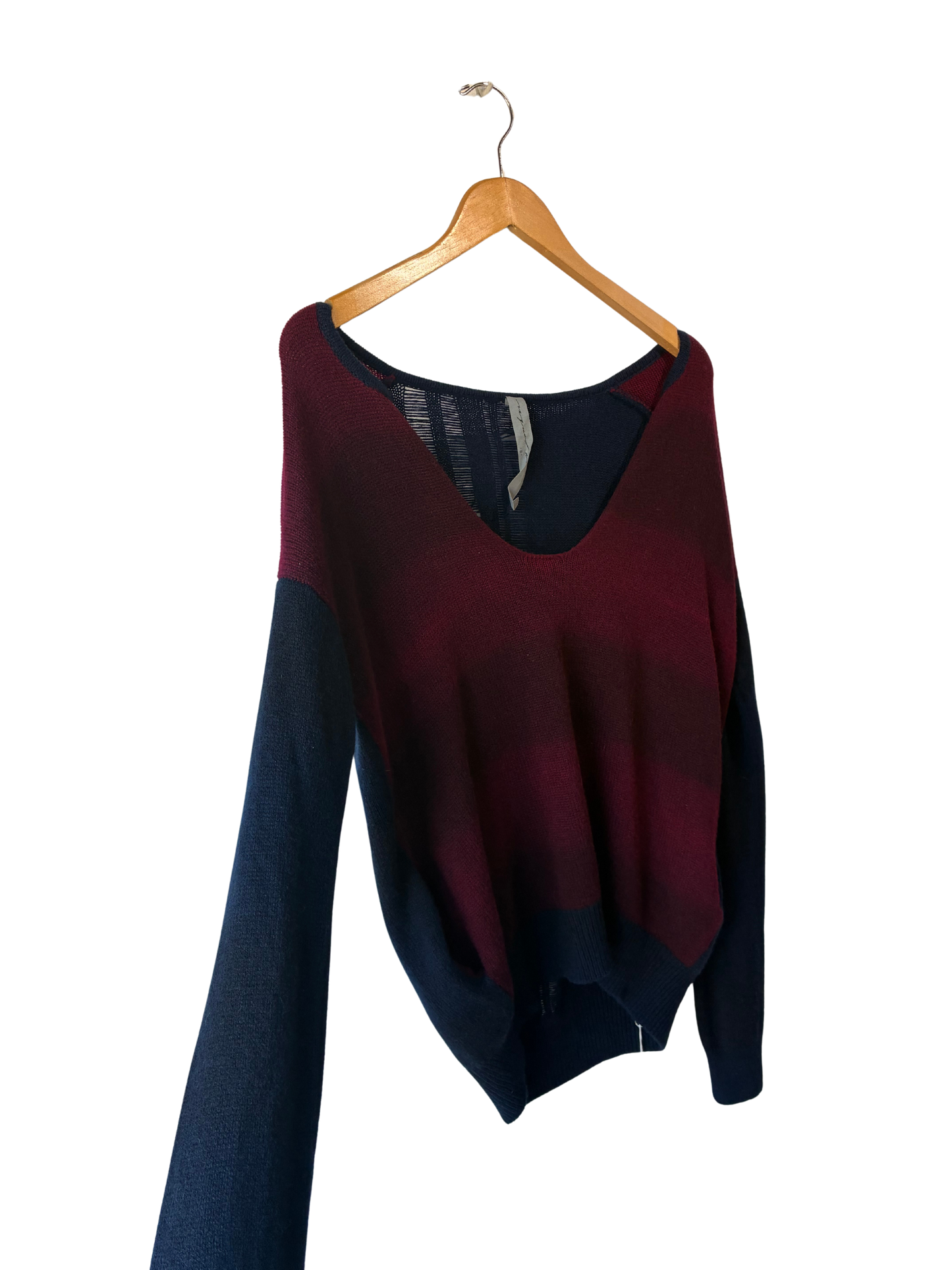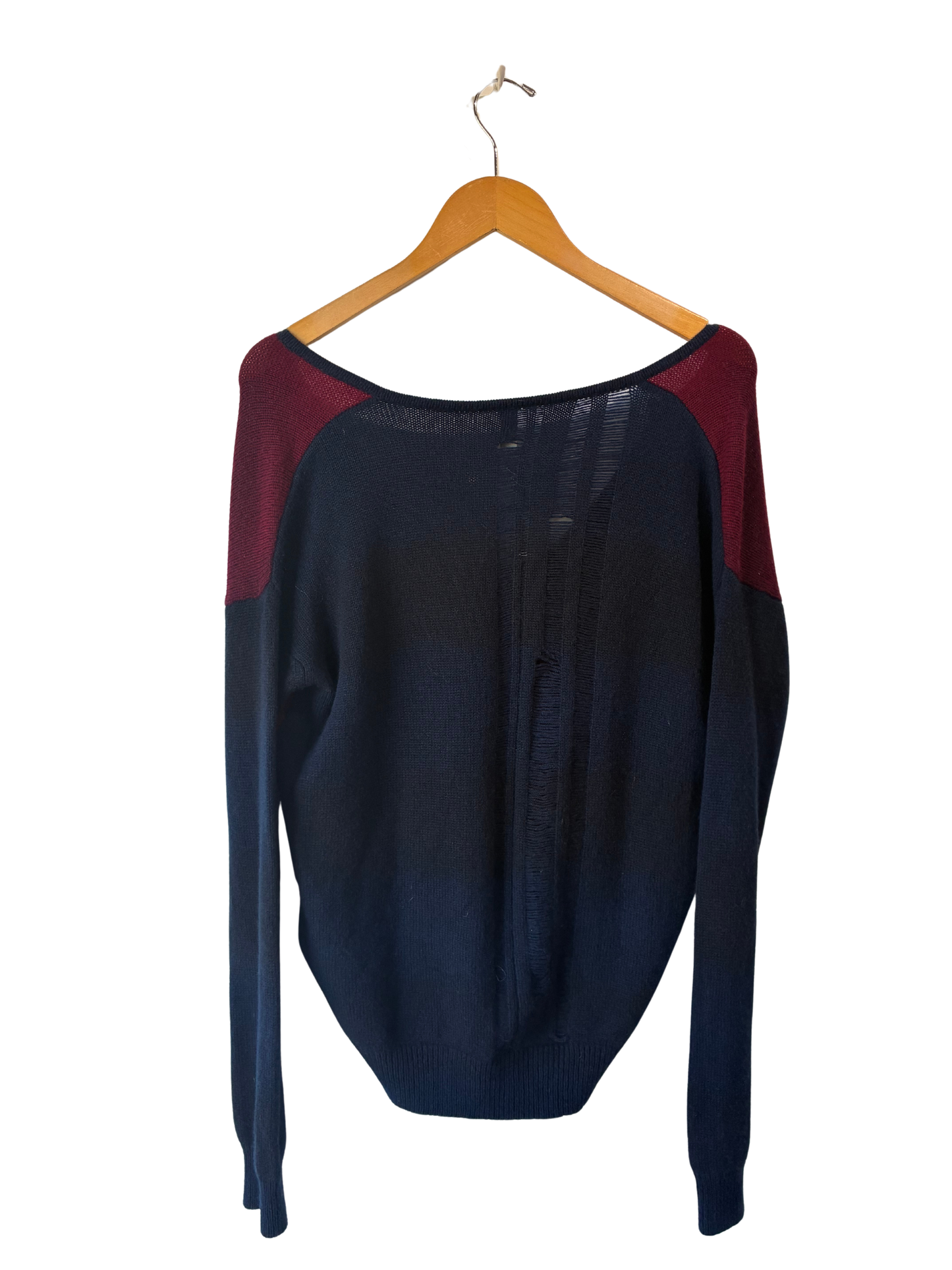 Raquel Allegra Maroon and Navy Shred Back Sweater
