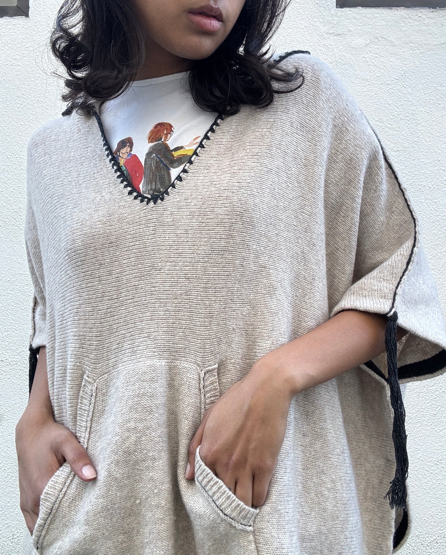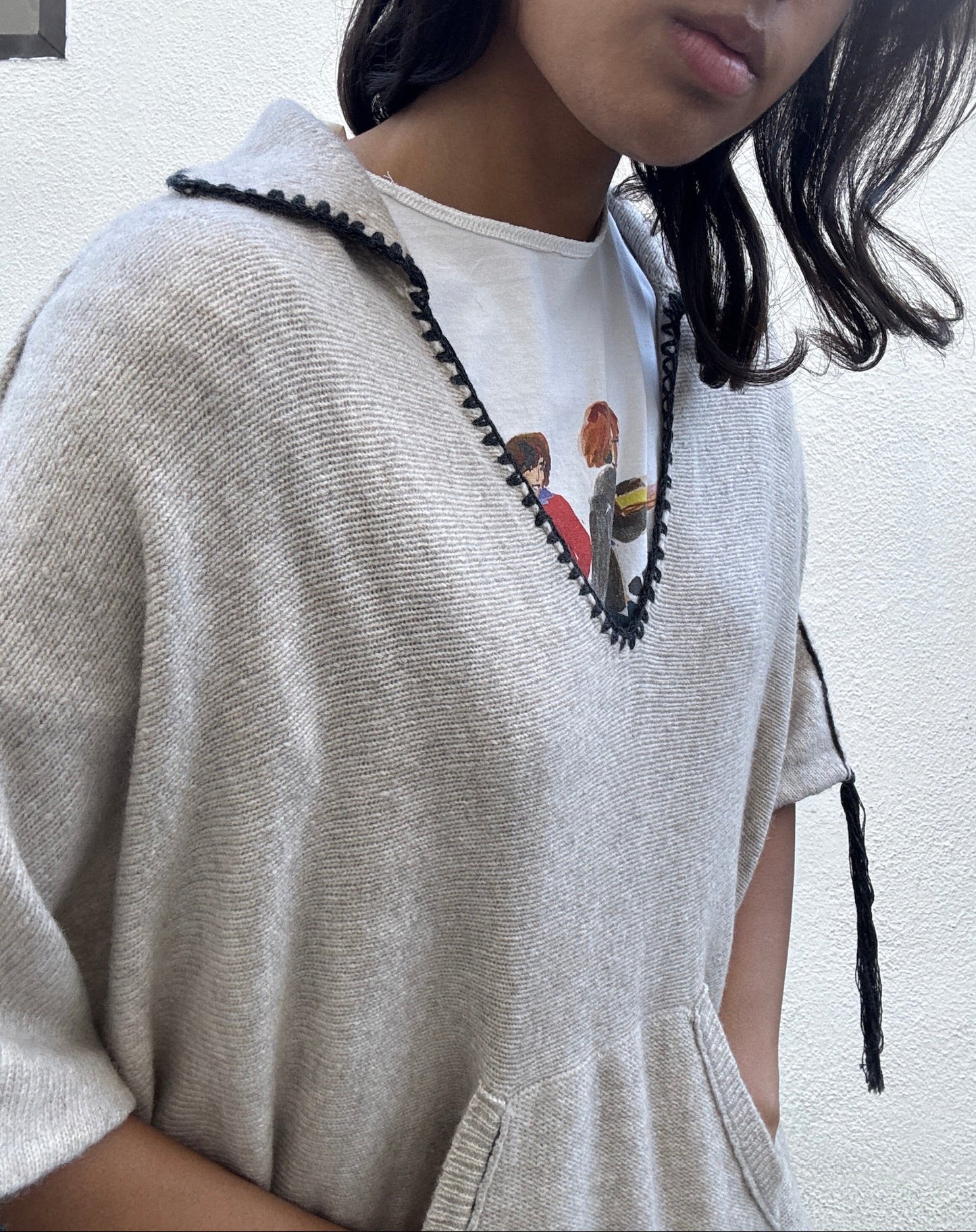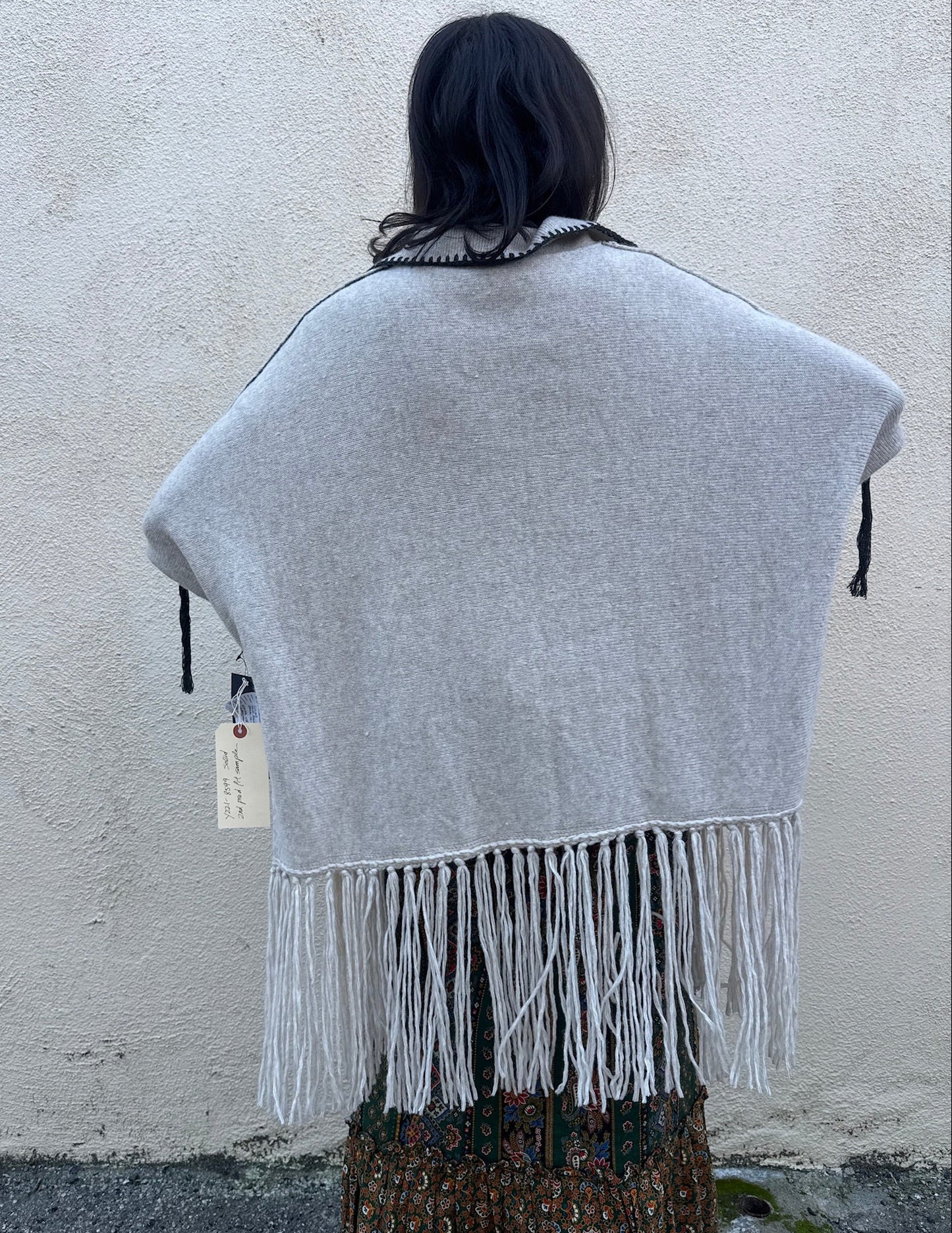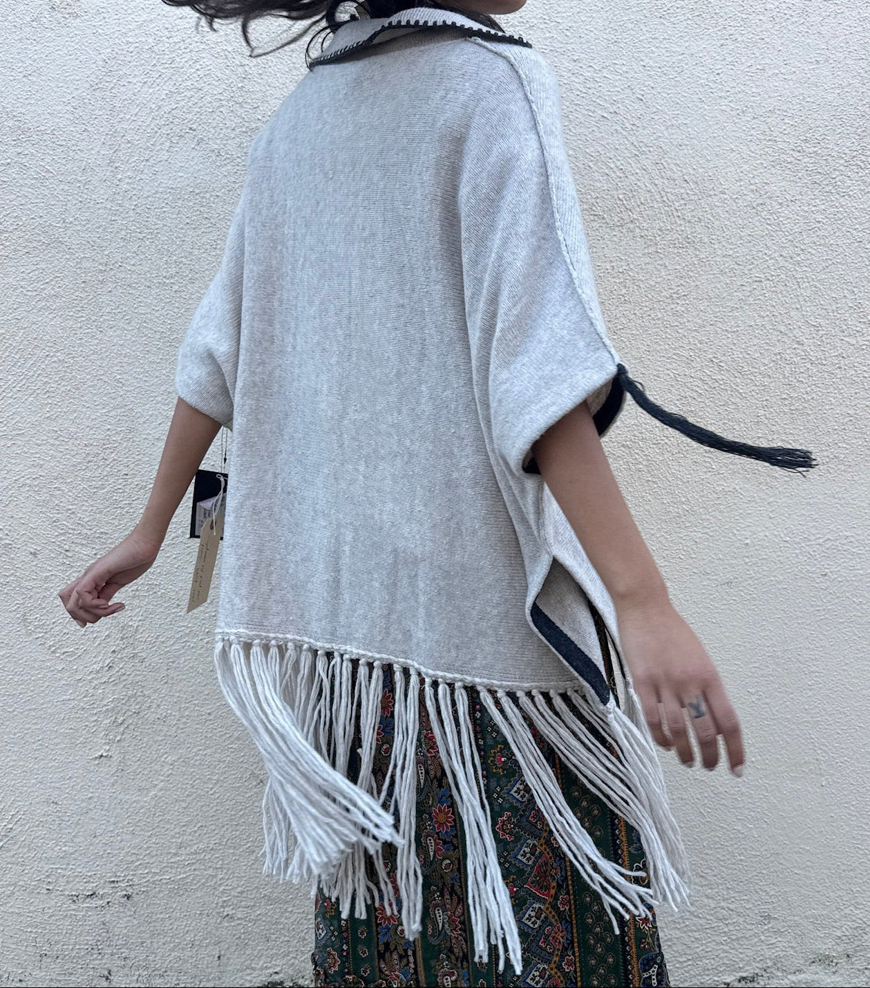 Raquel Allegra Oatmeal Cashmere Blend Fringed Short Poncho