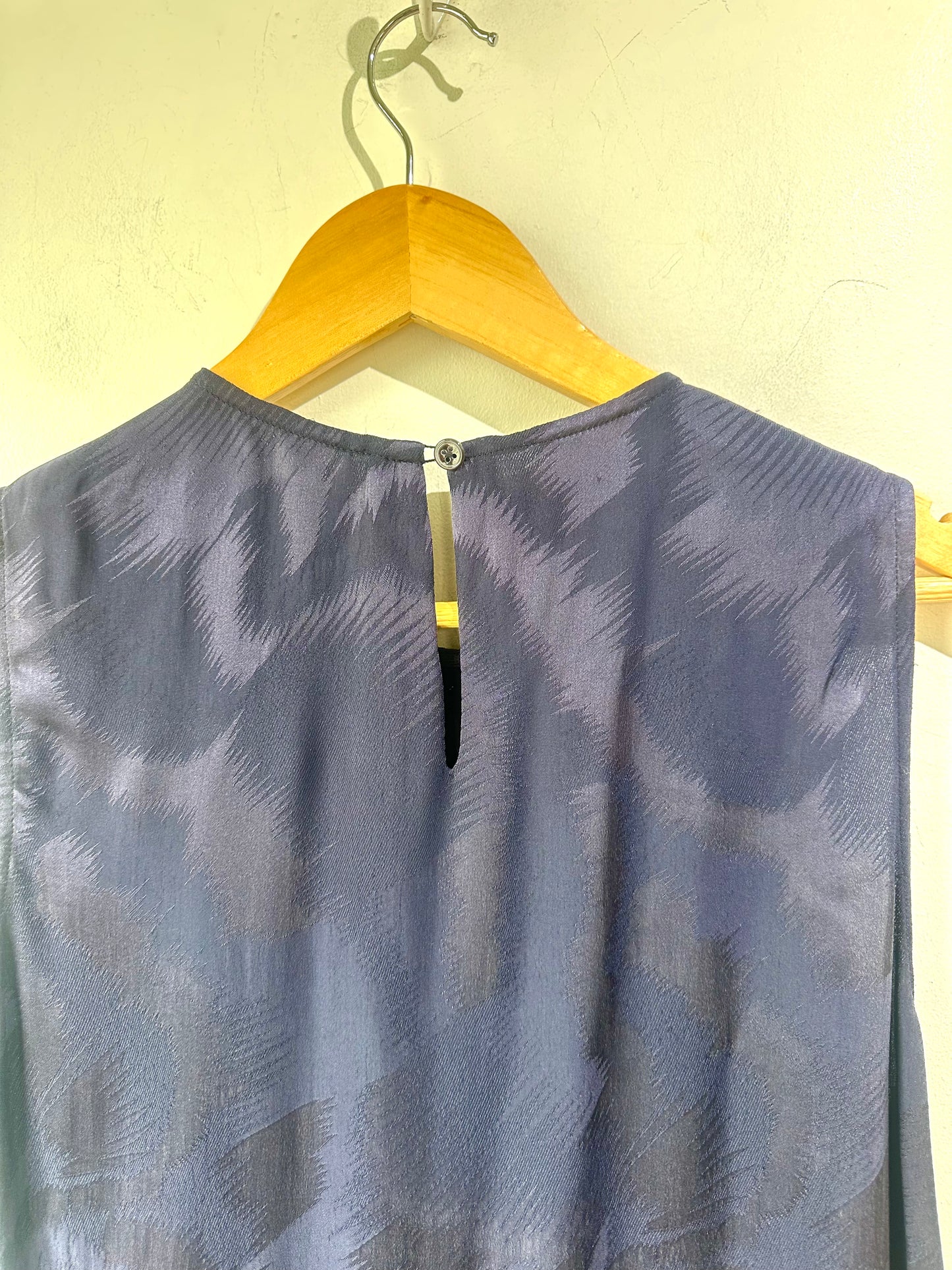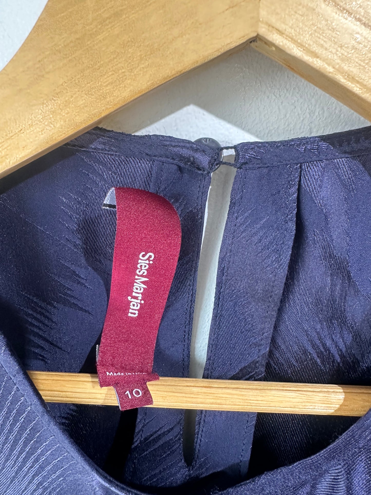 Crafted from a silk and viscose blend in a rich navy hue, this sleeveless top from Sies Marjan features a subtle abstract pattern and an elegantly asymmetrical hem. Effortlessly refined yet versatile, it’s the definition of an elevated staple: easy to dress up or down, timelessly chic, and full of understated detail.