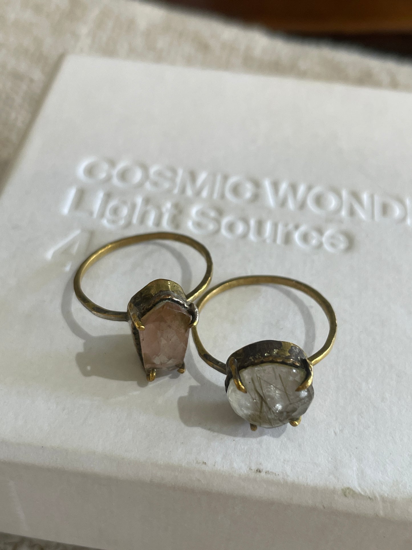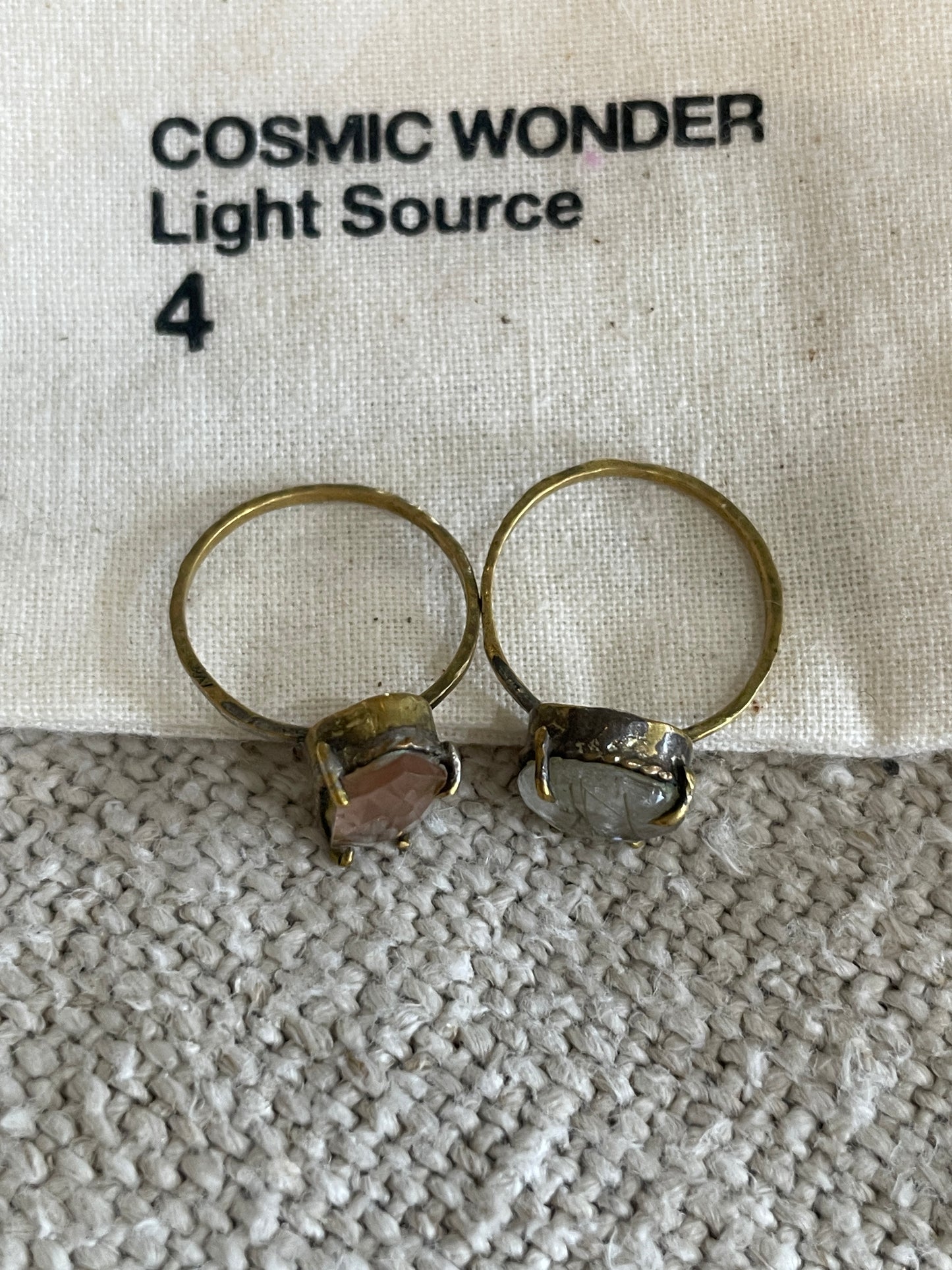 Cosmic Wonder Light Source Crystal Rings Set. A beautiful set of two rings. Featuring lovely antique gold color and rough cut crystal stone. Size 6