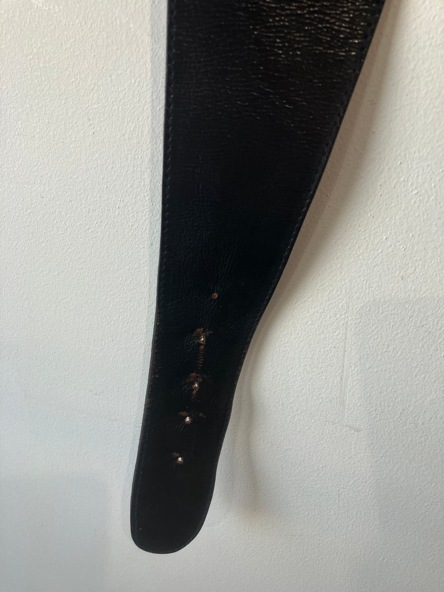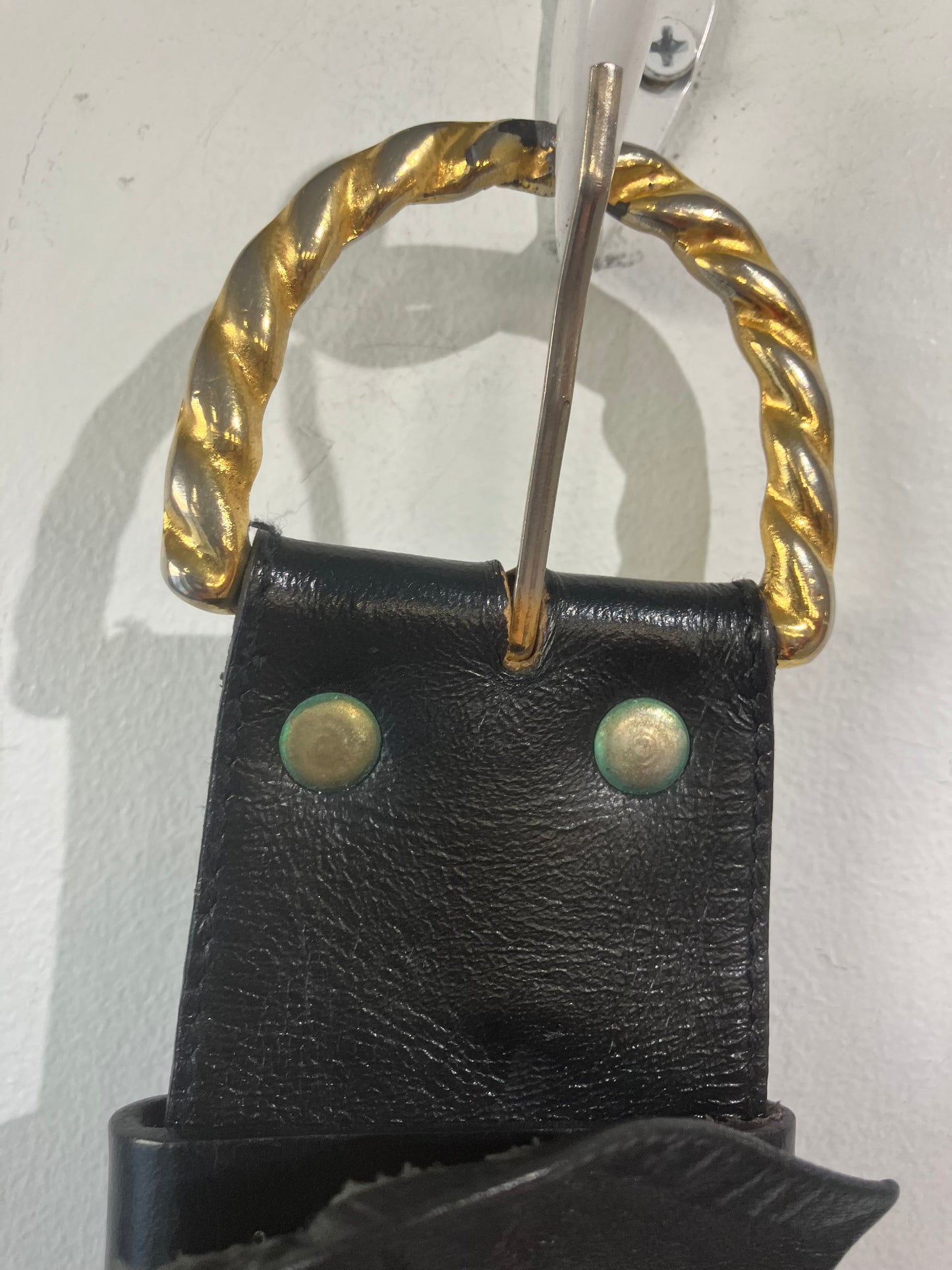 Vintage Black Leather Belt with Bow. Very fun glam rocker belt. Black matte leather with gold hardware. In great vintage condition, displaying signs of wear. See pictures, sold as is.