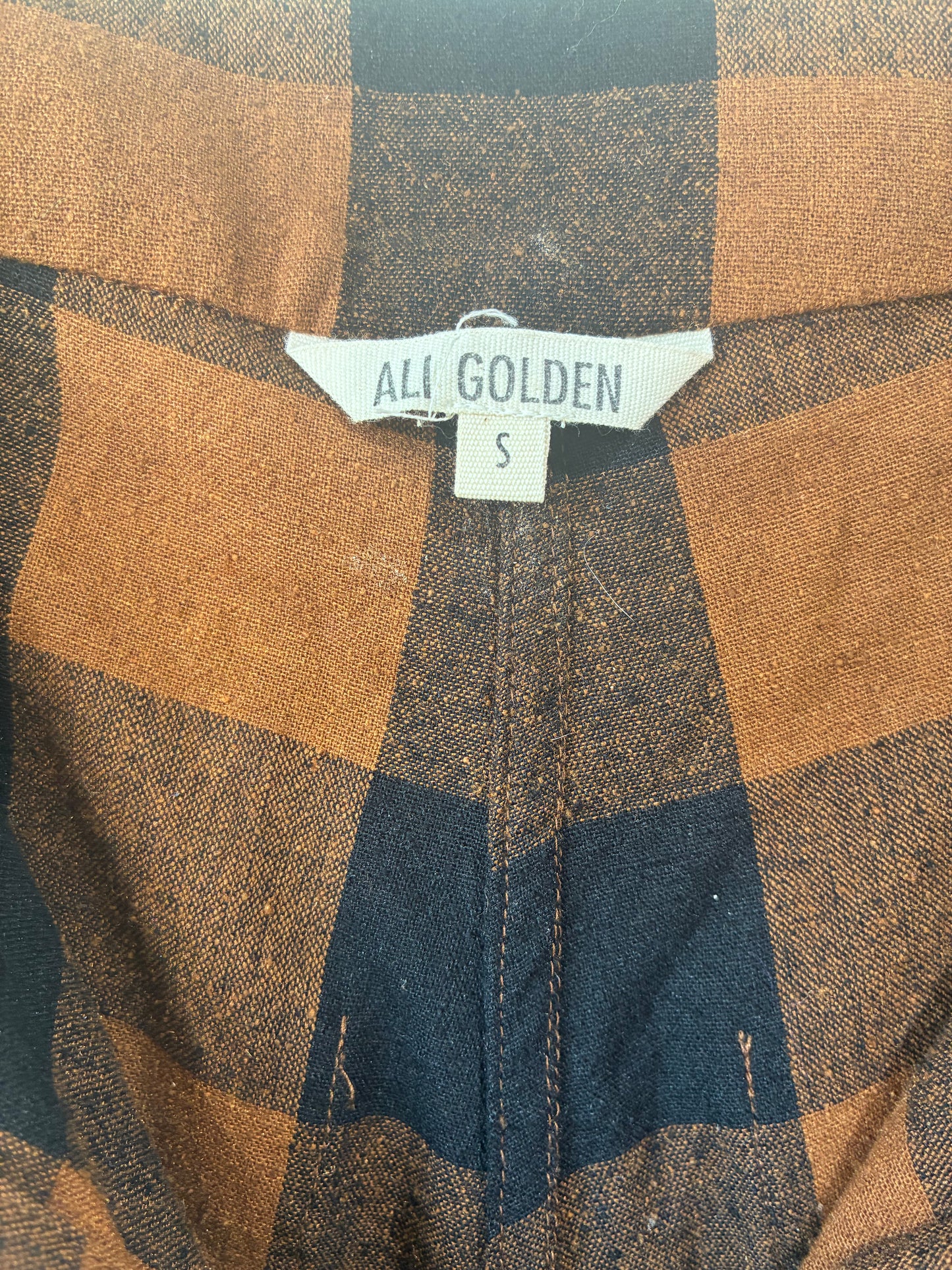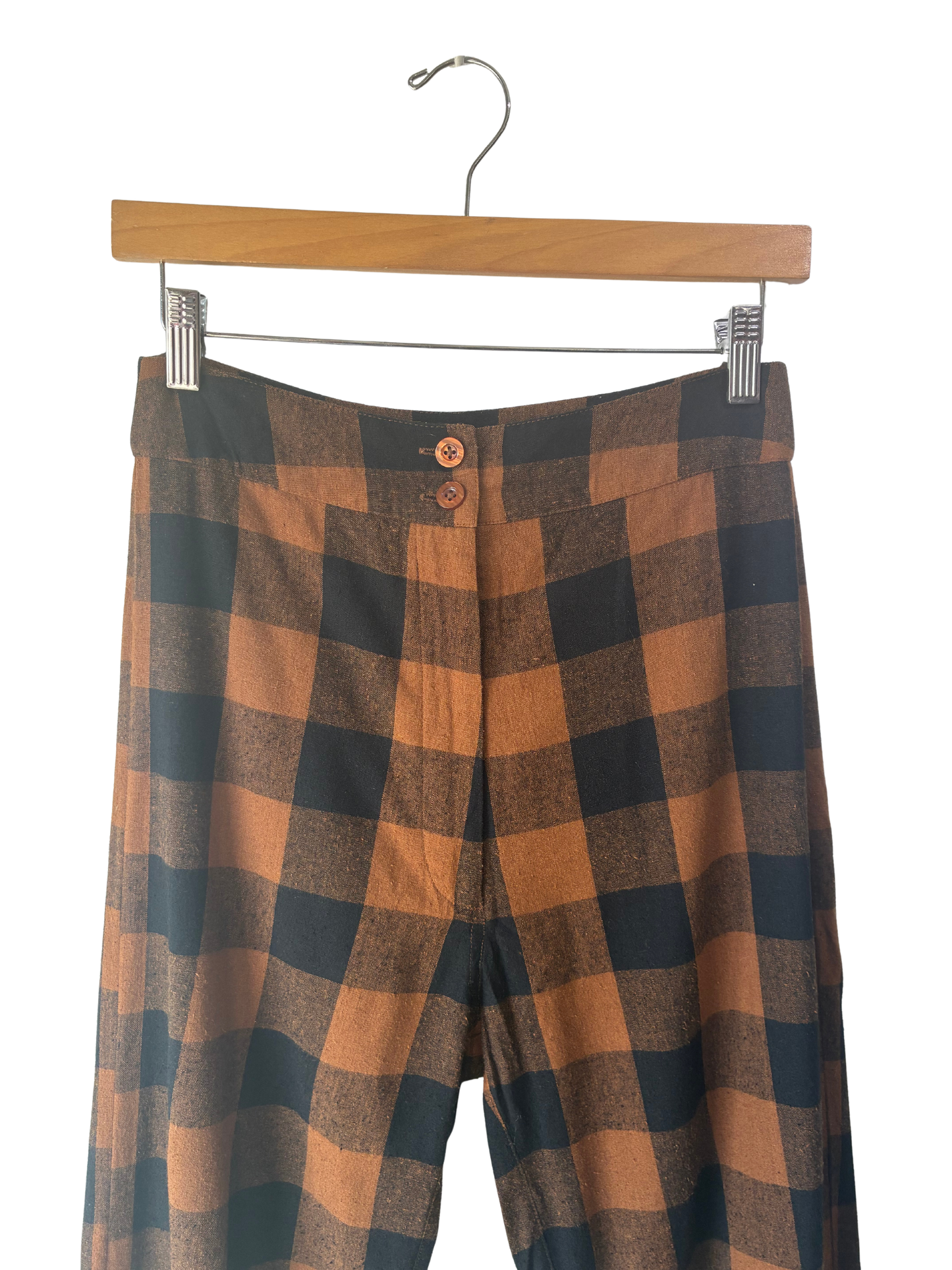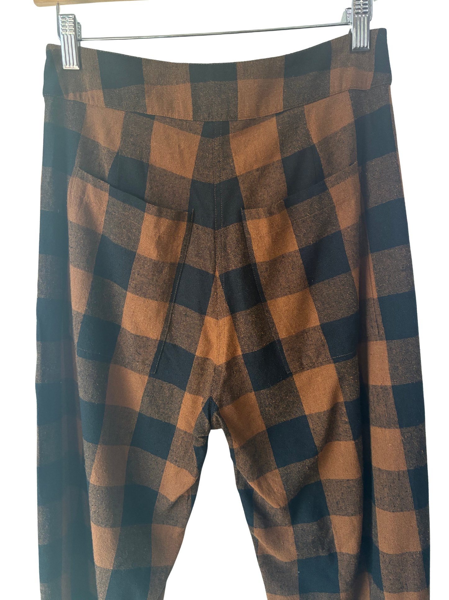 Ali Golden Brown and Black Gingham Raw Silk Pants