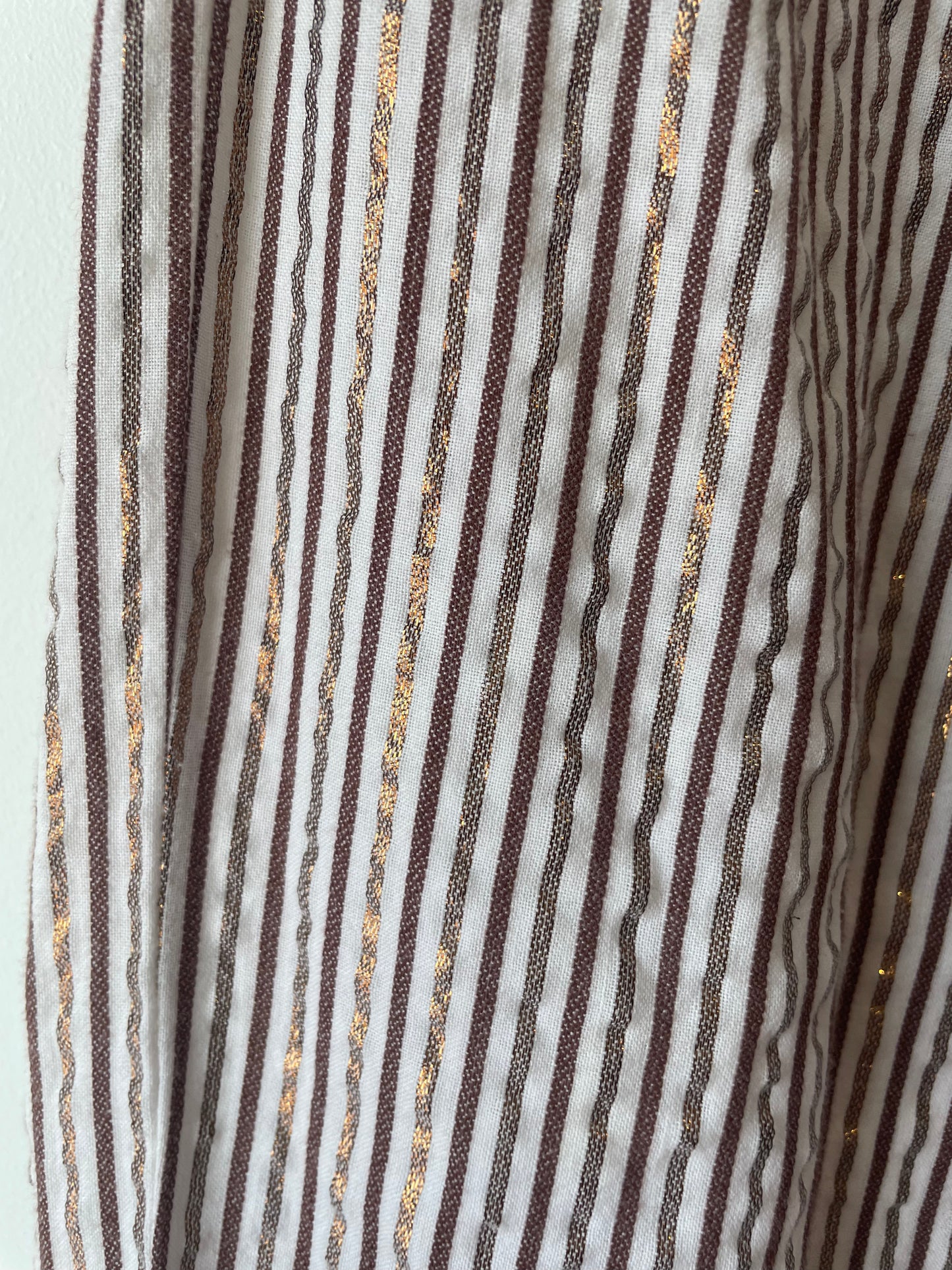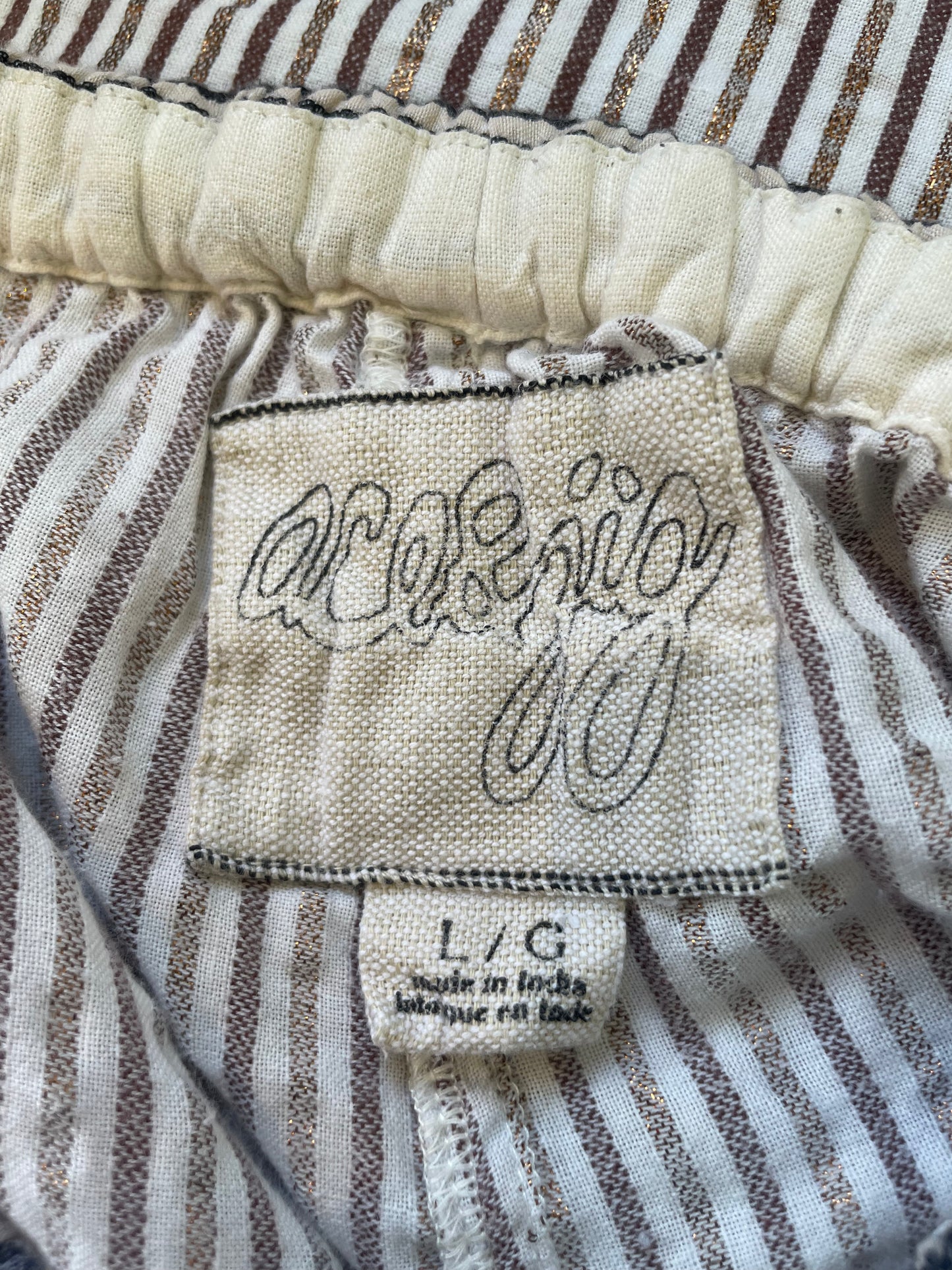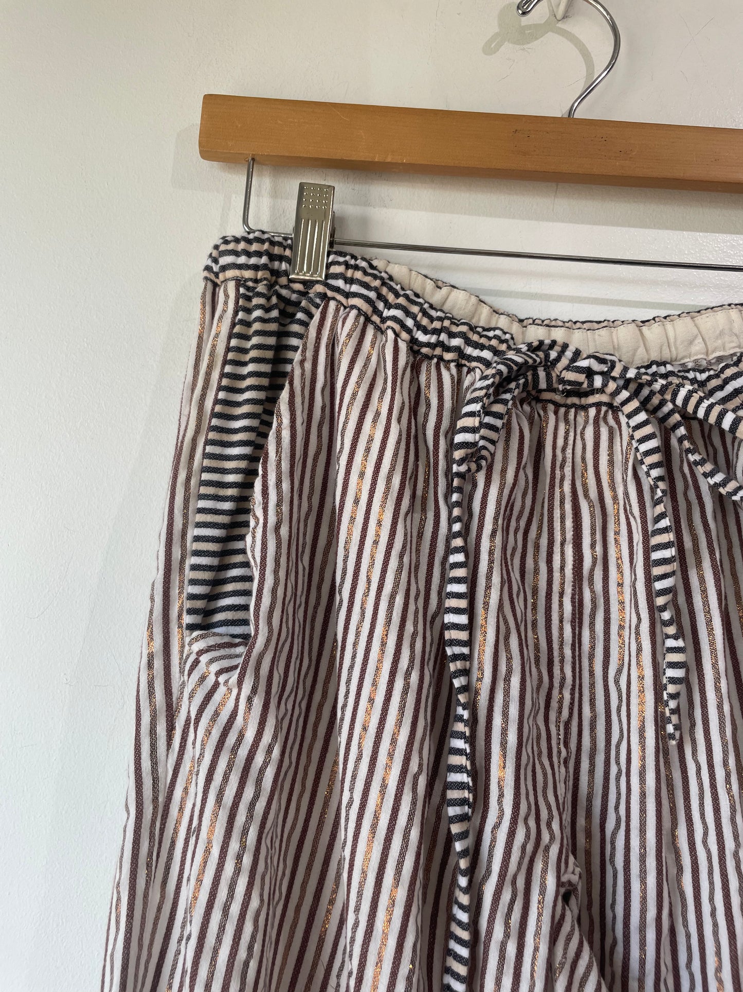 Ace & Jig Copper Stripe Pants. Super fun and comfy with a metallic stripe design. No material marked but feels like cotton. In good condition, tagged size L/G please refer to measurements.