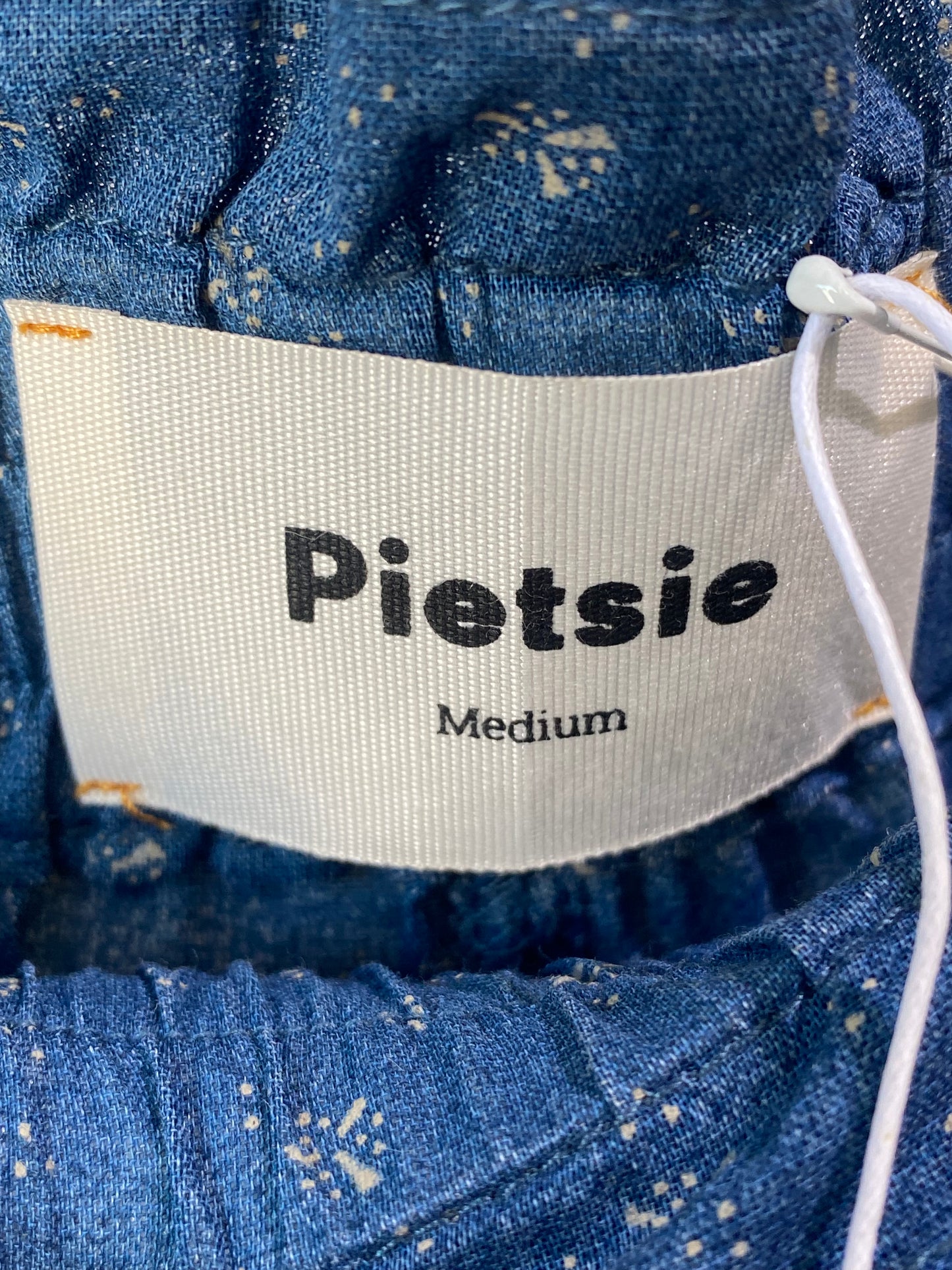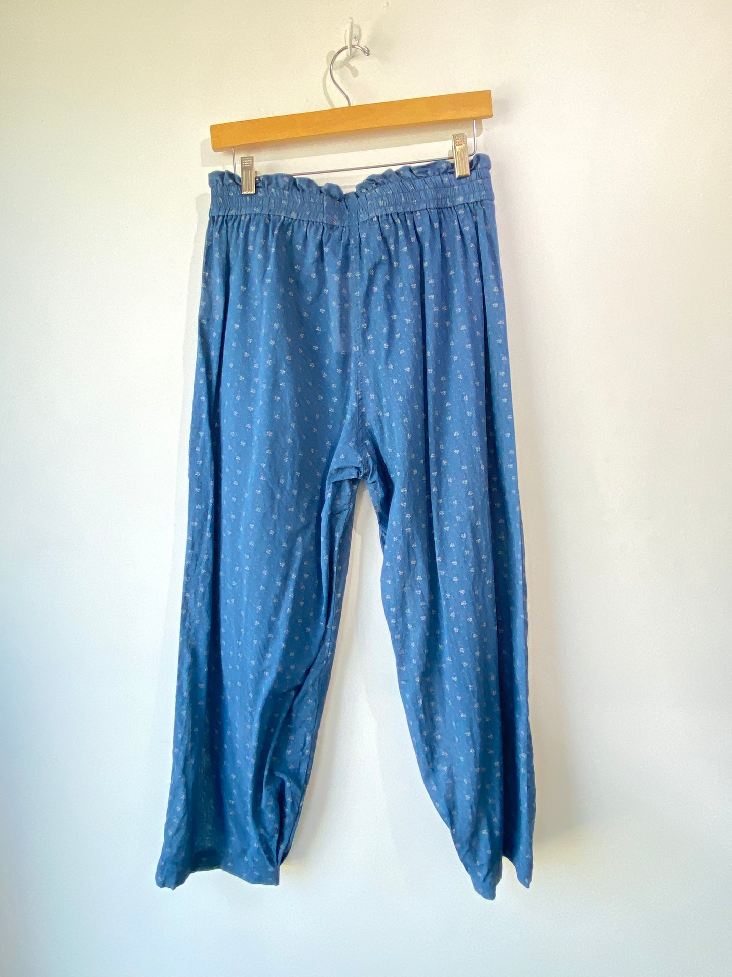 Pietsie Indigo Calico Paz Pant! 100% cotton with an elastic waistband and tapered leg. Semi-sheer/unlined. Made in California. Size medium, please refer to measurements. Brand new with tags attached!