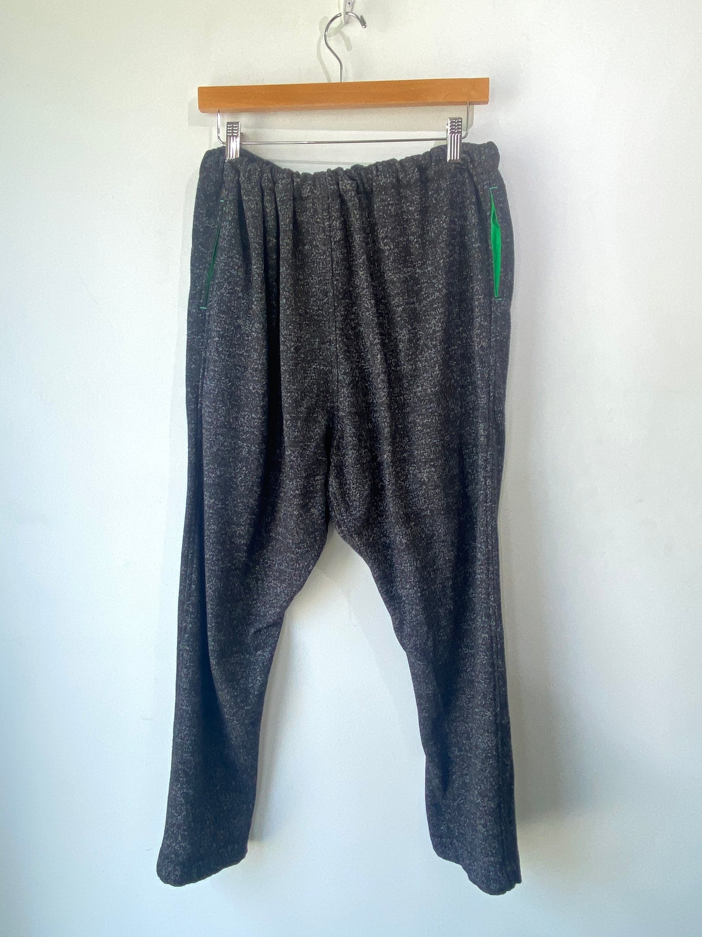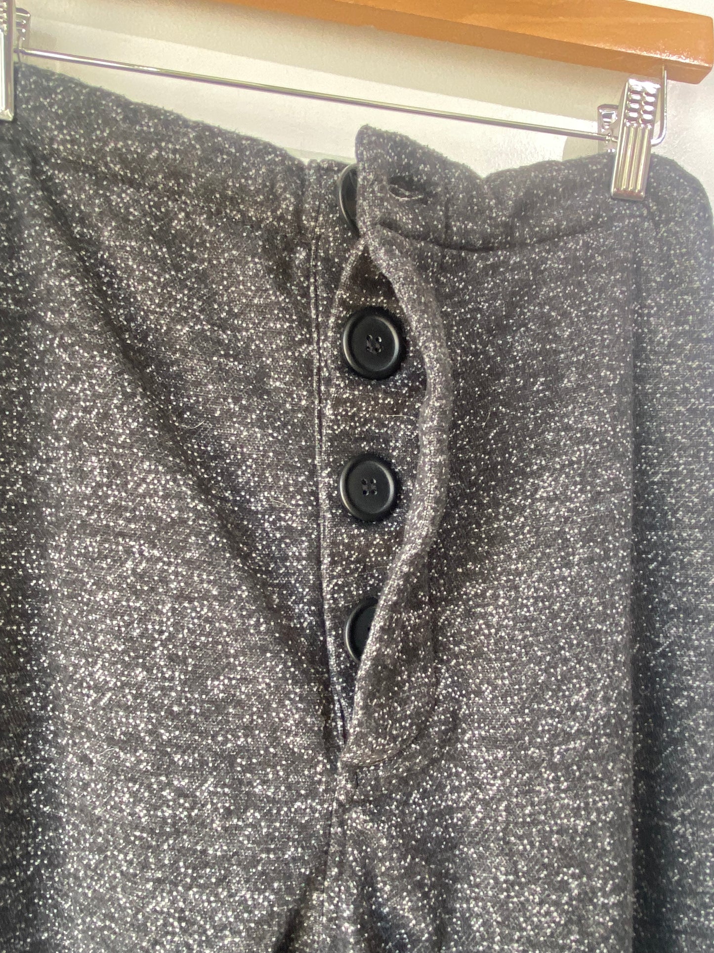 RTH Black Speckled Sweatpants! Super comfy! Feature a button fly, drawstring waist, and drop crotch. No material tag, but feel like cotton blend. Marked a size 1, would best fit M/L. Please refer to measurements. In excellent condition!