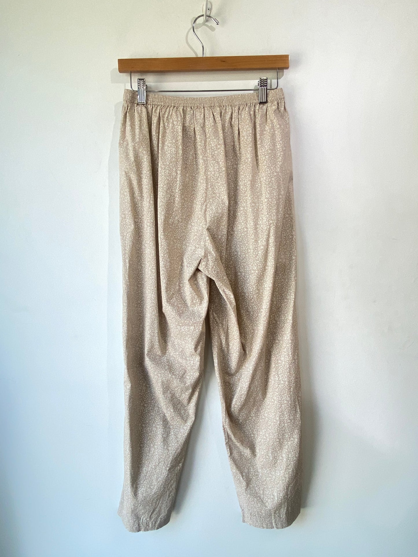 Skall Studio Tan Floral Pants! The cutest little white flower print throughout! Feature a high rise waist, elastic waistband, and straight leg fit. 100% organic cotton. Made in India. Marked a size 38, would best fit S/M, please refer to measurements. In excellent condition!