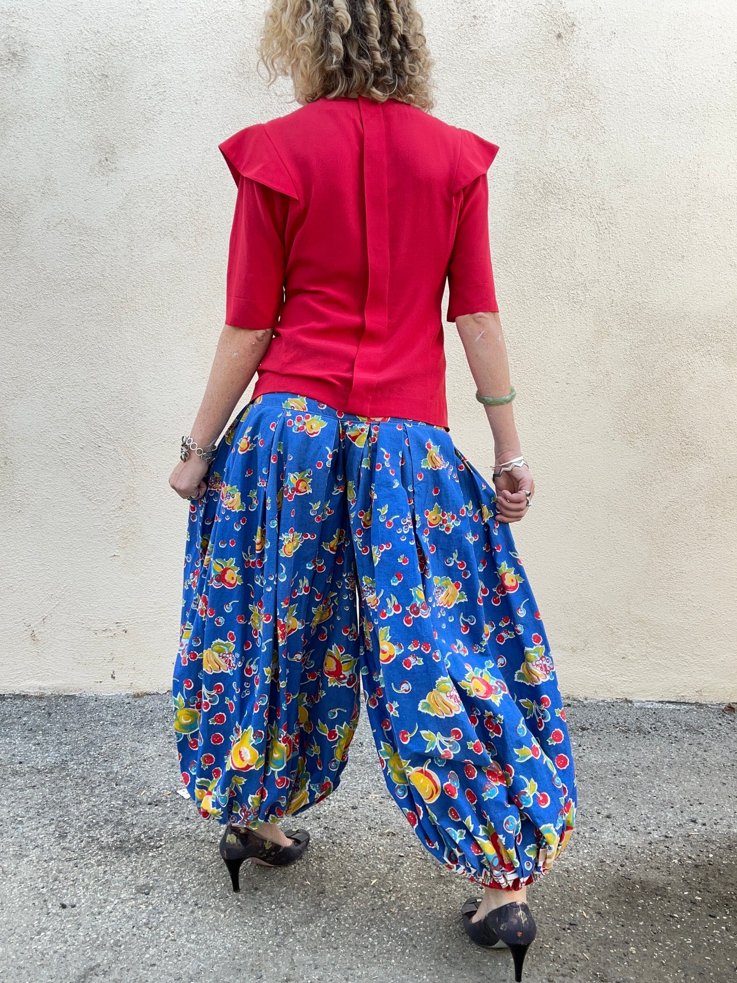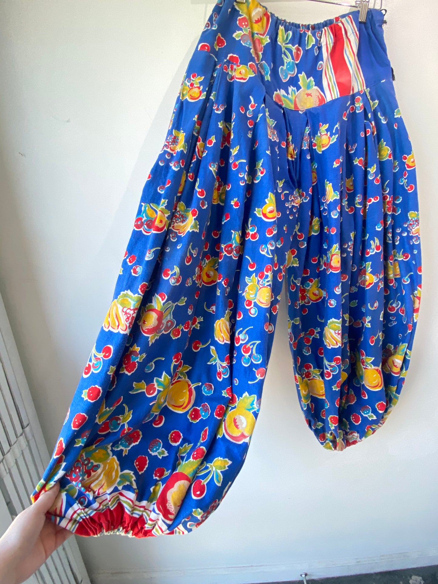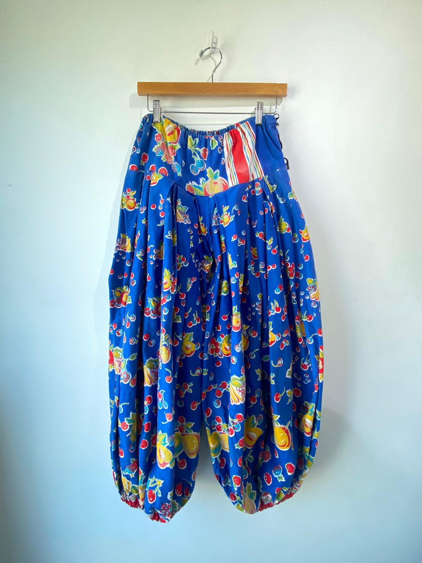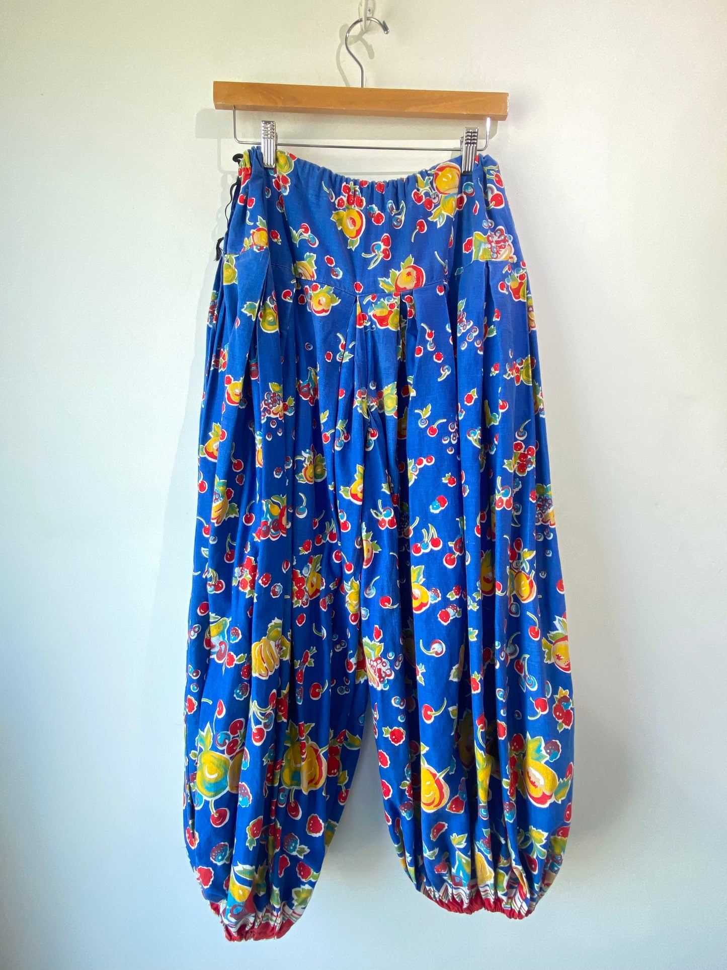 Vintage Blue Fruit Print Balloon Pants