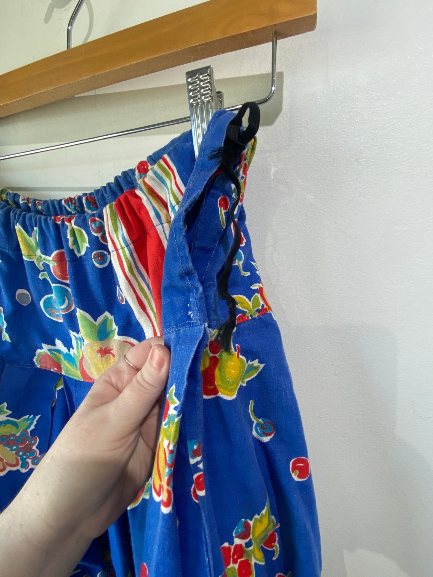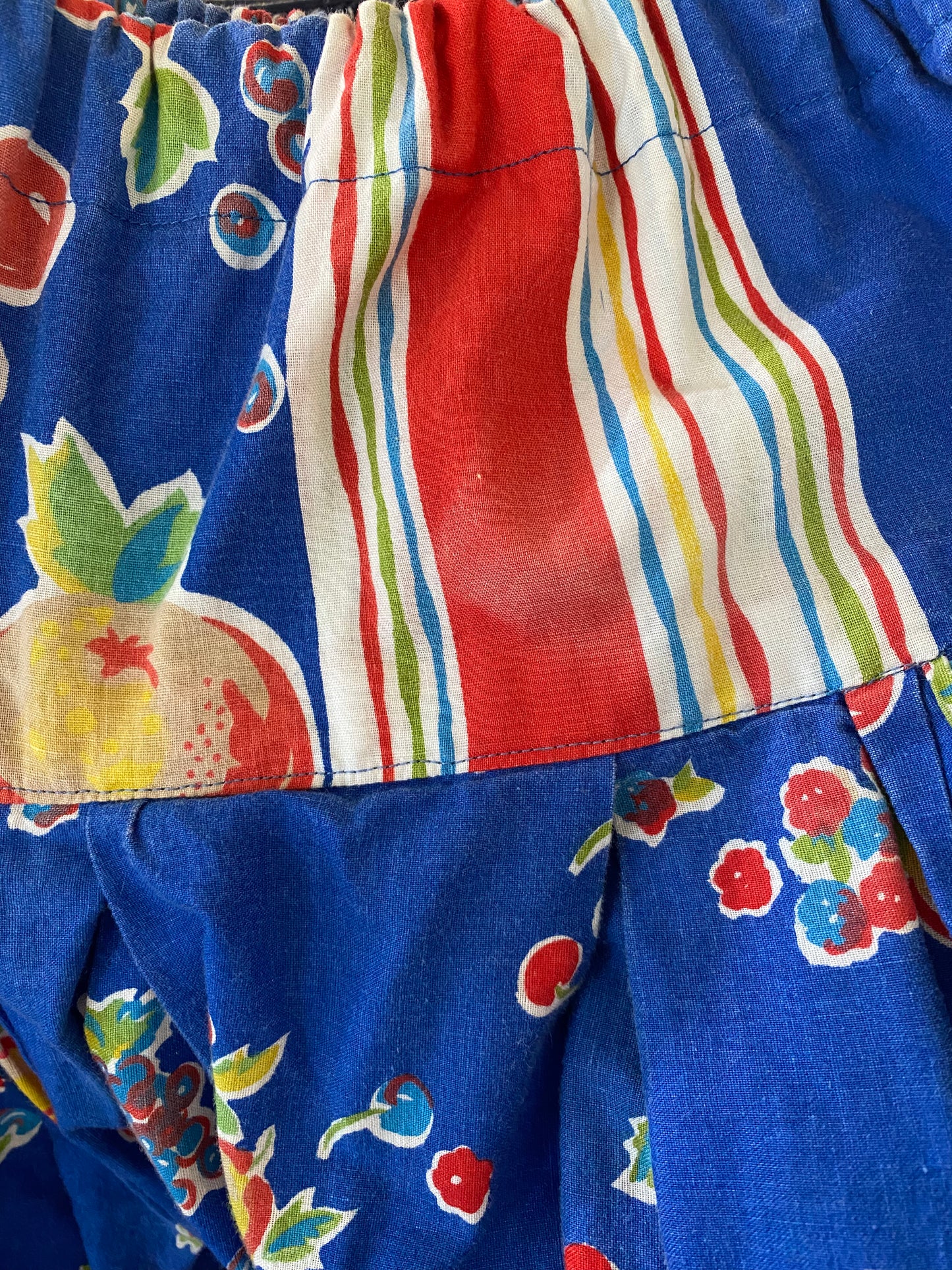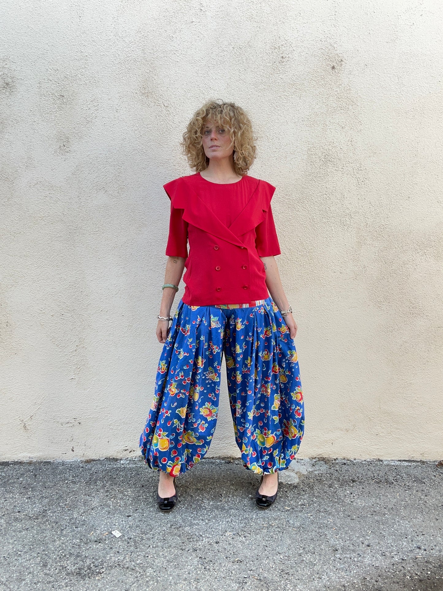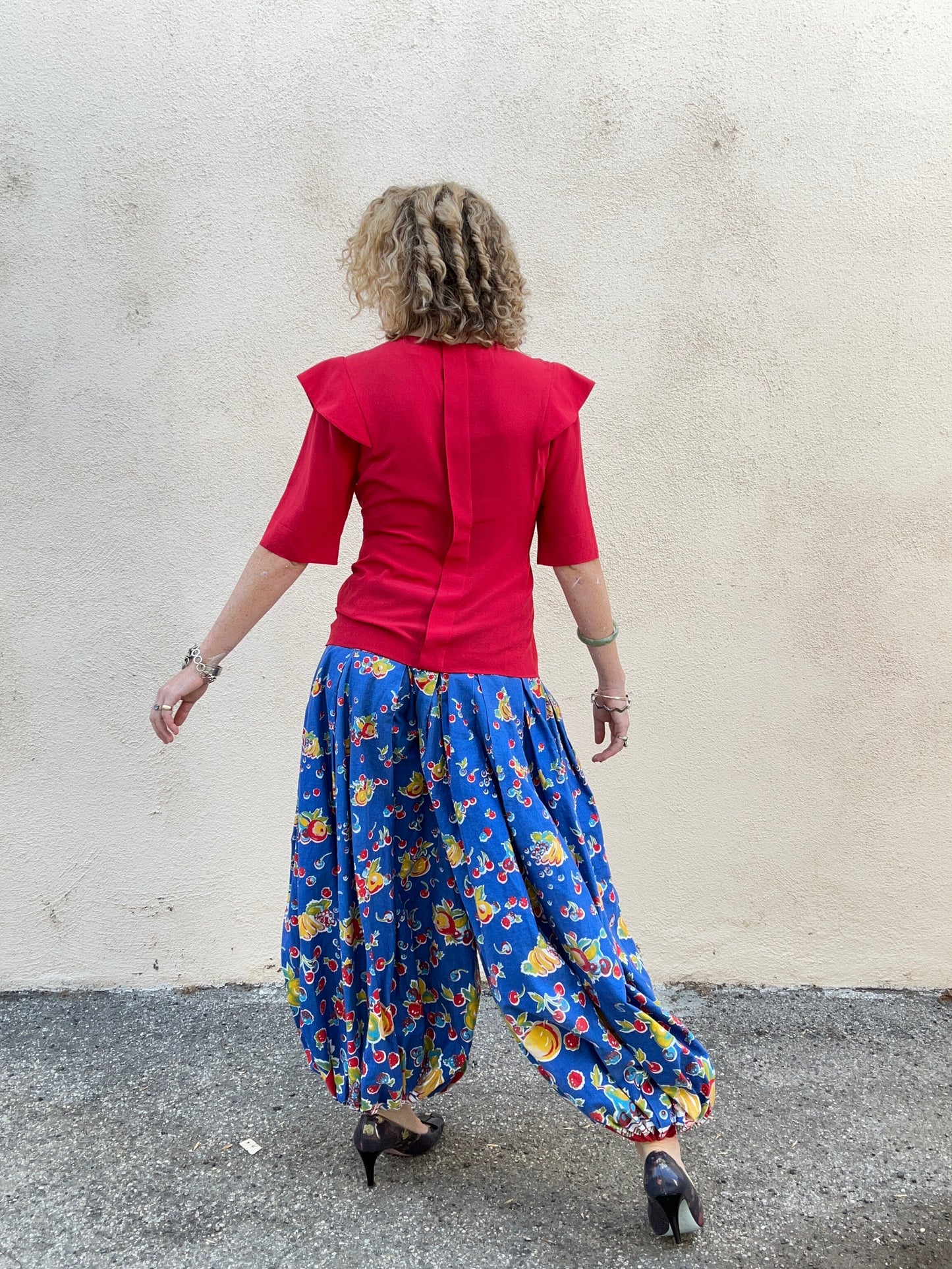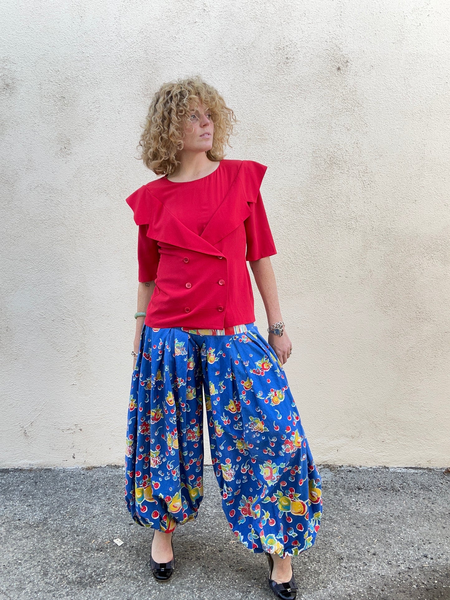 Vintage Blue Fruit Print Balloon Pants