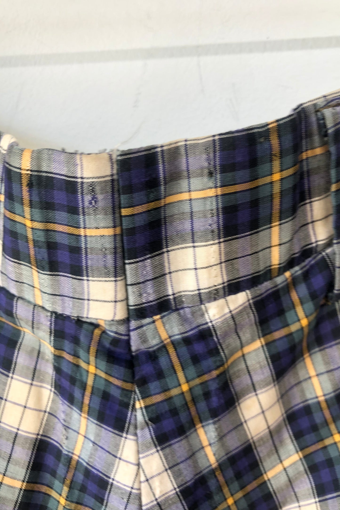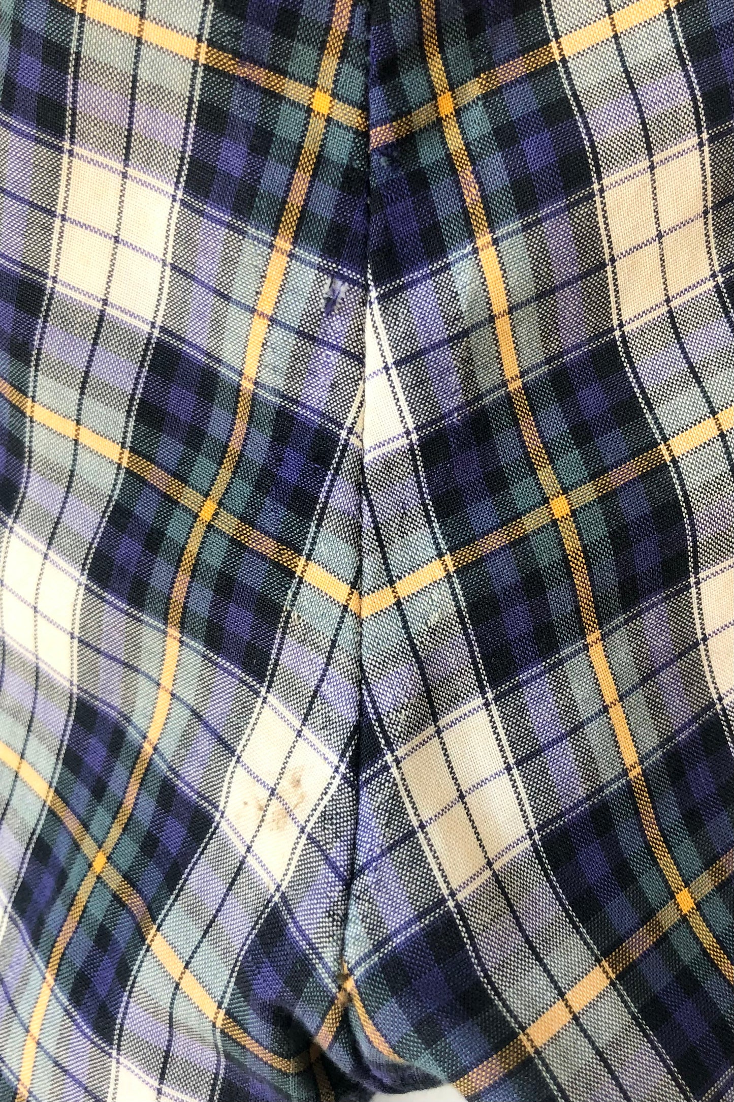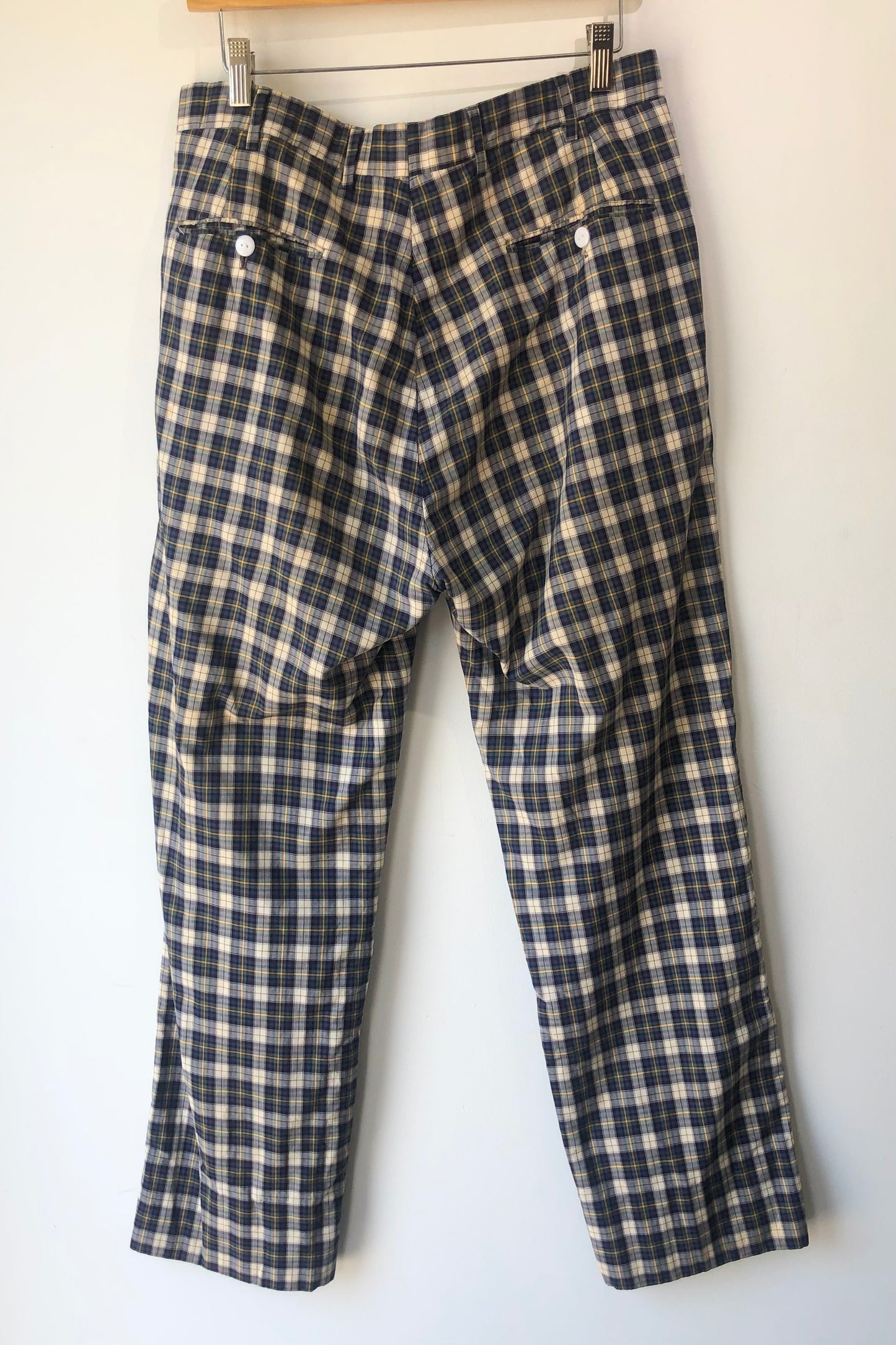 Vintage Spencer’s Unlimited Plaid Pants. Navy/green/yellow/cream plaid straight leg trousers. No marked content, dry clean only. No marked size. Made in Italy.