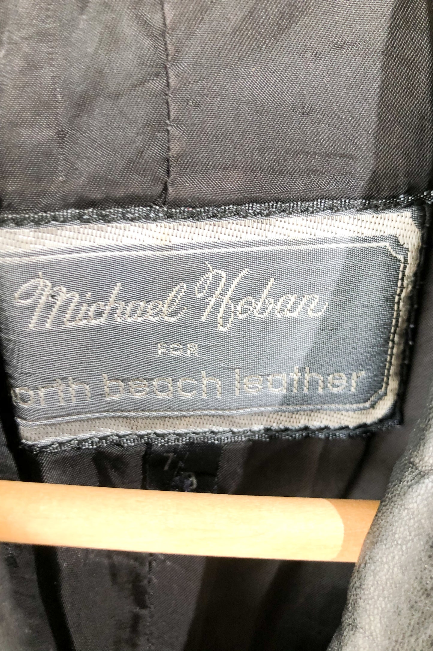 Michael Hoban for North Beach Leather Black Jacket. Great condition. 80's style leather jacket with exaggerated shoulders and nipped in waist. Has pockets and two button closure. 100% Leather. Marked as size 7/8, fits S/M.