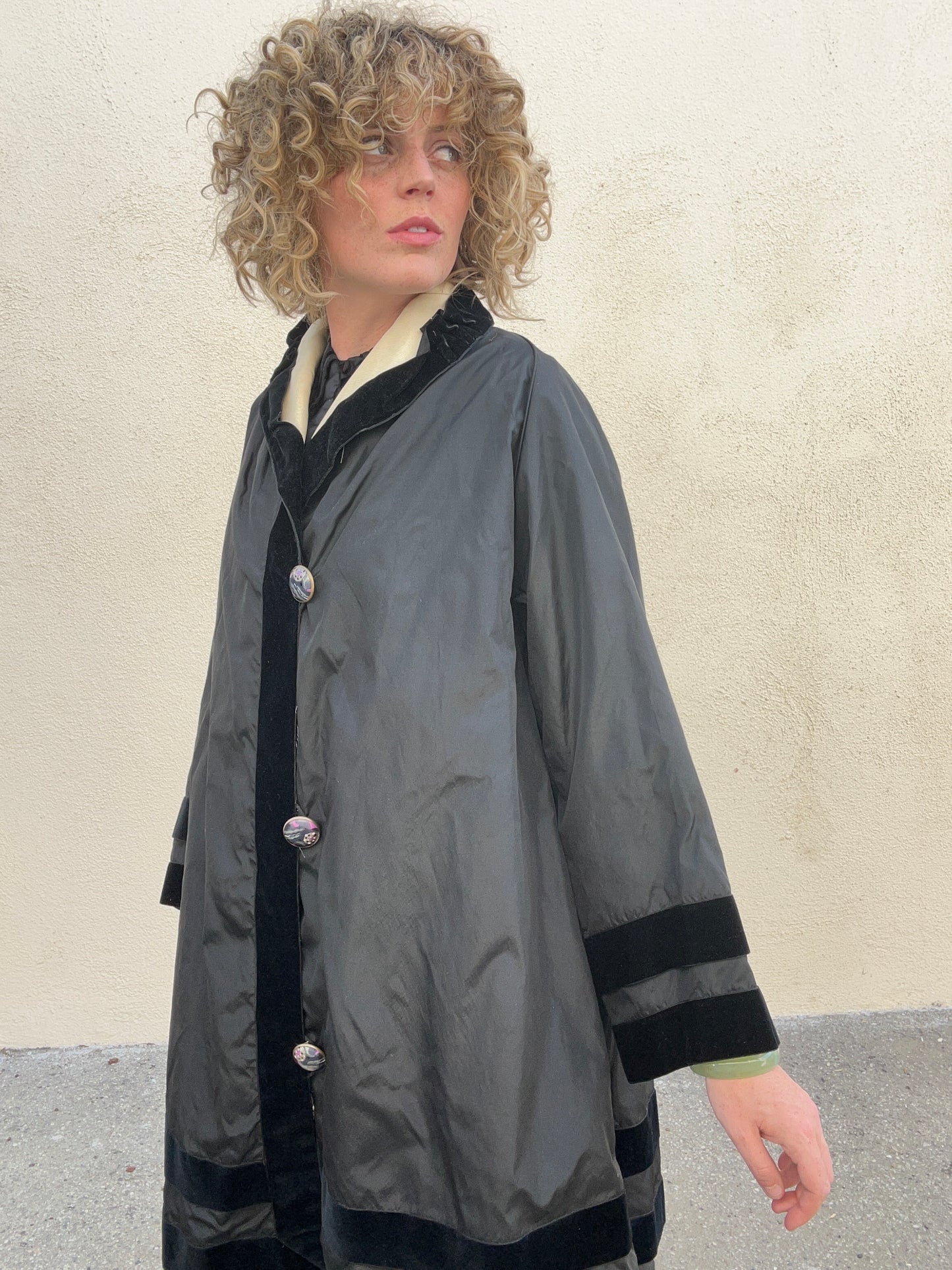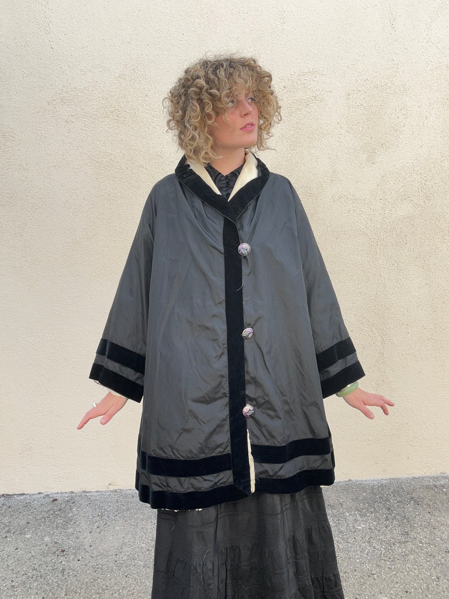 Victorian Ryan Hartford Black Silk & Velvet Mourning Jacket