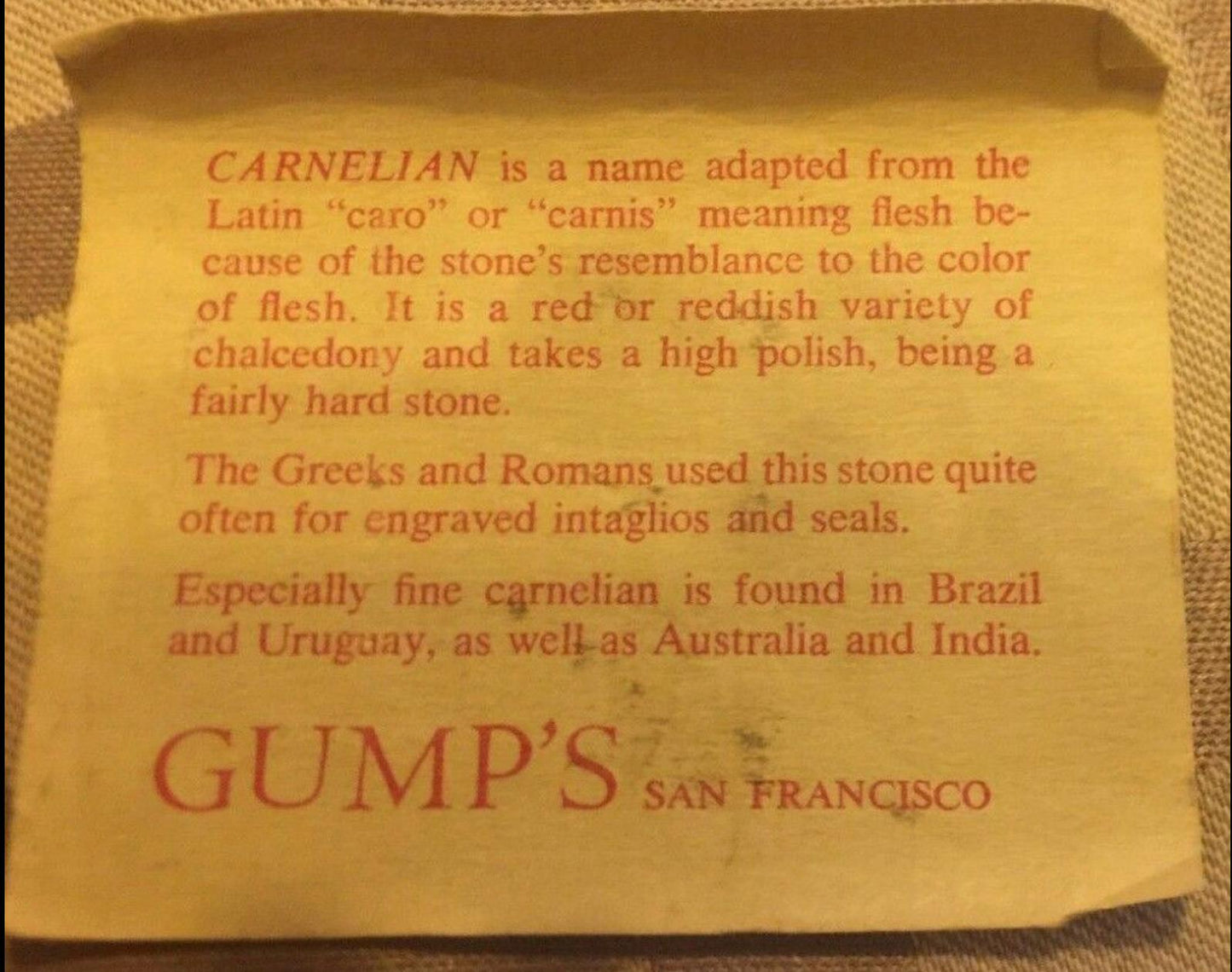 Gump’s Carnelian Beaded Necklace with Carving and 14K Gold Clasp