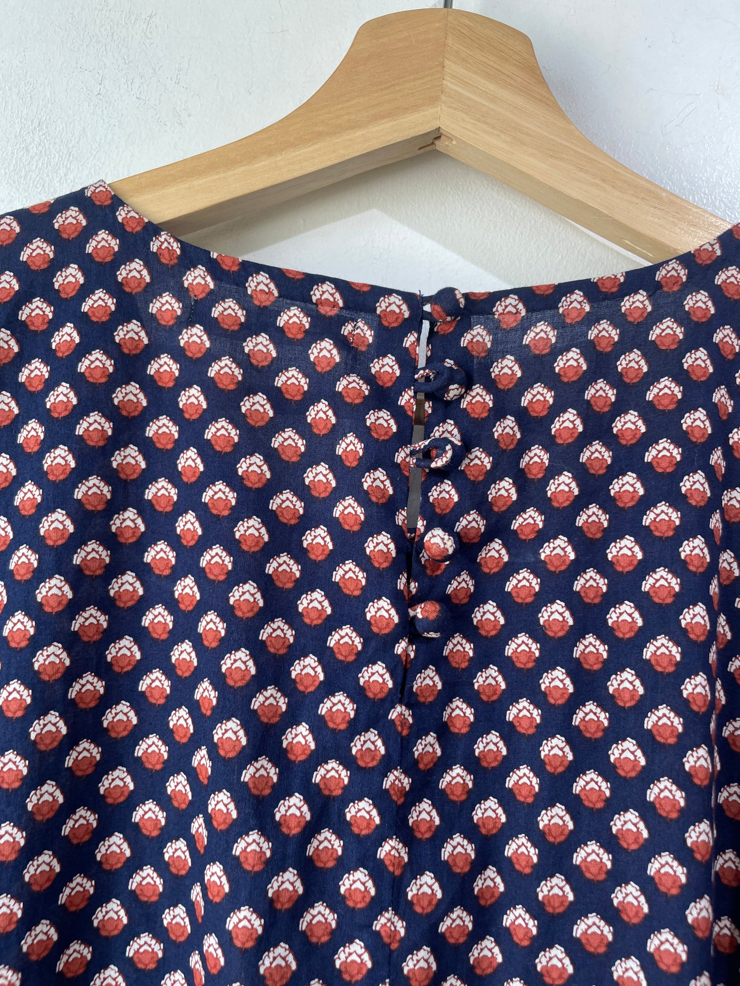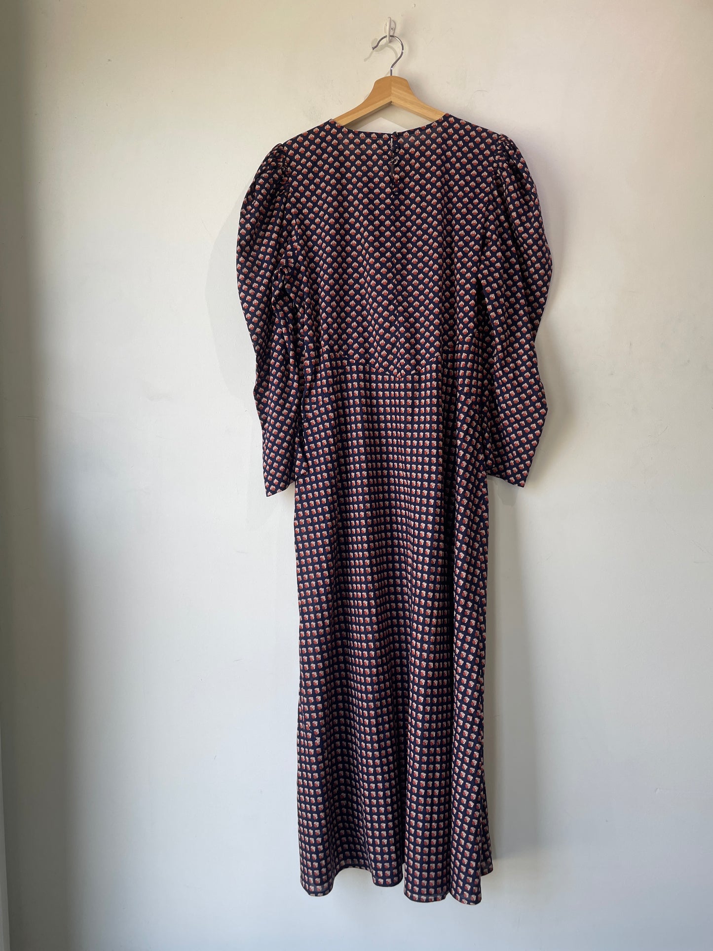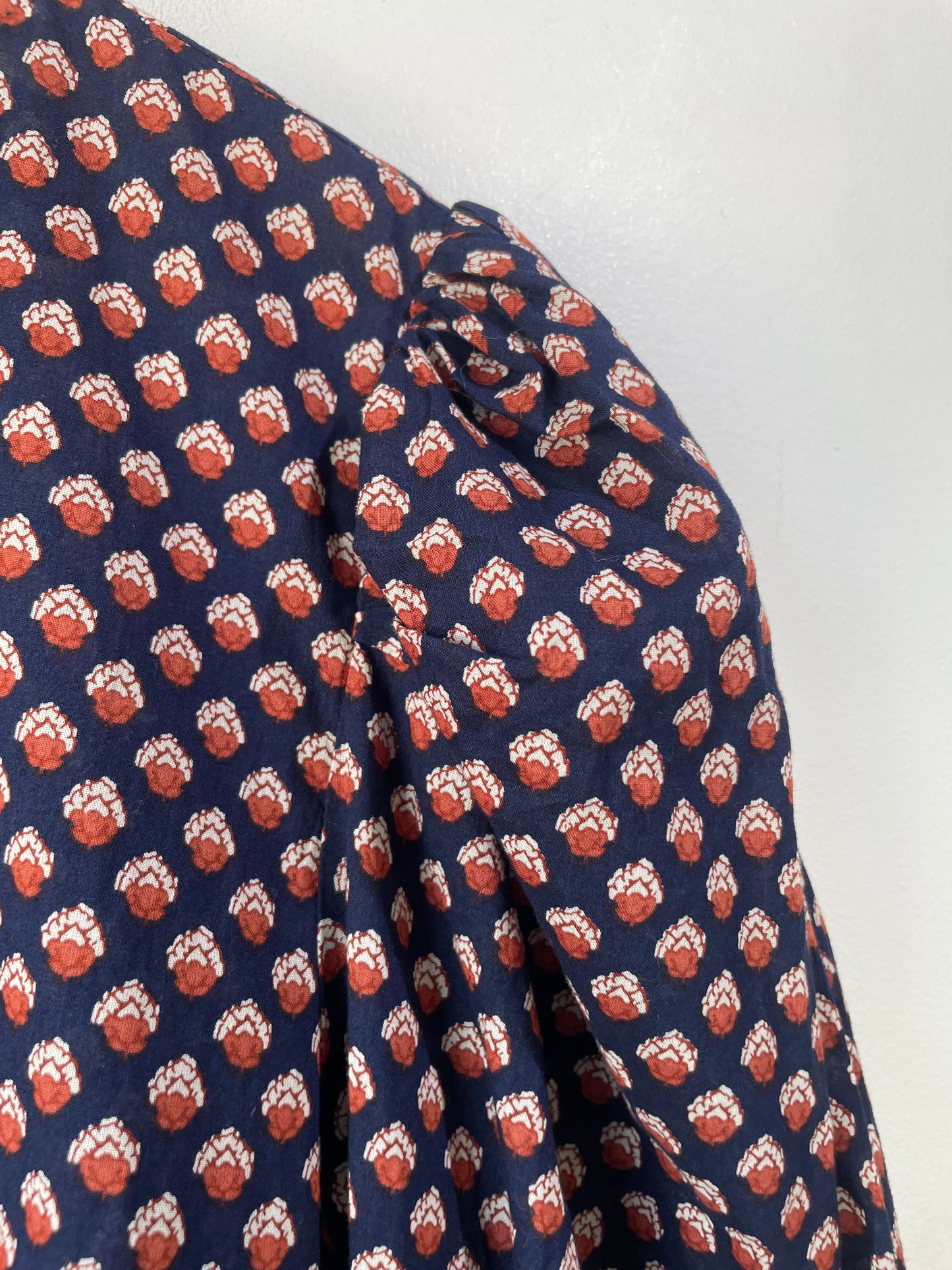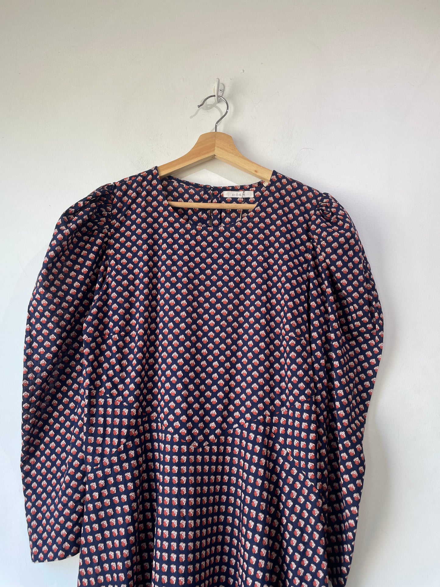 Doen Navy Rust Print Puffed Sleeve Vittoria Dress
