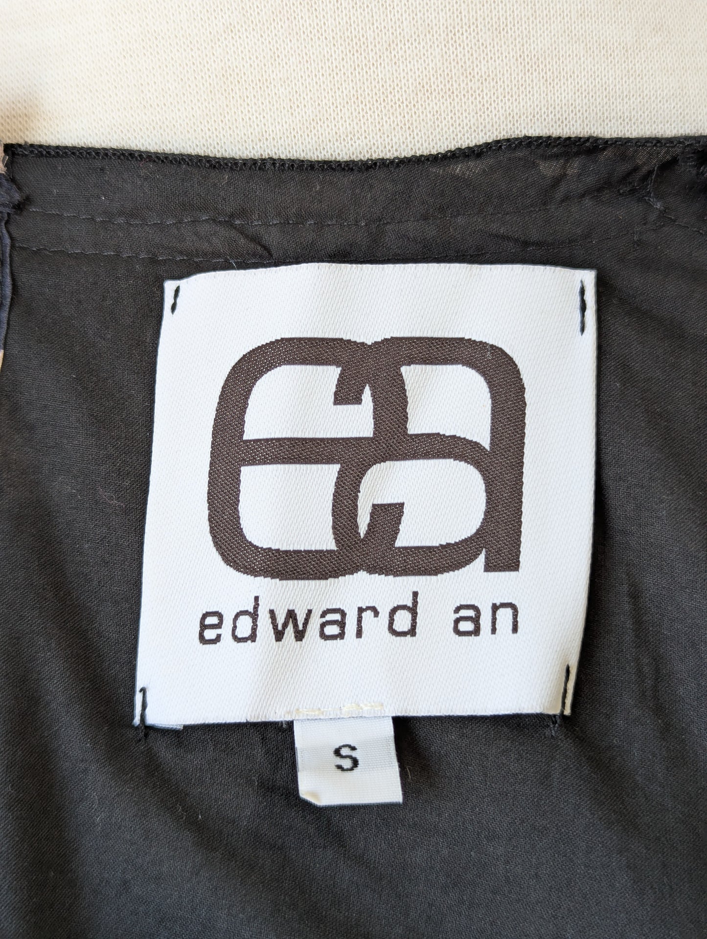 Edward An Black and Tan Silk Floral Wrap Dress.