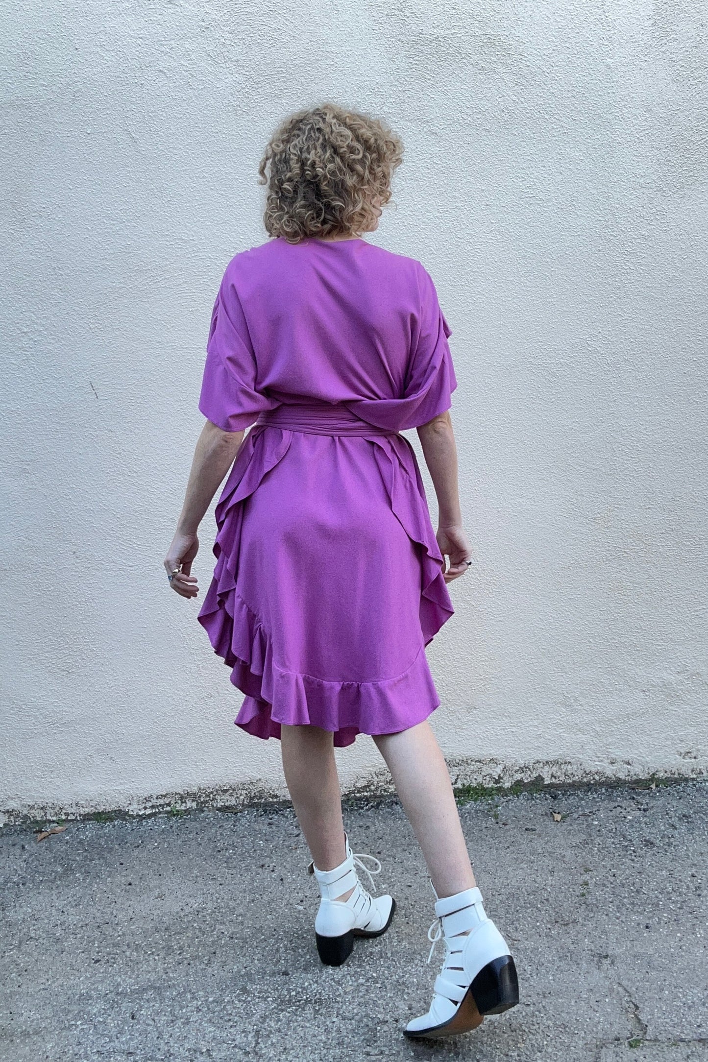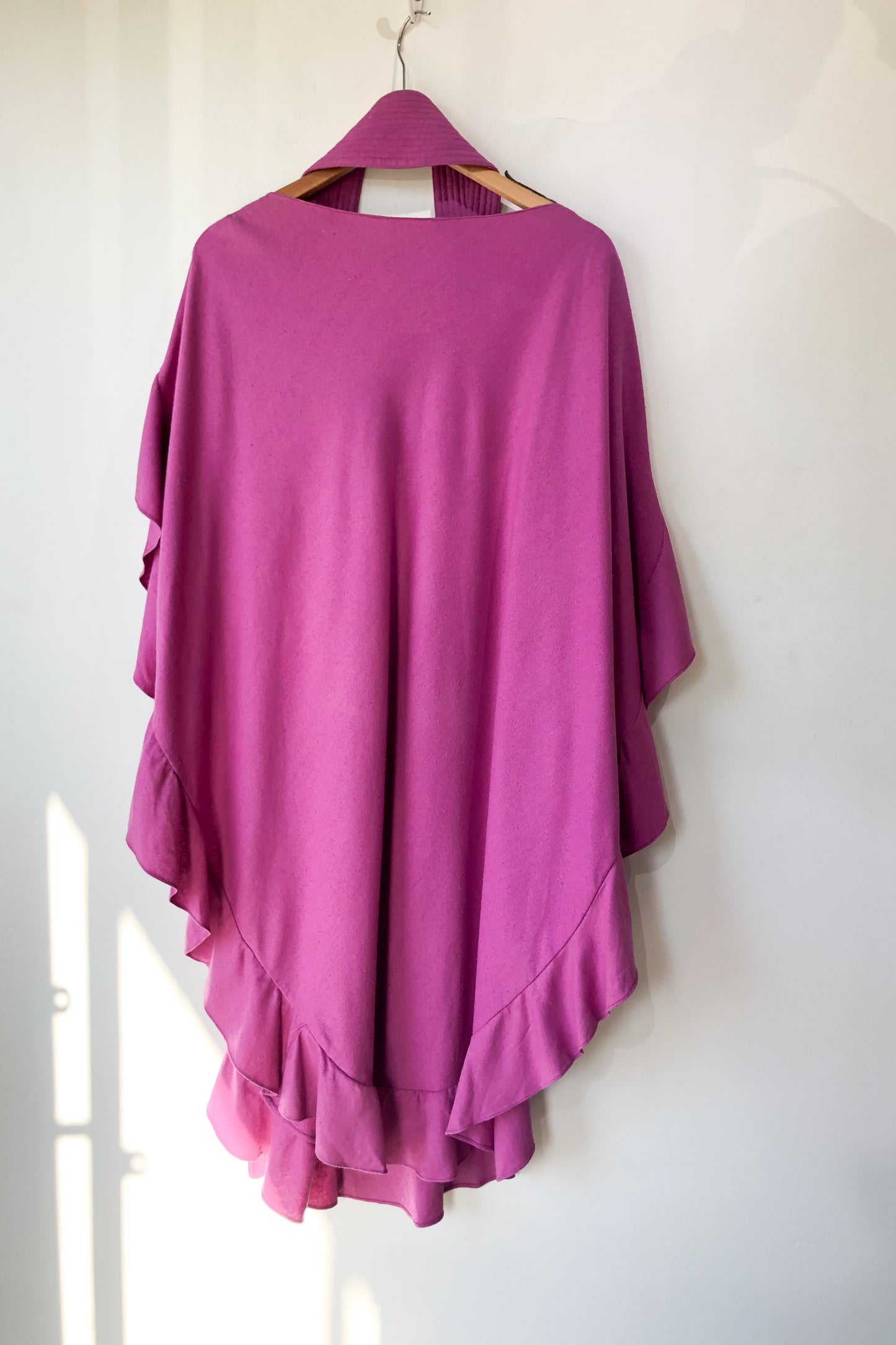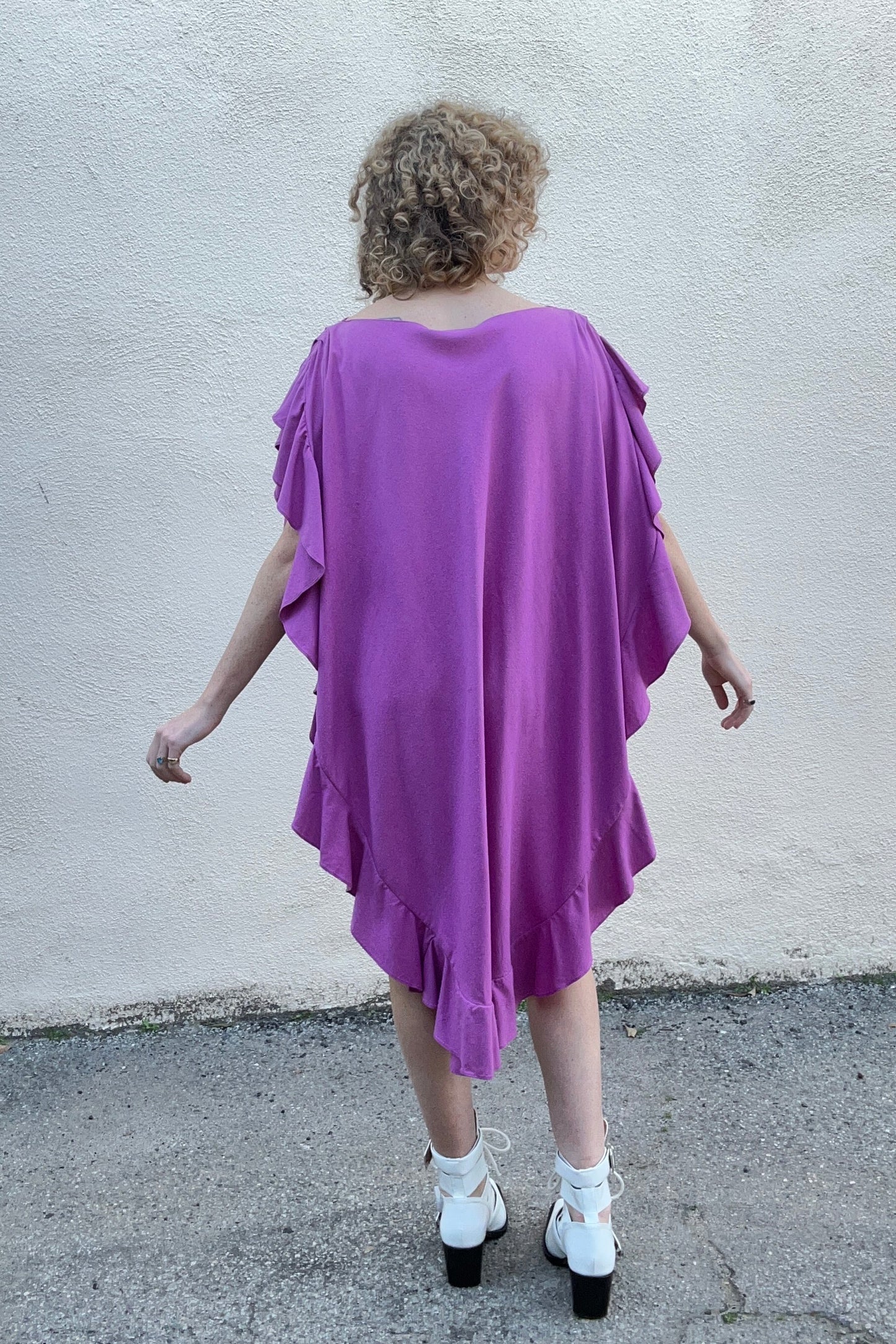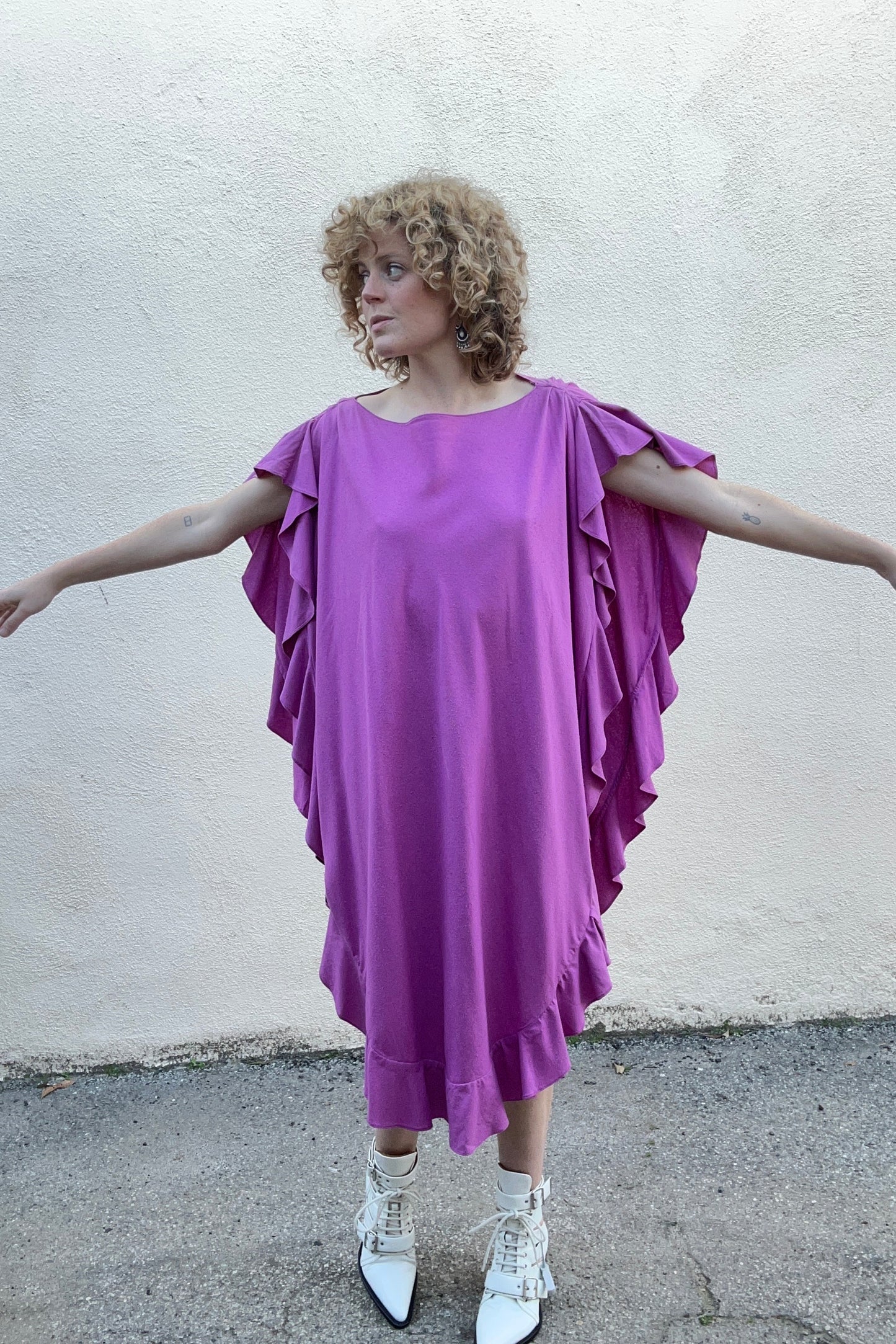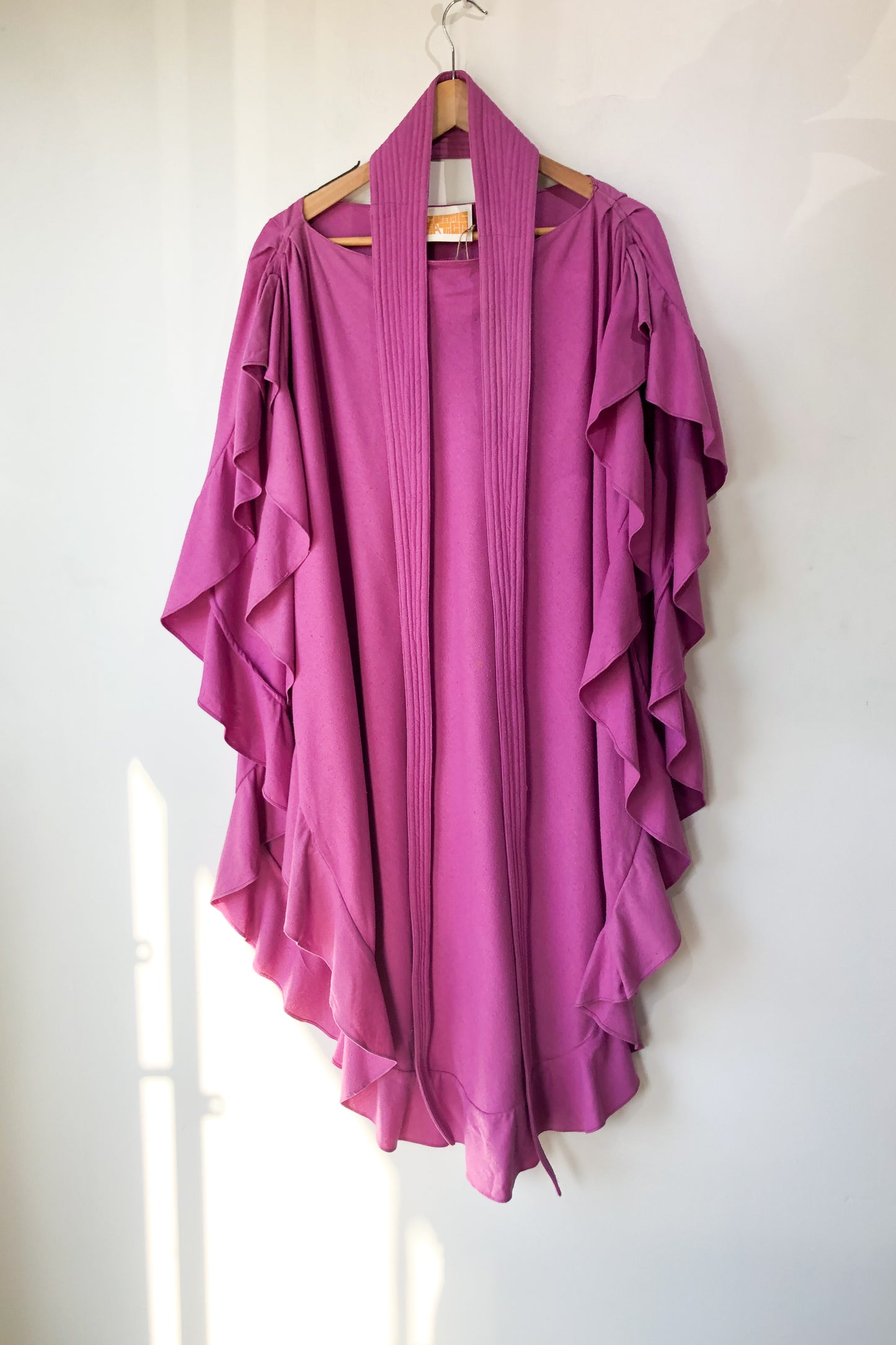 Electric Feathers Fuchsia Ruffle Silk Caftan