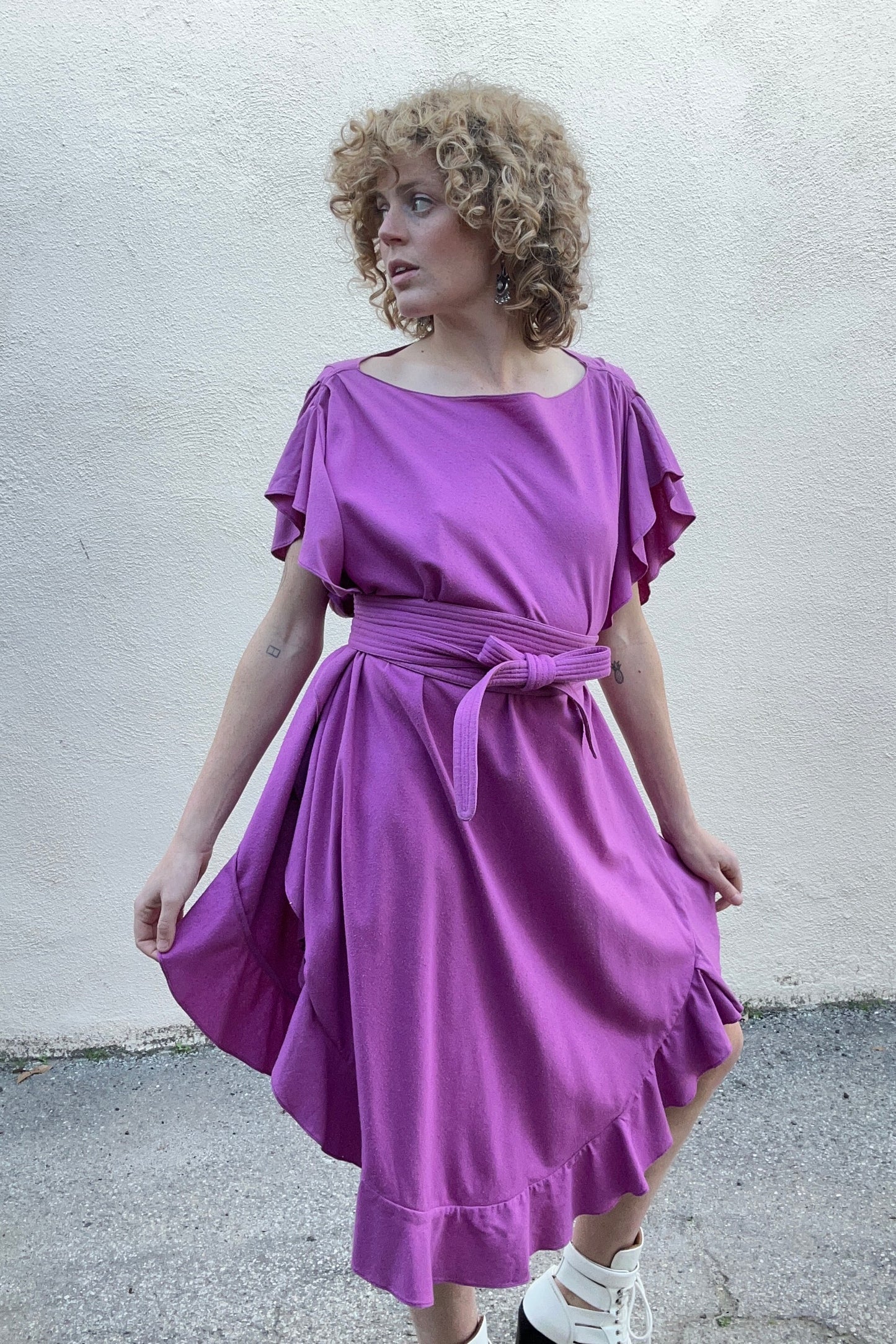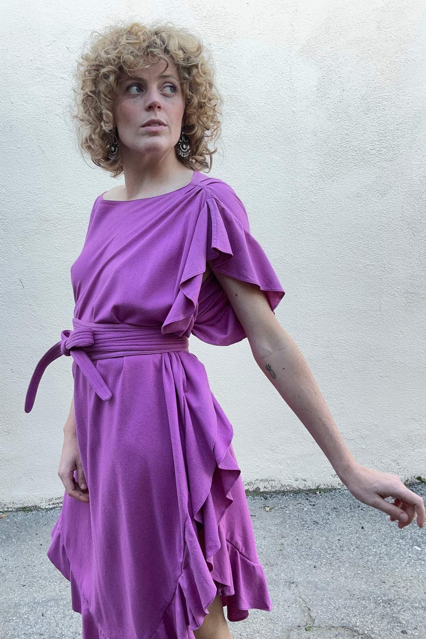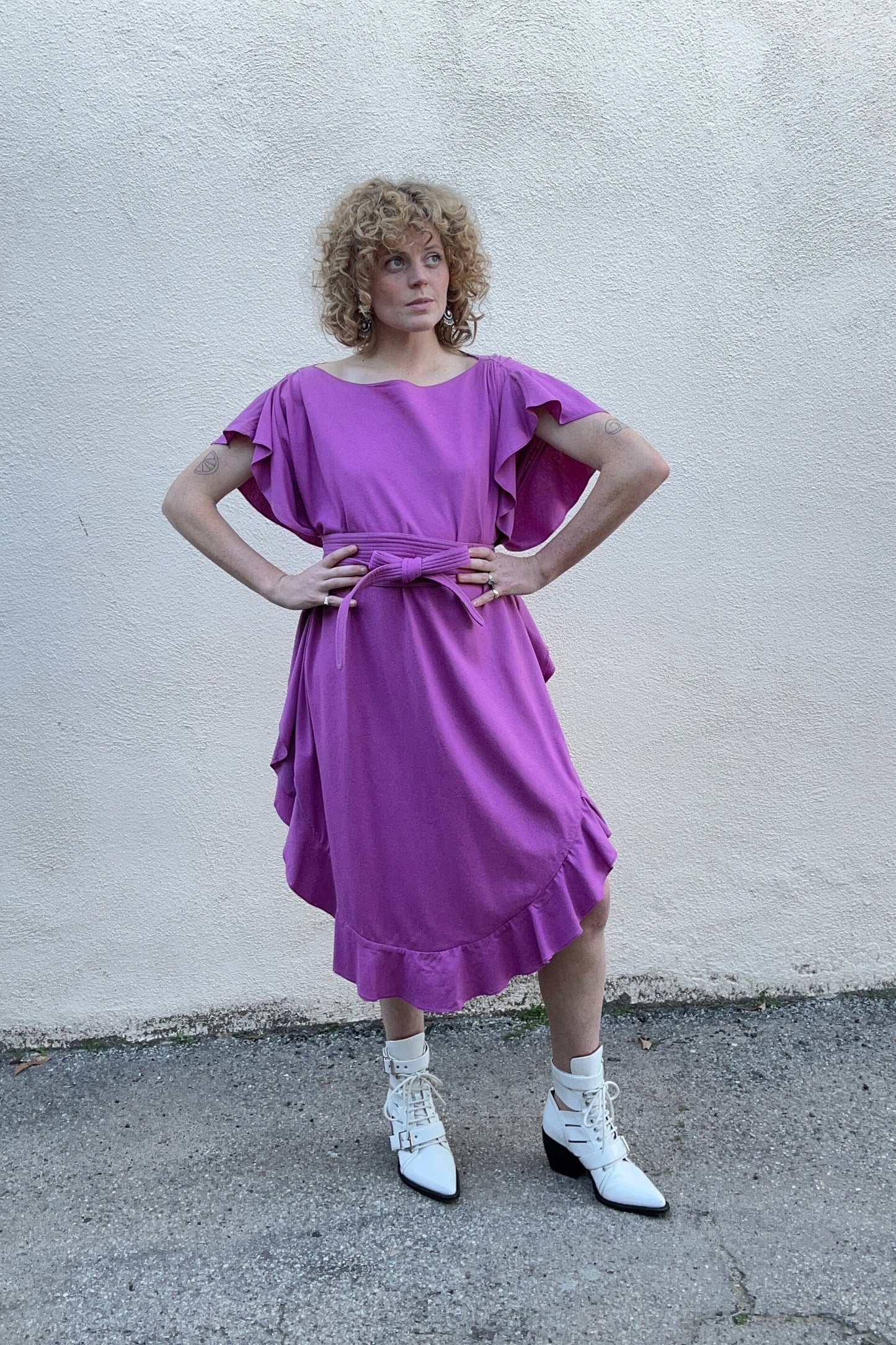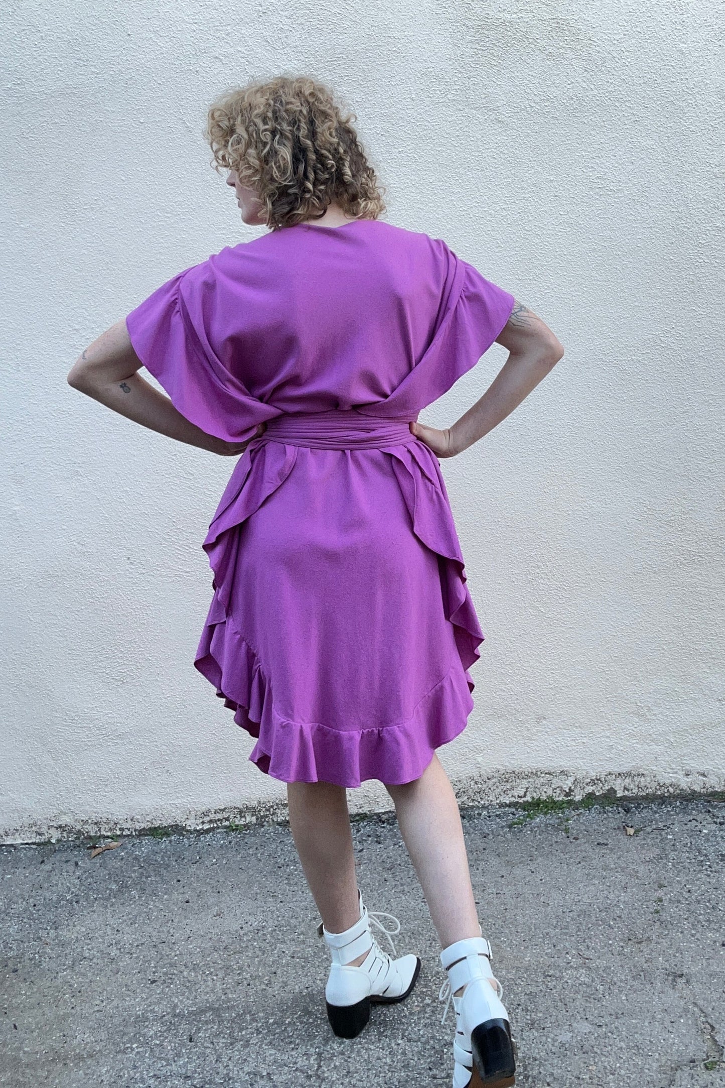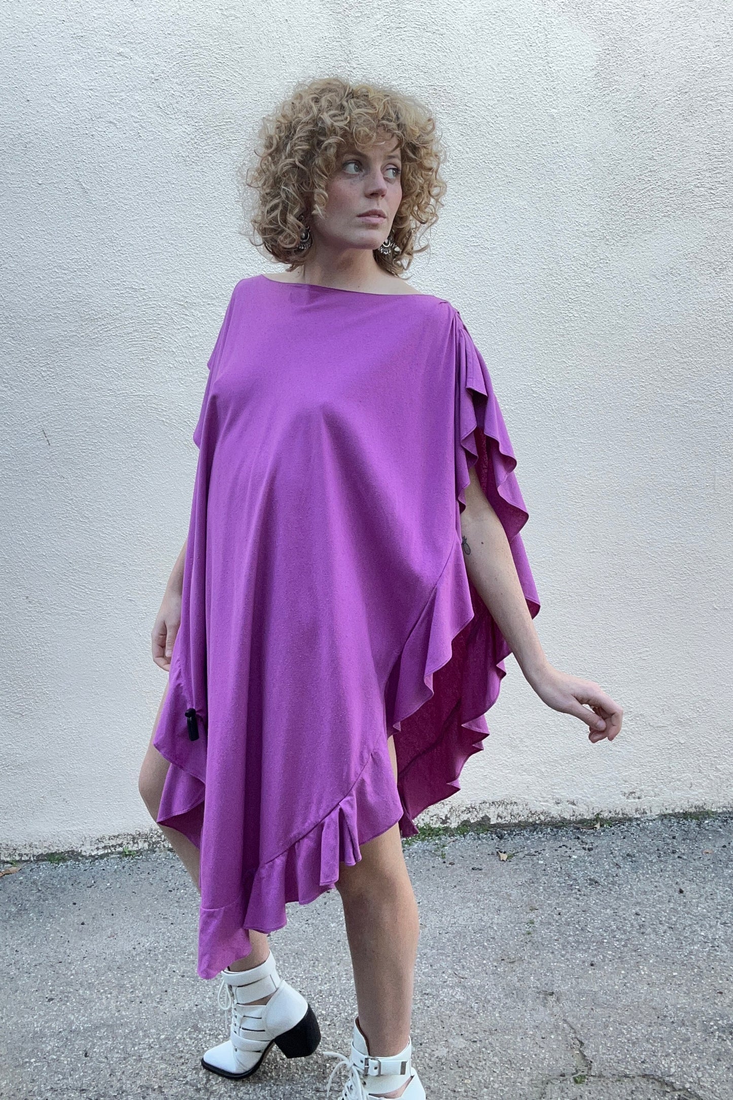 Electric Feathers Fuchsia Ruffle Silk Caftan