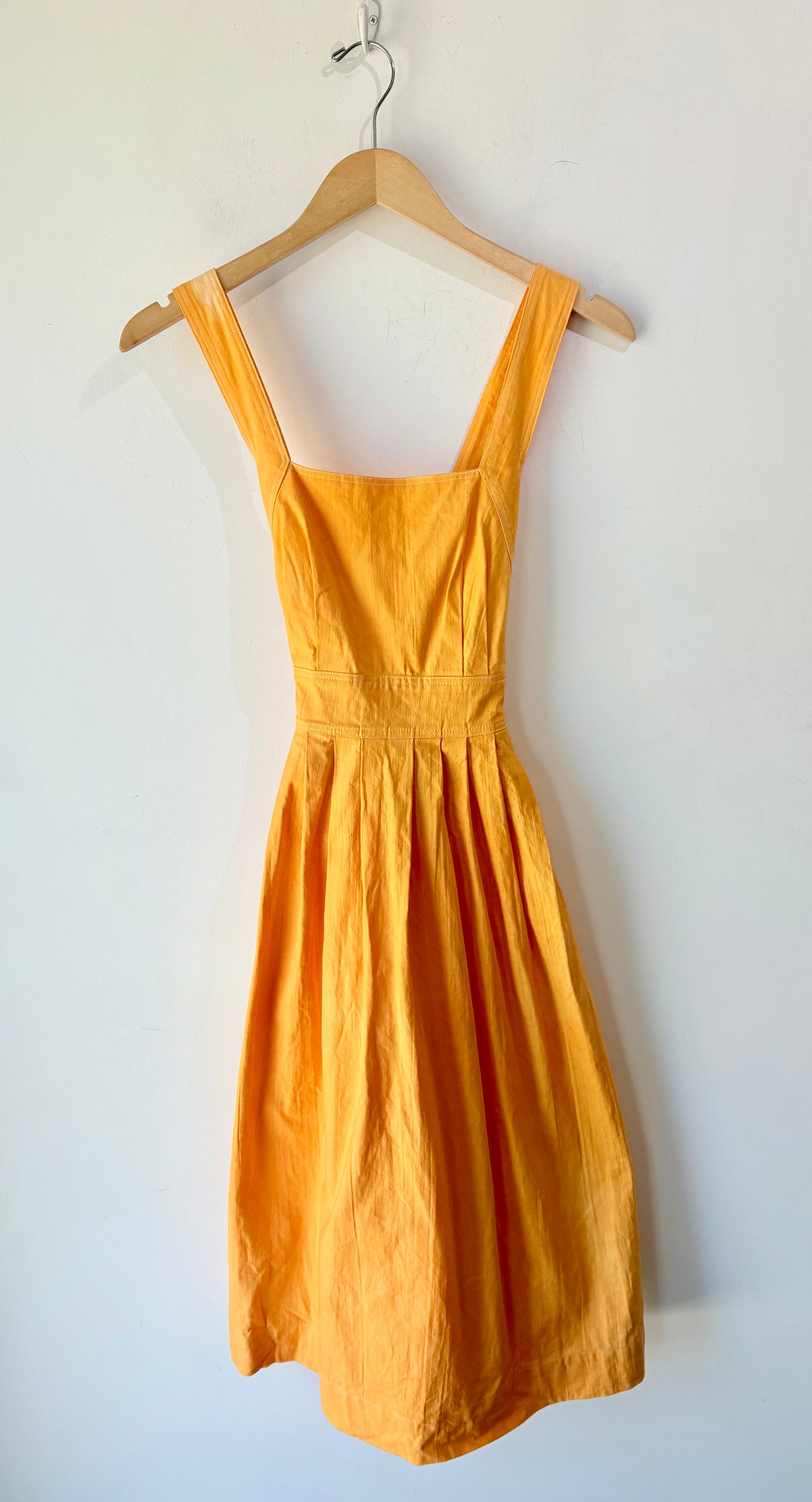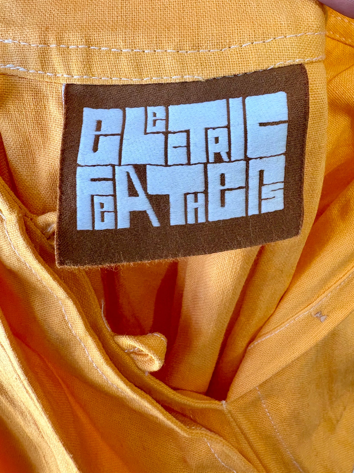 The Electric Feathers Sherbet Pinafore Dress in linen brings a burst of vibrant energy to your wardrobe. Featuring a fitted apron-style top and a beautifully pleated skirt, it combines elegance with a playful twist. The sexy cross-back straps add a flirty touch, making this dress a fun and stylish staple for sunny days and lively nights.