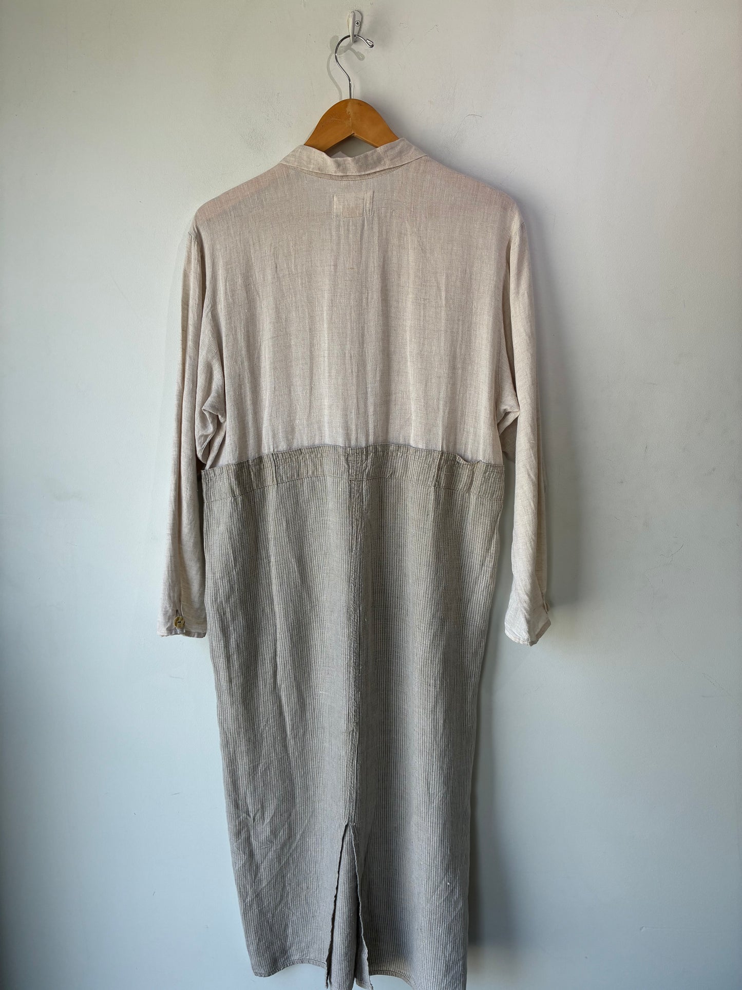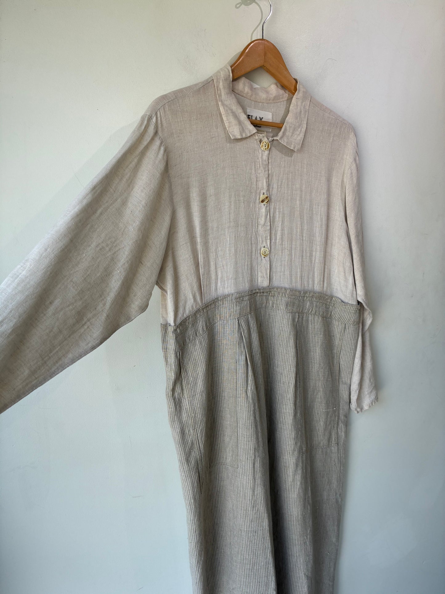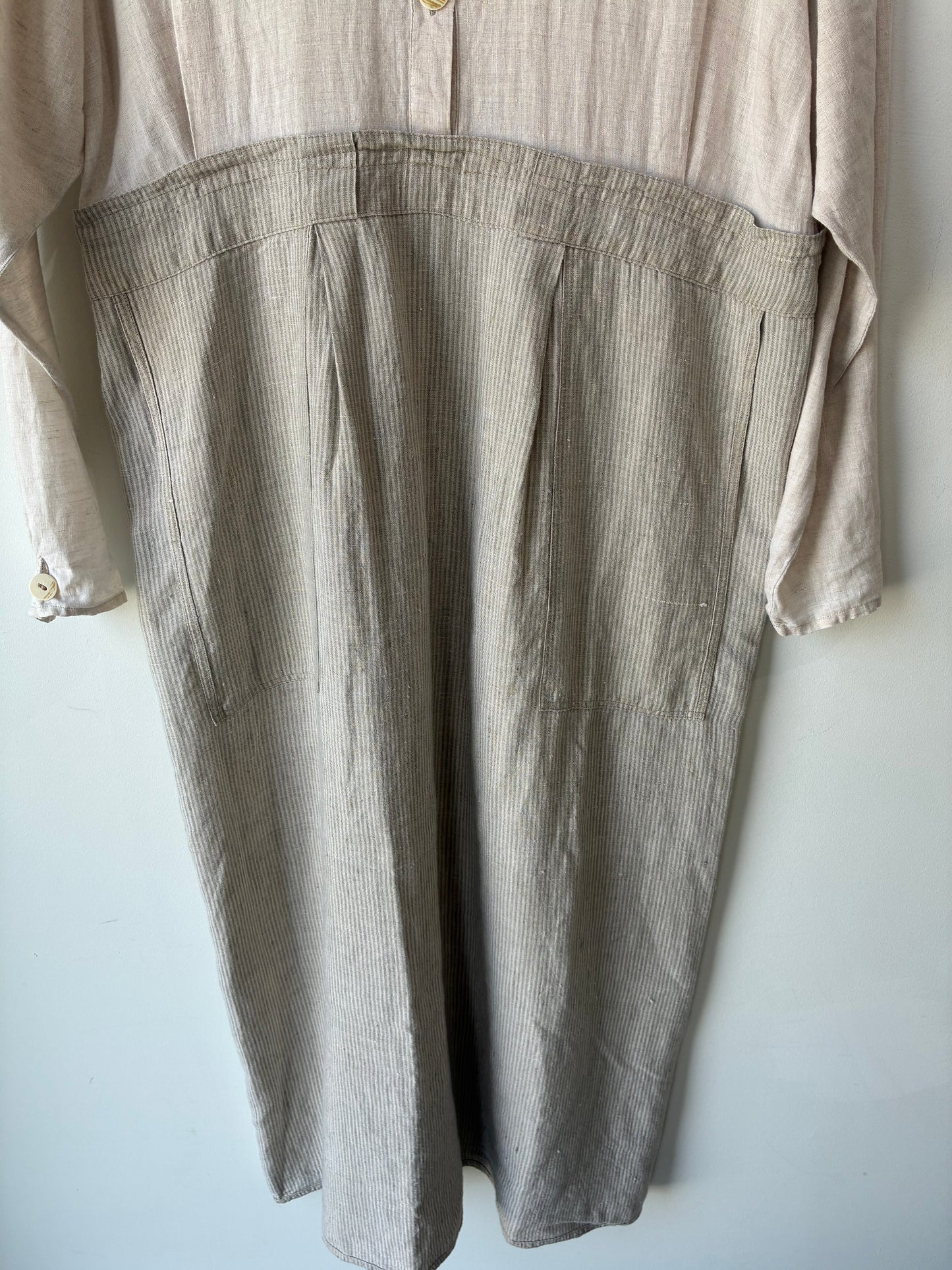 Flax Oatmeal Linen Dress with Grey Striped Skirt