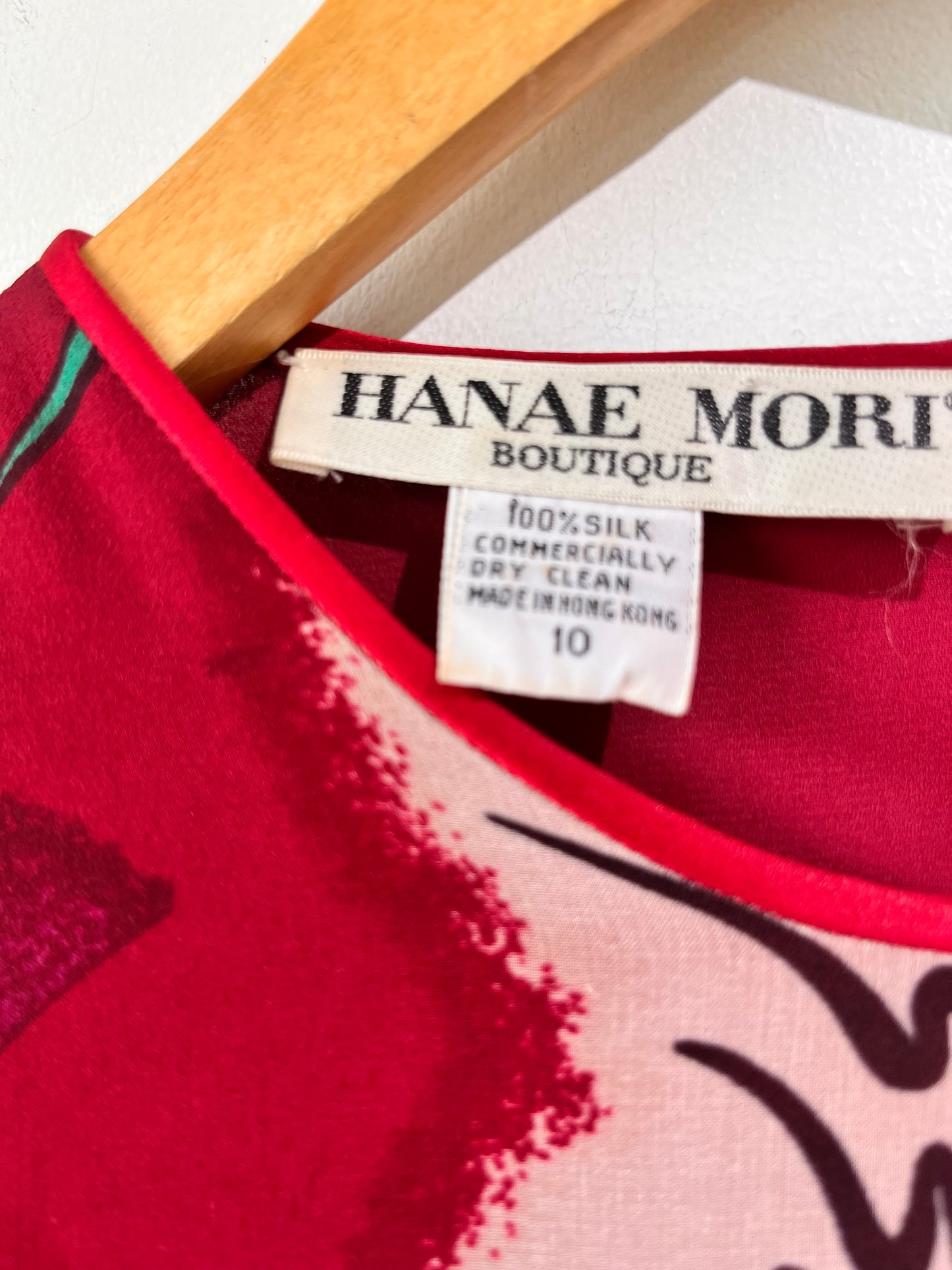 Hanae Mori Boutique Maroon Silk Print Dress with Peplum