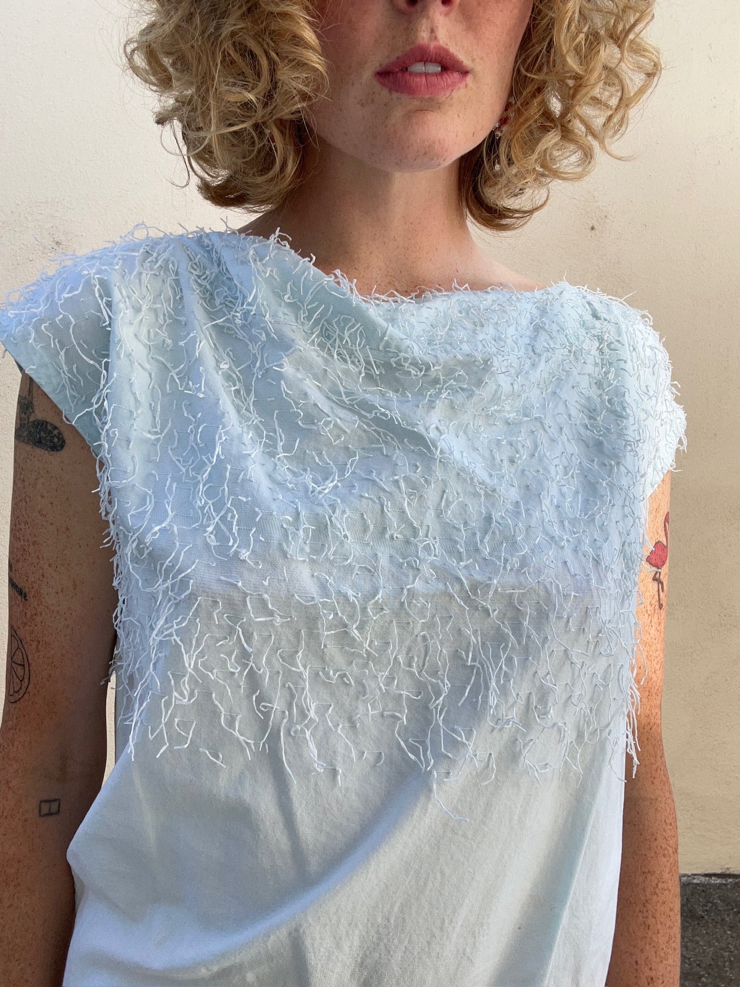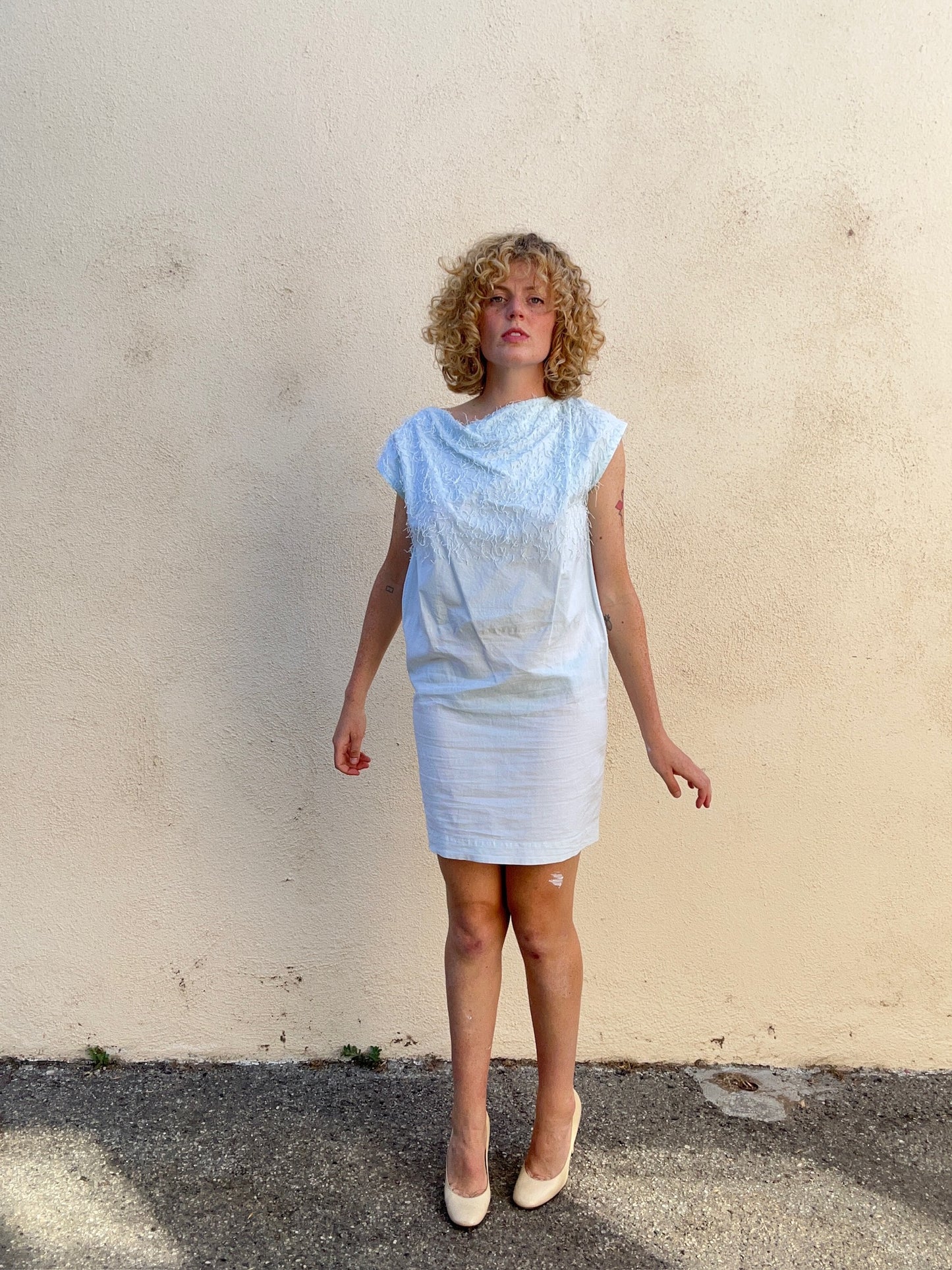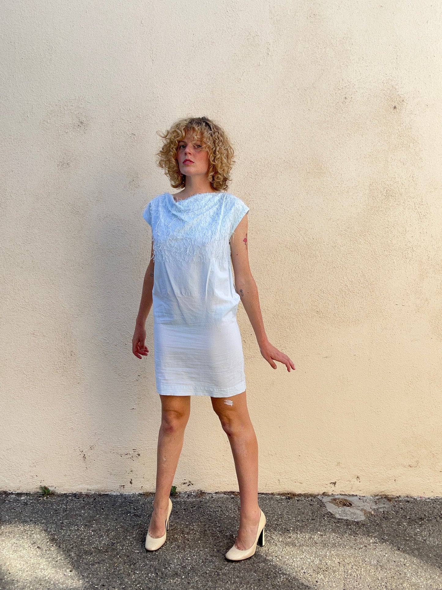 Issey Miyake Aqua Paper Fringe Mini Dress