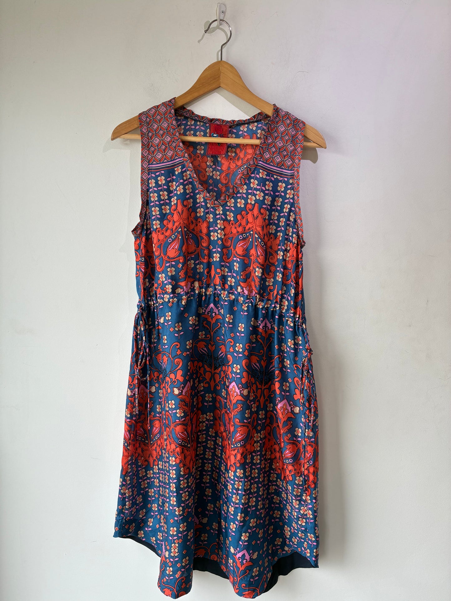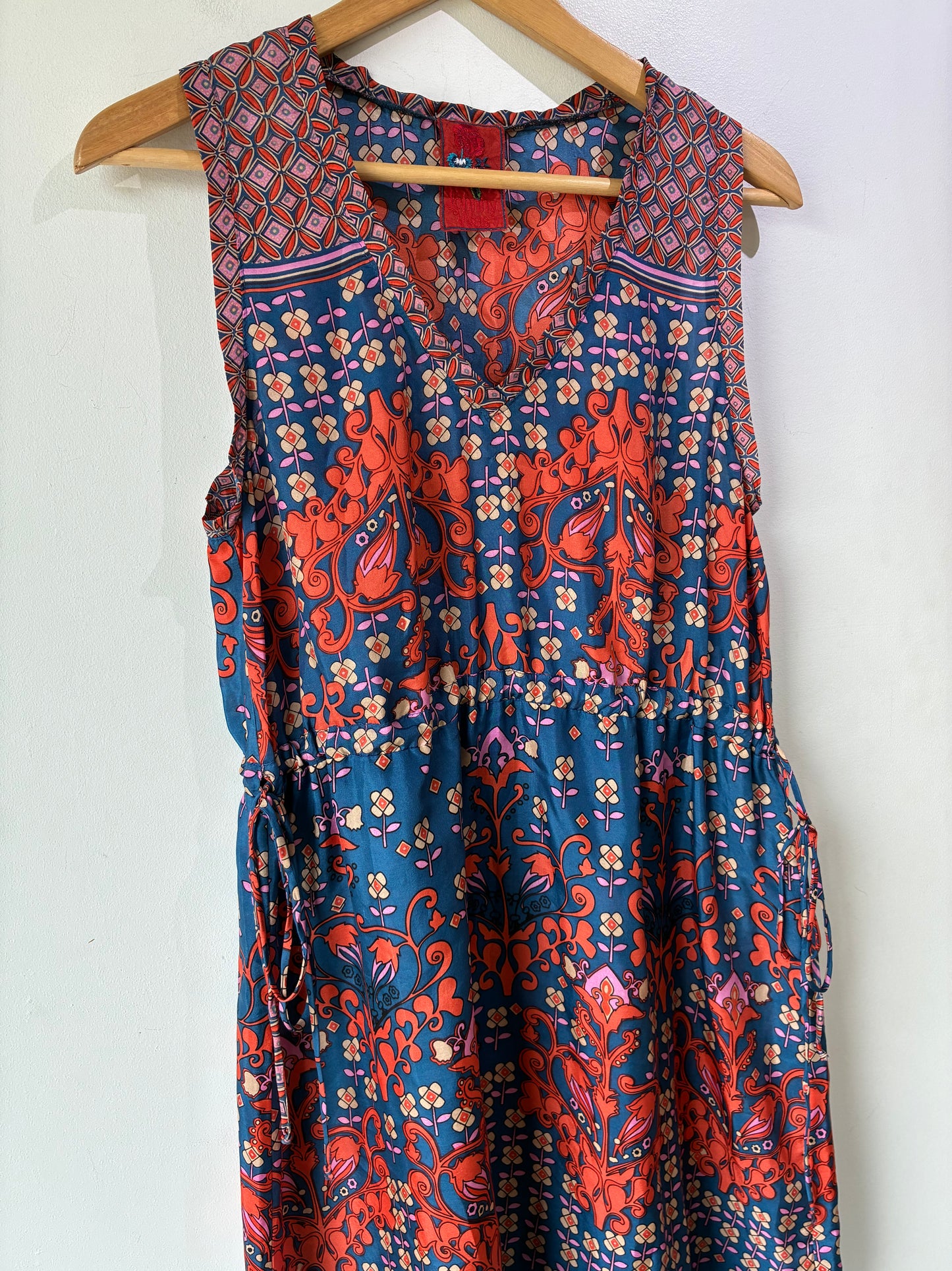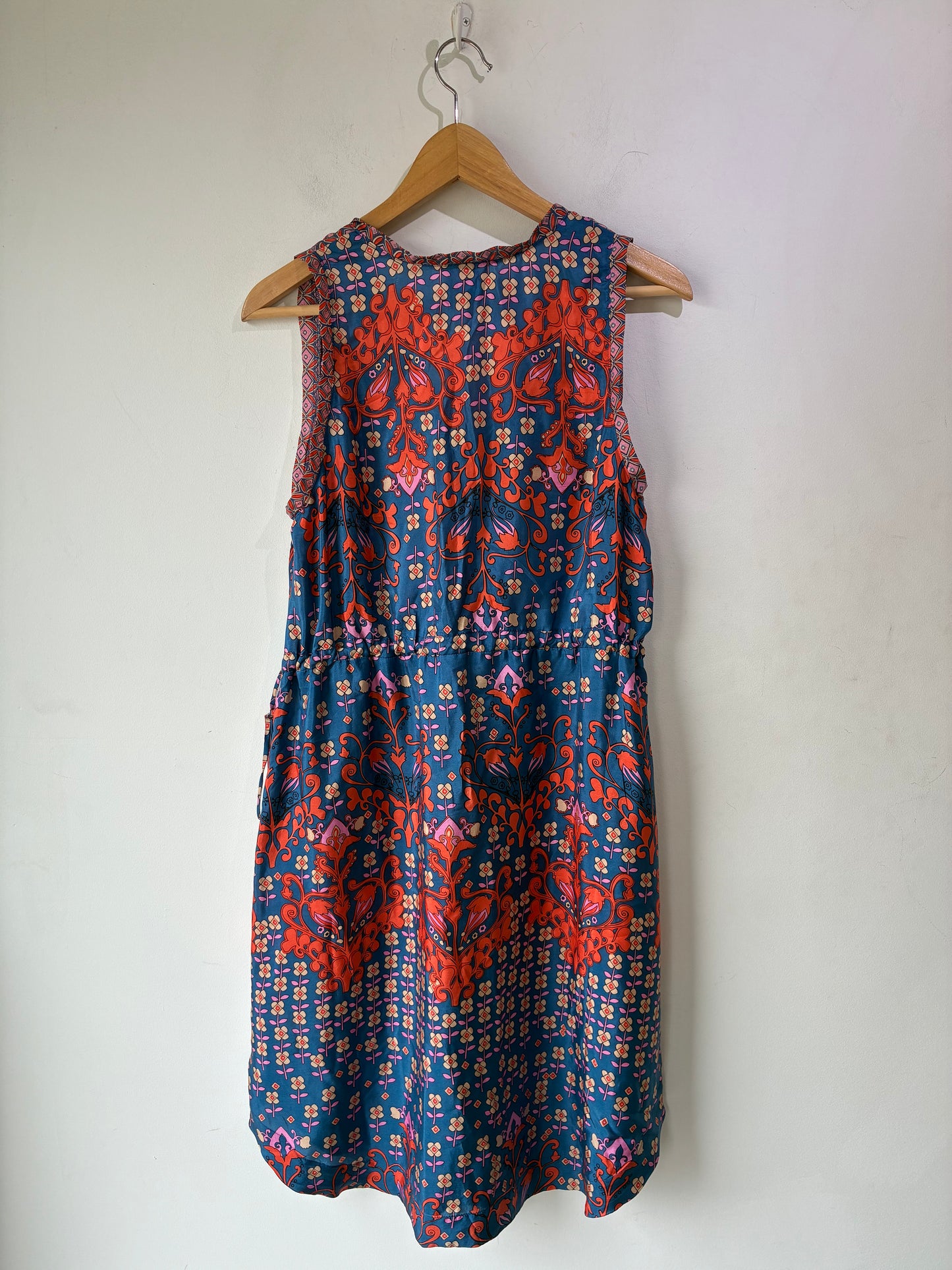 Johnny Was Blue and Orange Silk Floral Sleeveless Dress