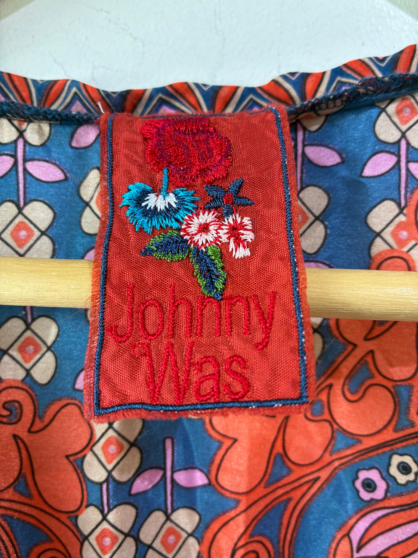 Johnny Was Blue and Orange Silk Floral Dress. Fun and flirty, this darling dress from Johnny Was features a bold pattern in an easy silhouette. Featuring a drawstring waist with ties at each side, a v-neckline and a scalloped hem, this dress offers both style and fit. Dress is in excellent condition and is free of stains, tears and defects.