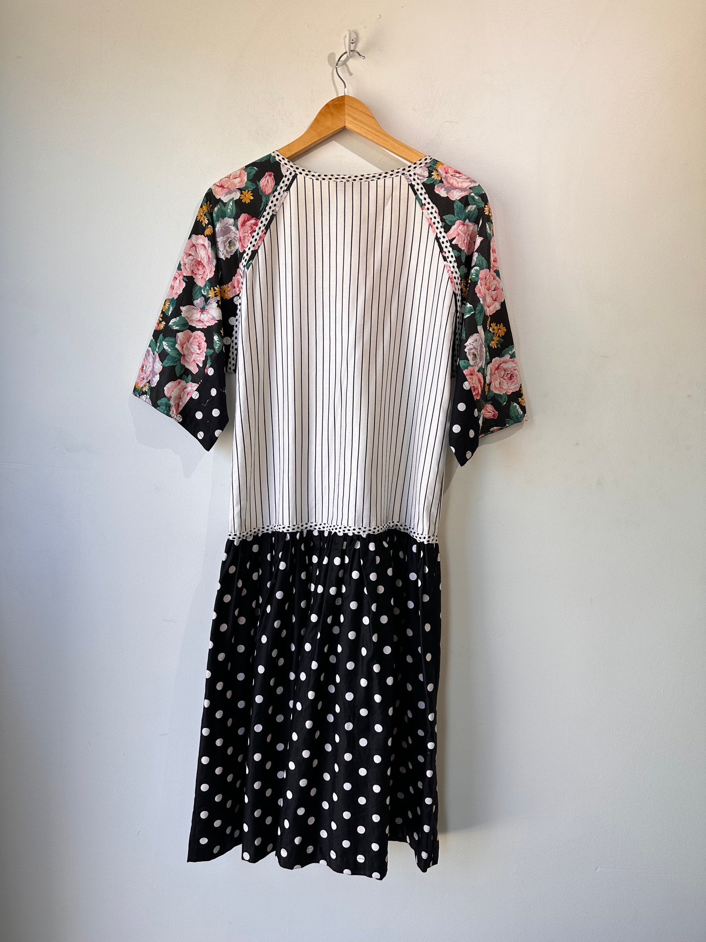 Koos Van Den Akker Floral Stripe Shift Dress. c.1980's Mod Art Mixed Print. Marked size S. Super fun and unique piece! *No belt included*
