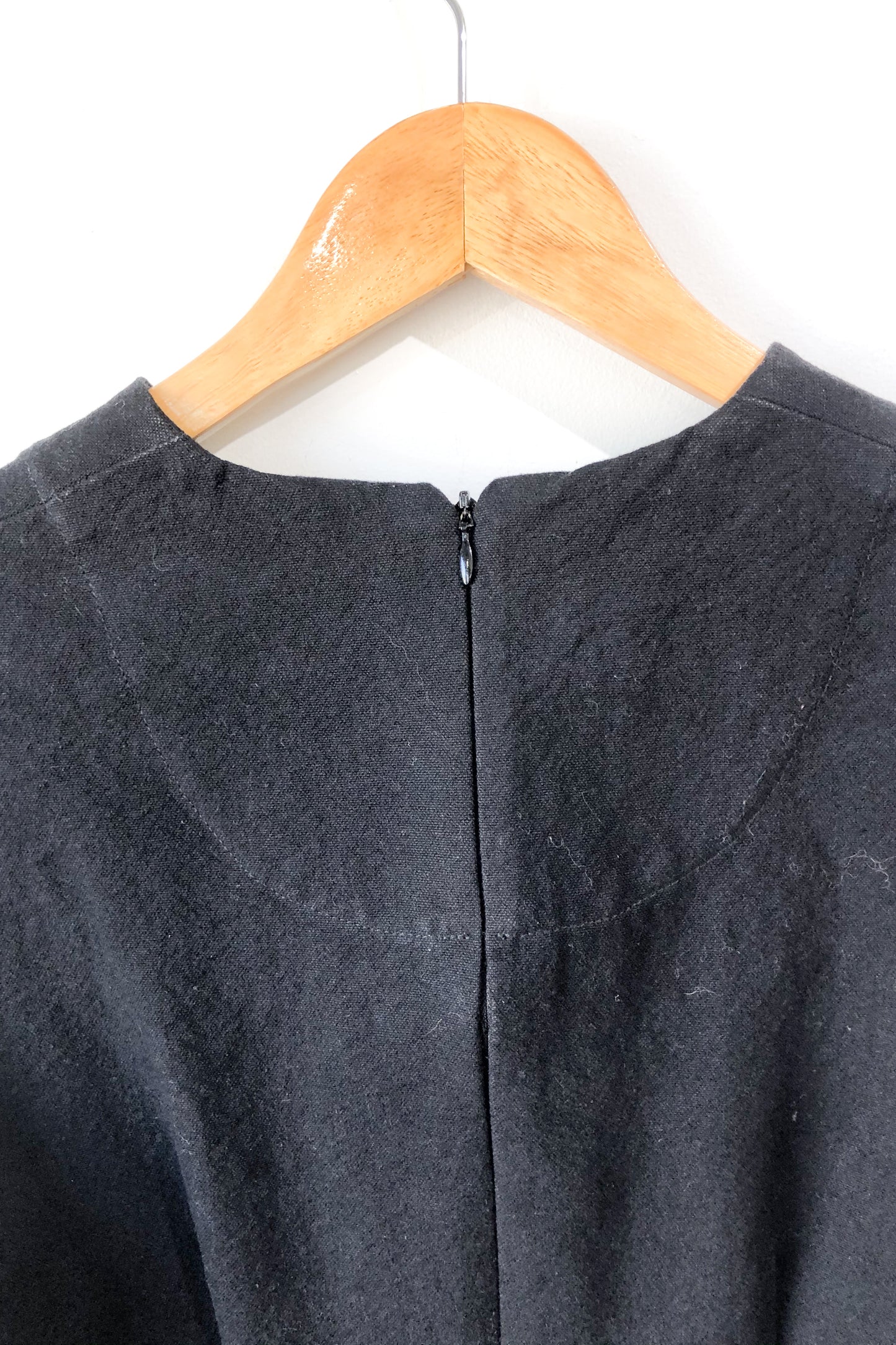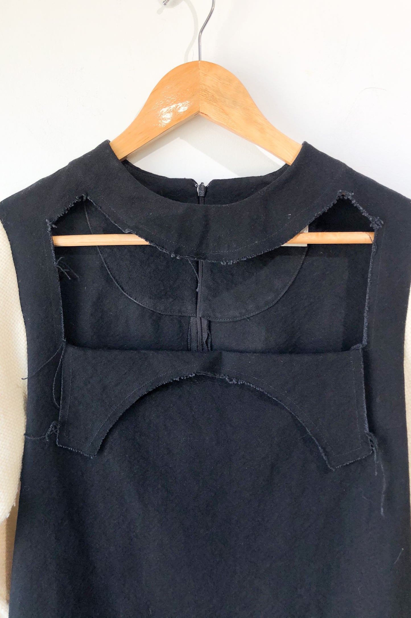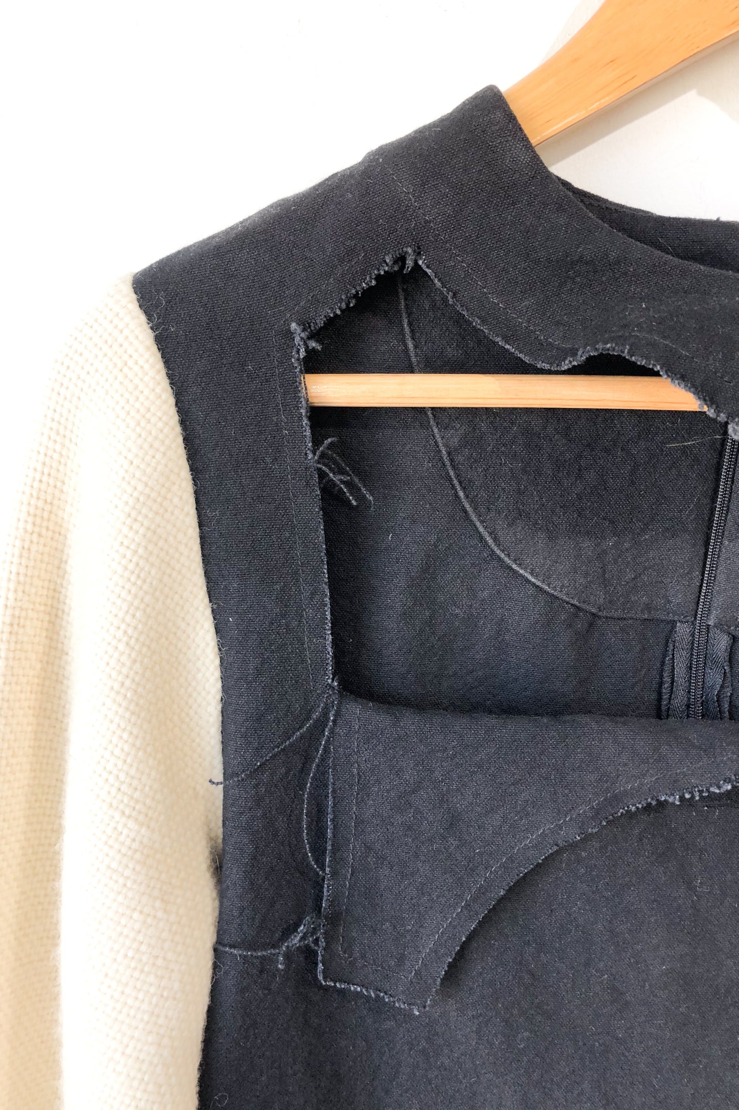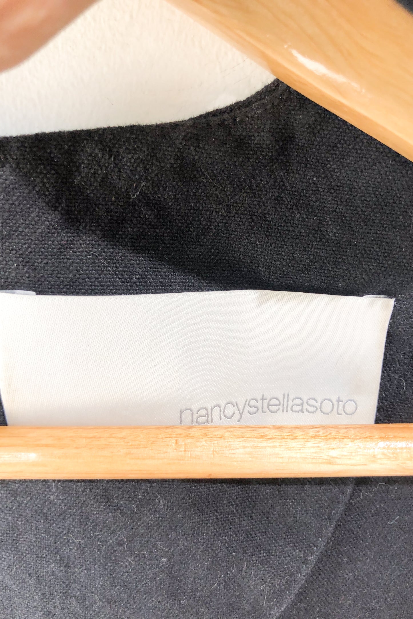 Nancy Stella Soto Black & White Dress. Great condition. Sweater knit 3/4 sleeve at heavy canvas fitted dress. Has cutout detail at front neckline and side pockets. No marked content, feels like cotton. Hand wash cold or professional clean. No marked size, fits XS/S best.