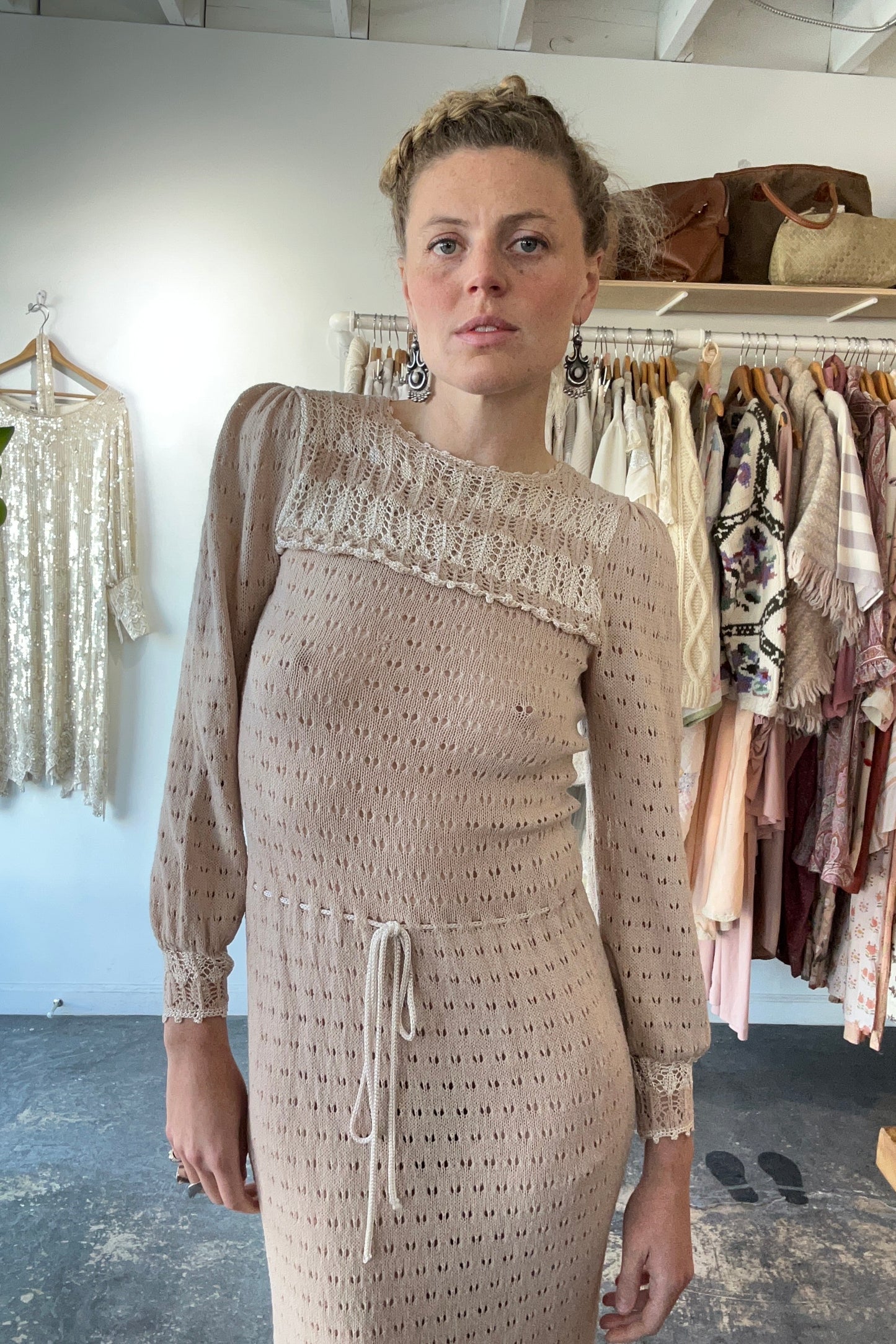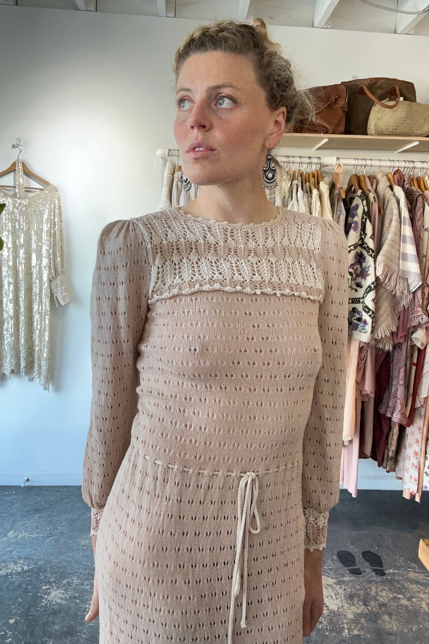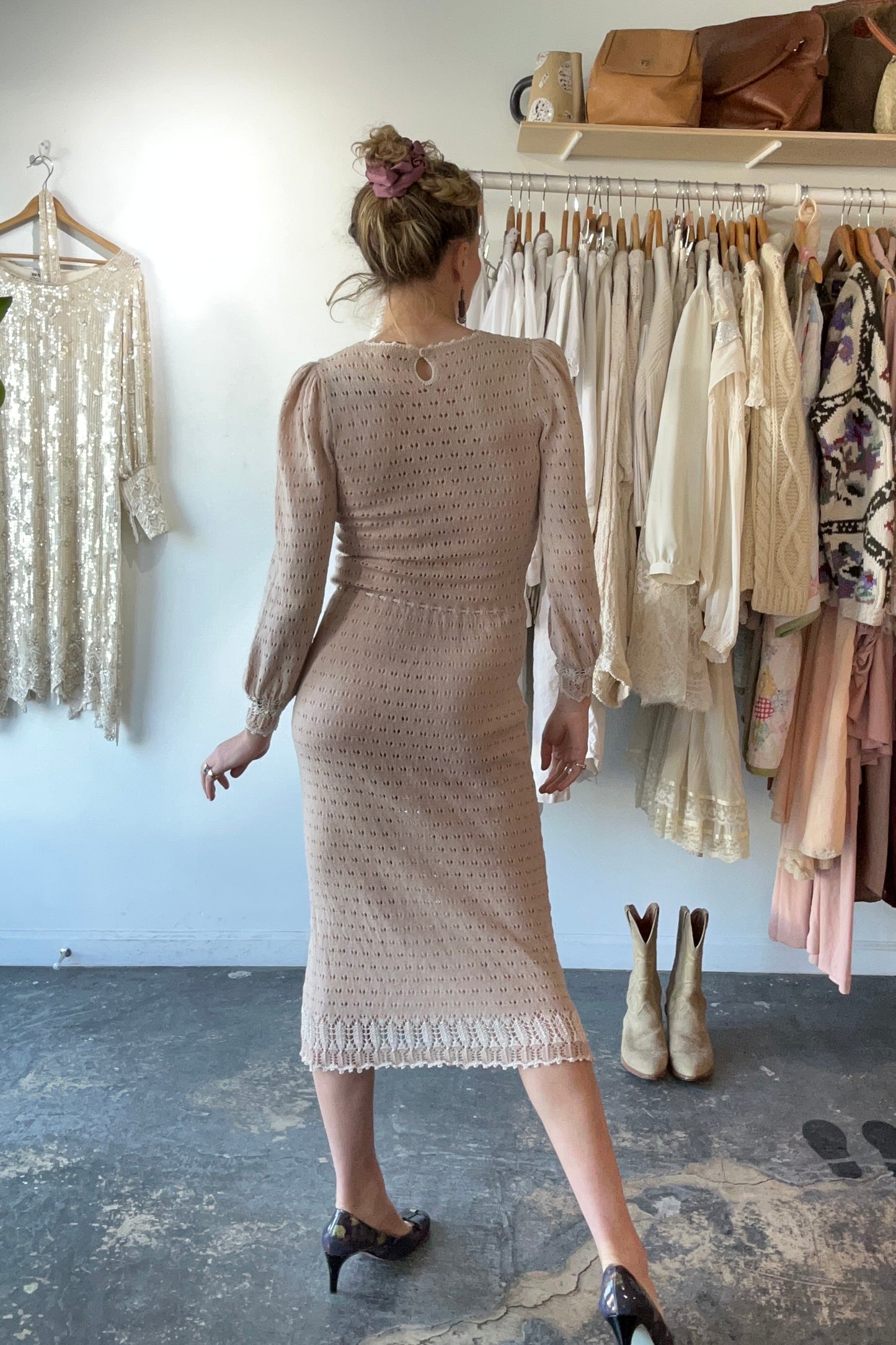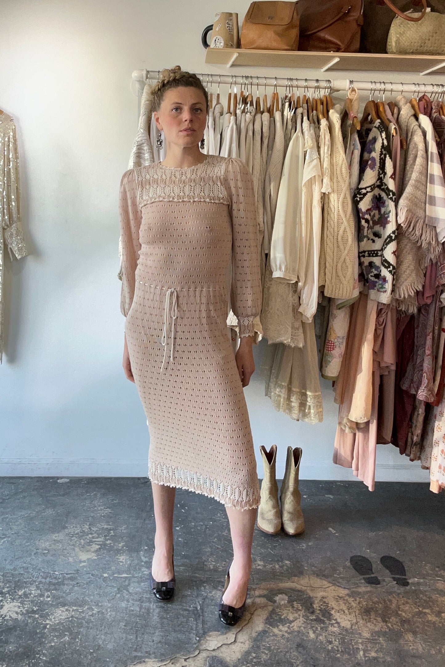 Vintage Oscar de la Renta Bullock’s Cream Knit Dress