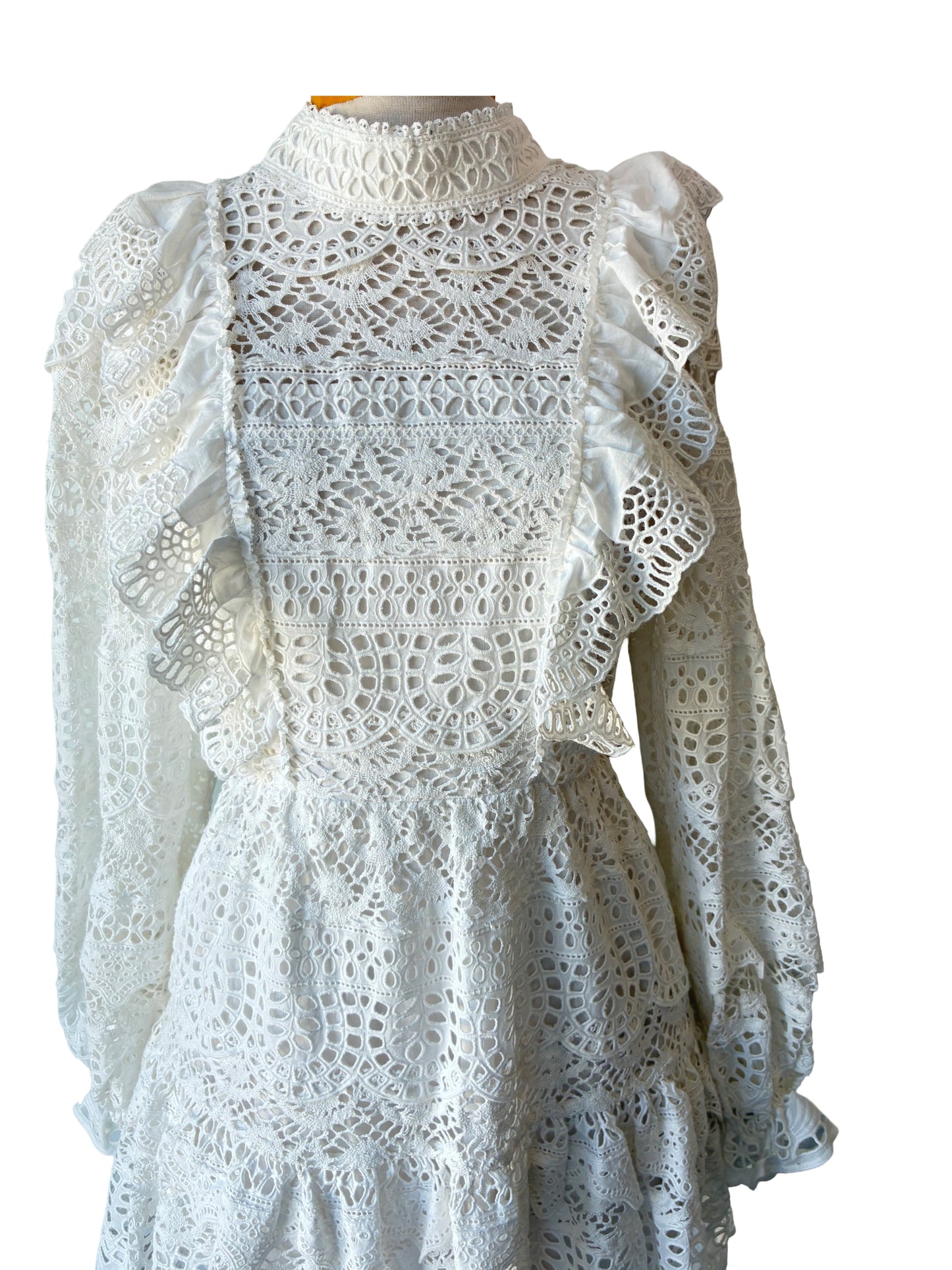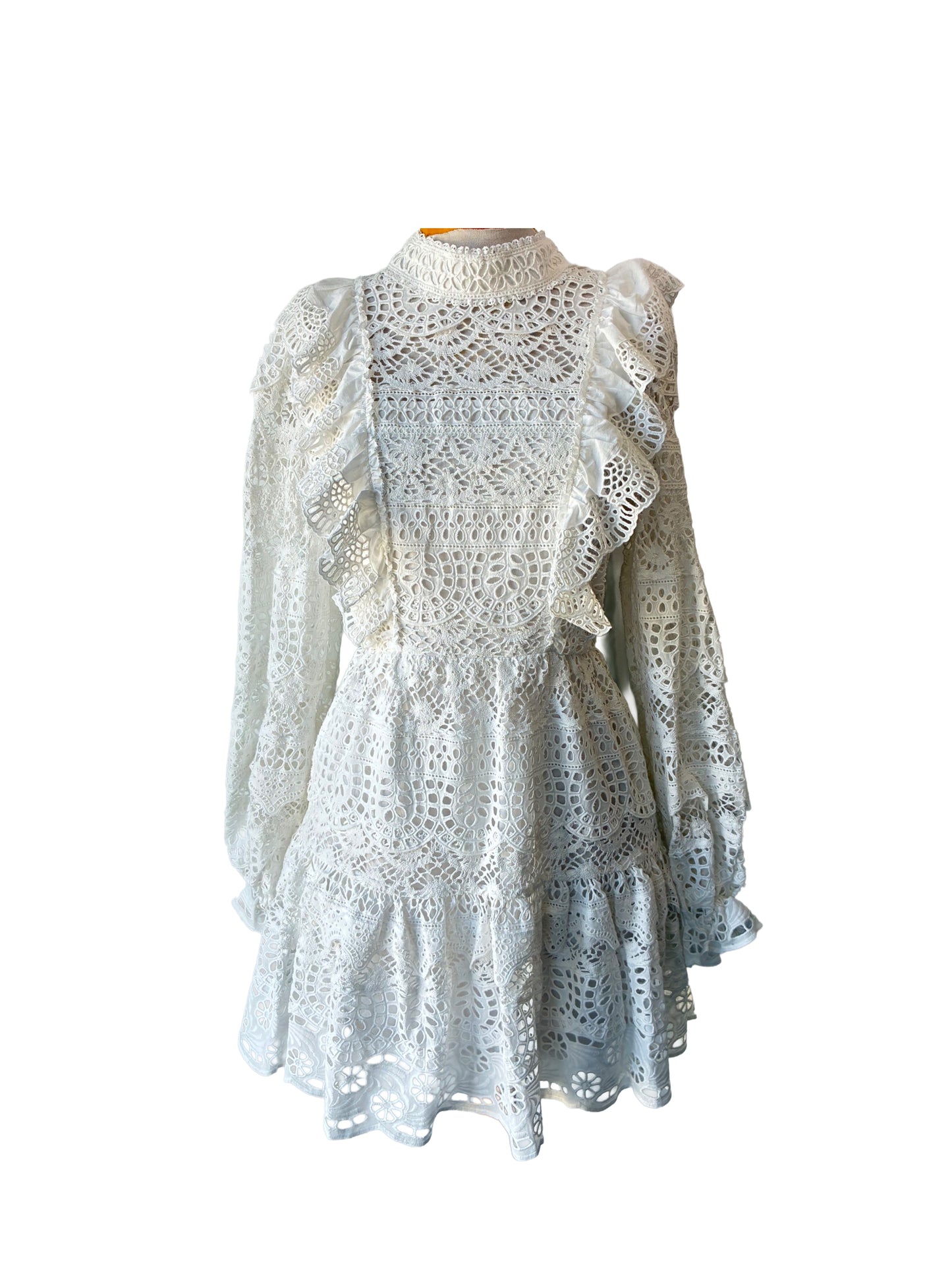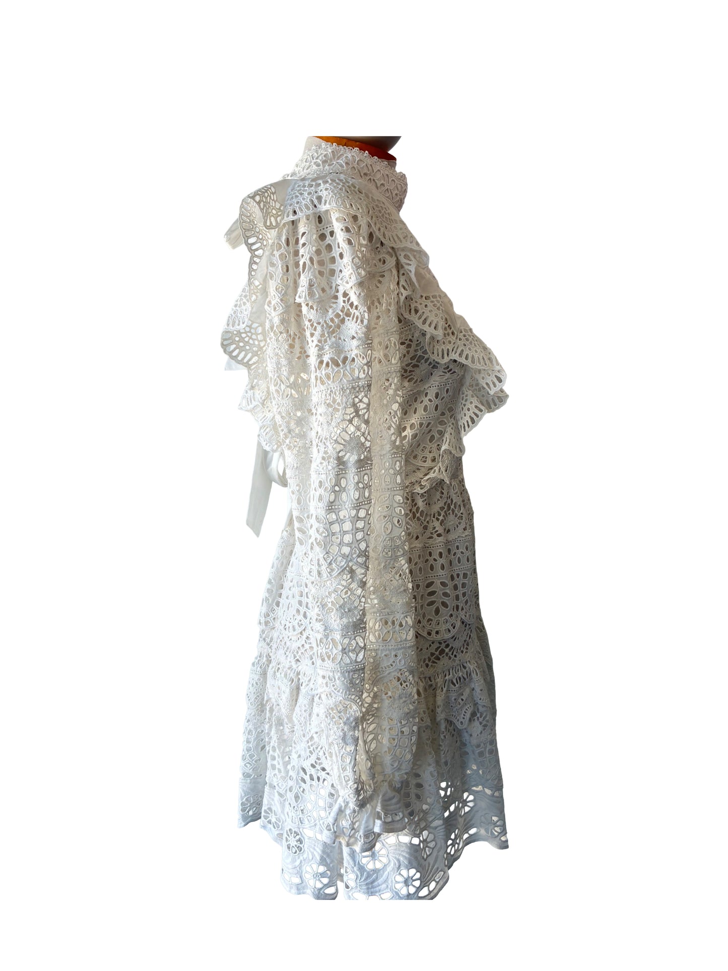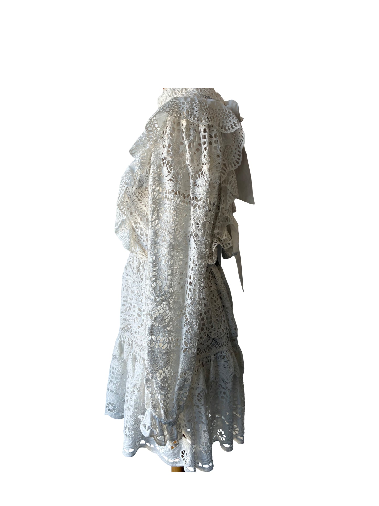 Sea New York White Eyelet Open Back Mini. Imagine a Victorian ingenue who discovered SPF and a social calendar. All ruffles and eyelet up front, but then bam, an open back with double ties that’s basically a wink you can wear. The flouncy skirt does the twirling, you do the trouble-making. It’s prim meets playful, with just enough scandal to keep things interesting. NWT.