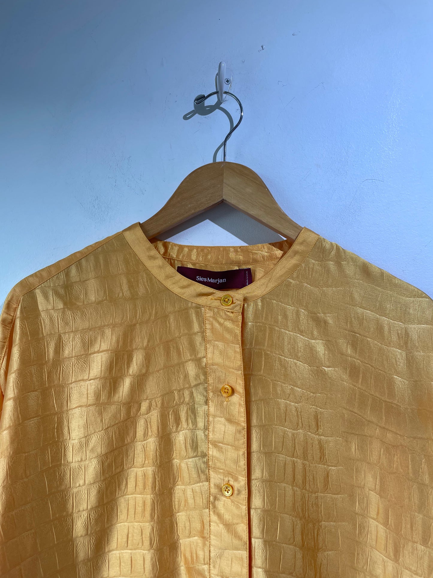 Sies Marjan Yellow Textured Dress. A fun, short shirt dress from Sies Marjan. Textured fabric in an almost snake or reptile skin type of look. 100% polyester. In very good condition. Marked size M, please refer to measurements.