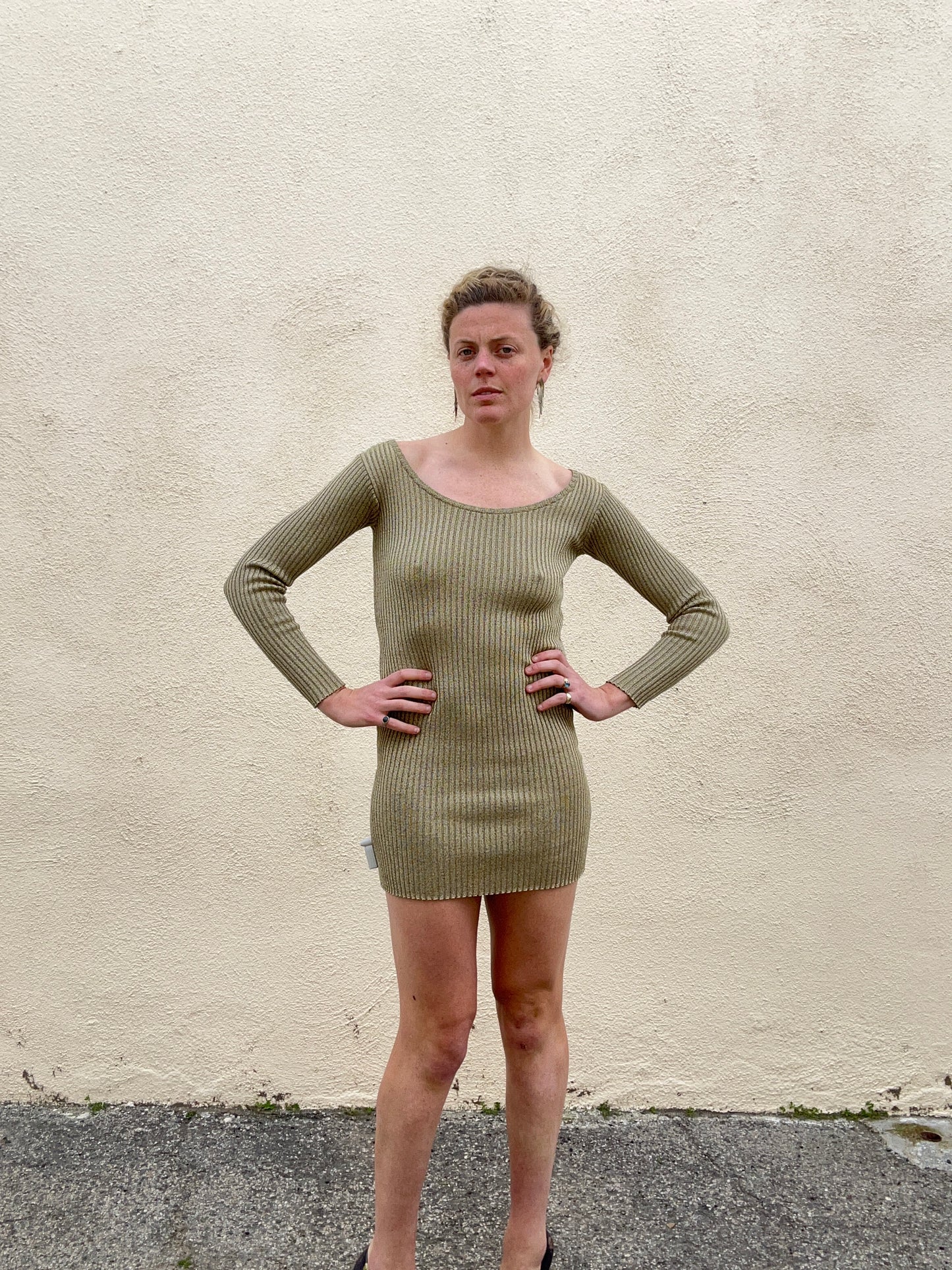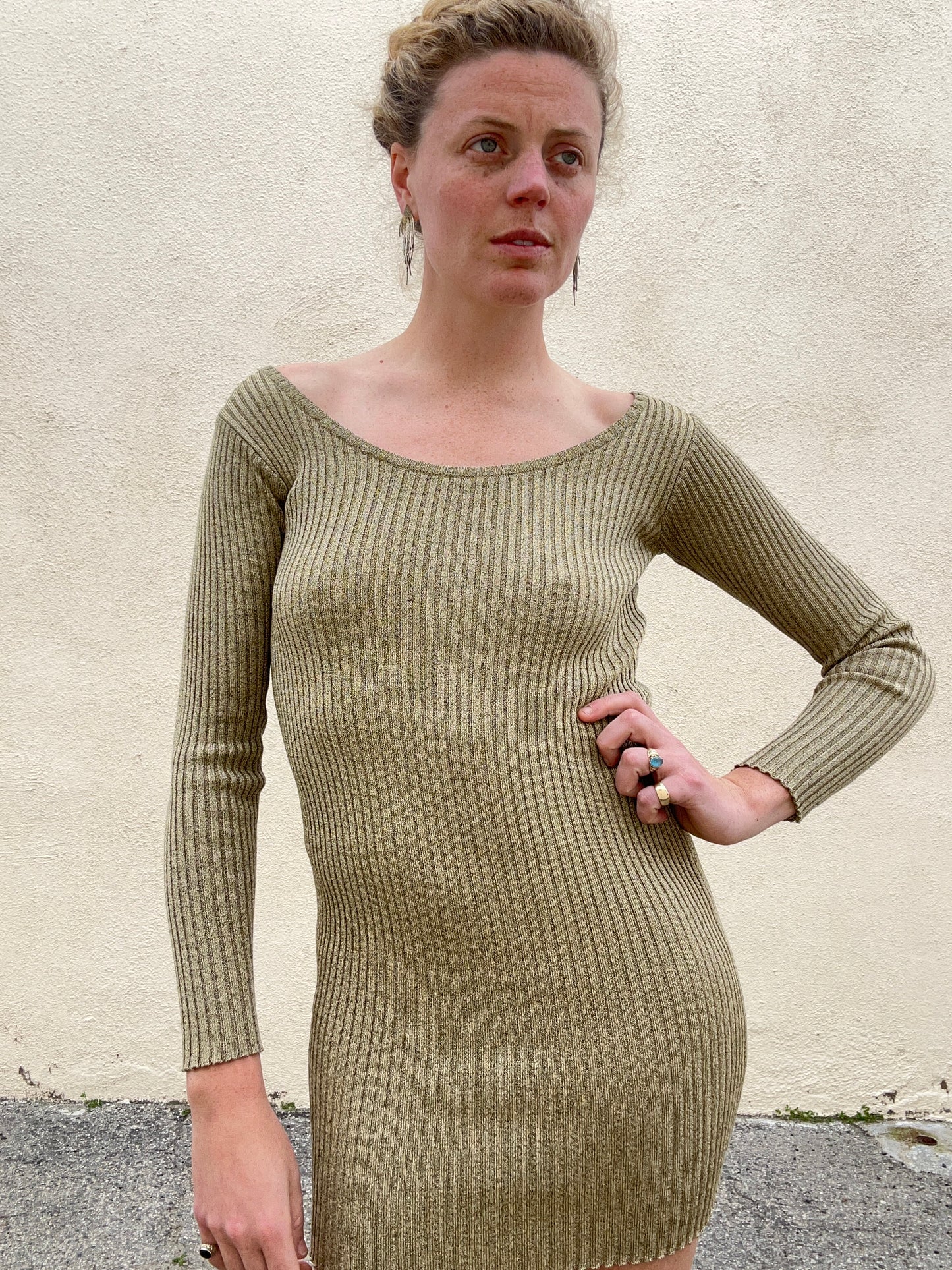 Vintage Helmut Lang Shiny Ribbed Bodycon Dress