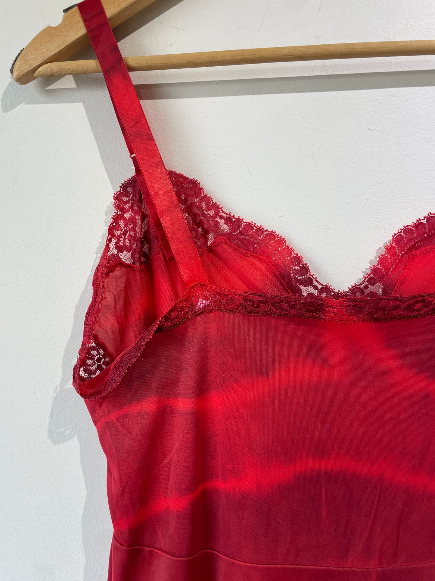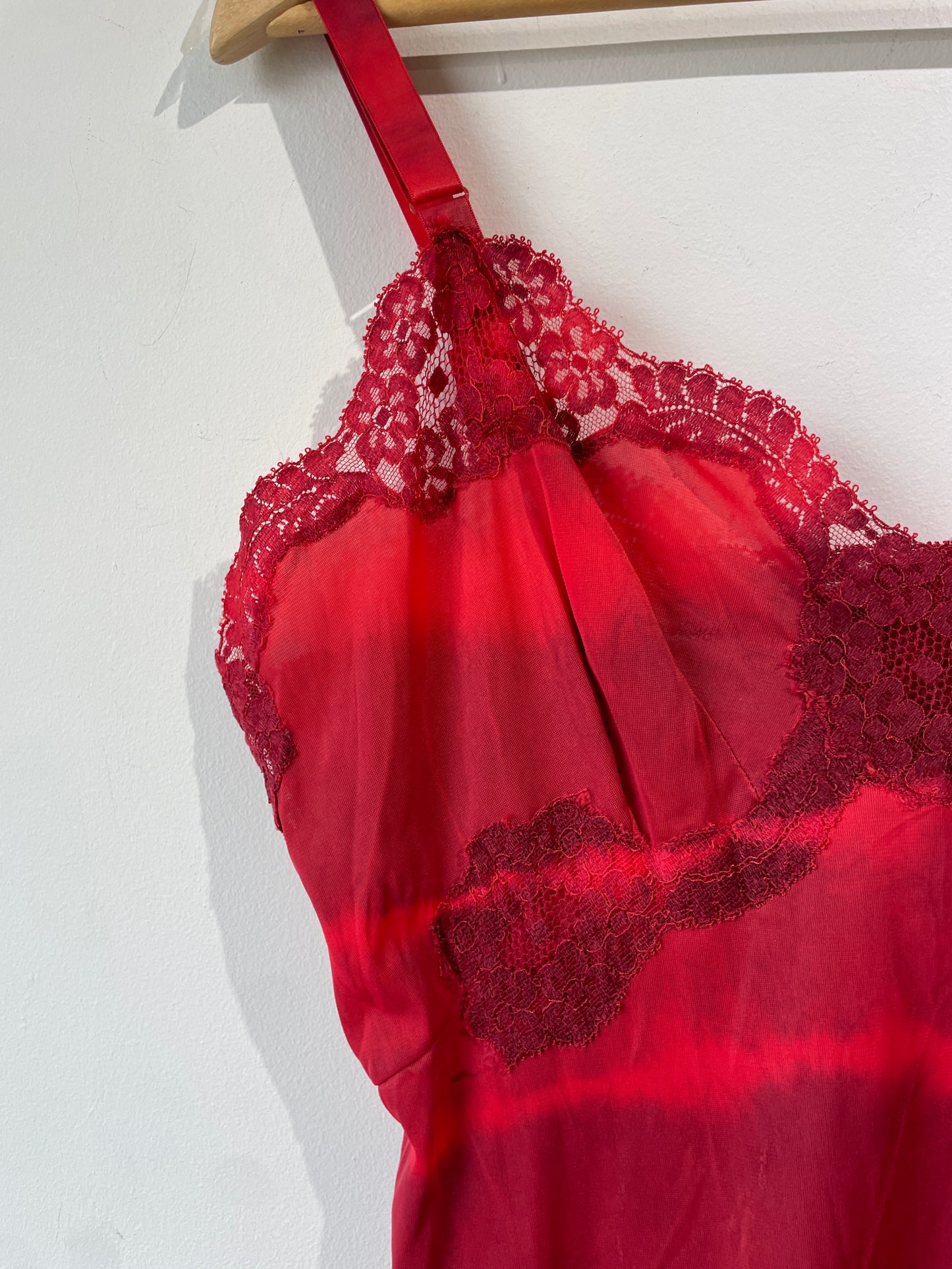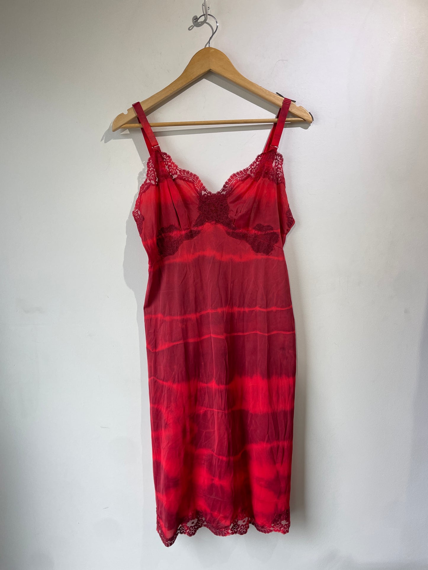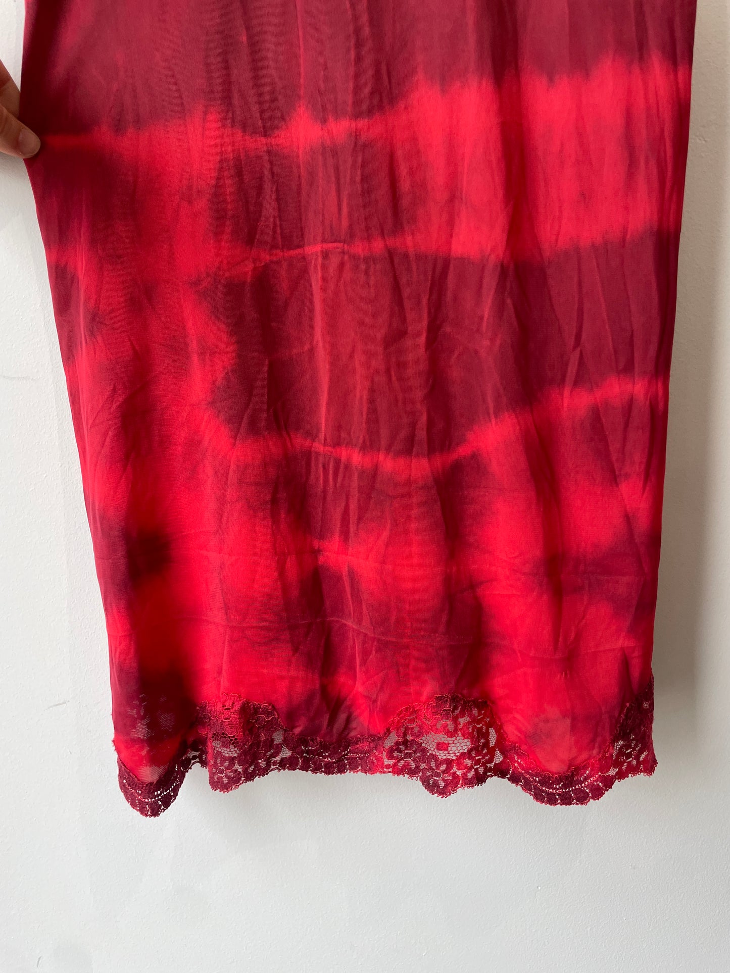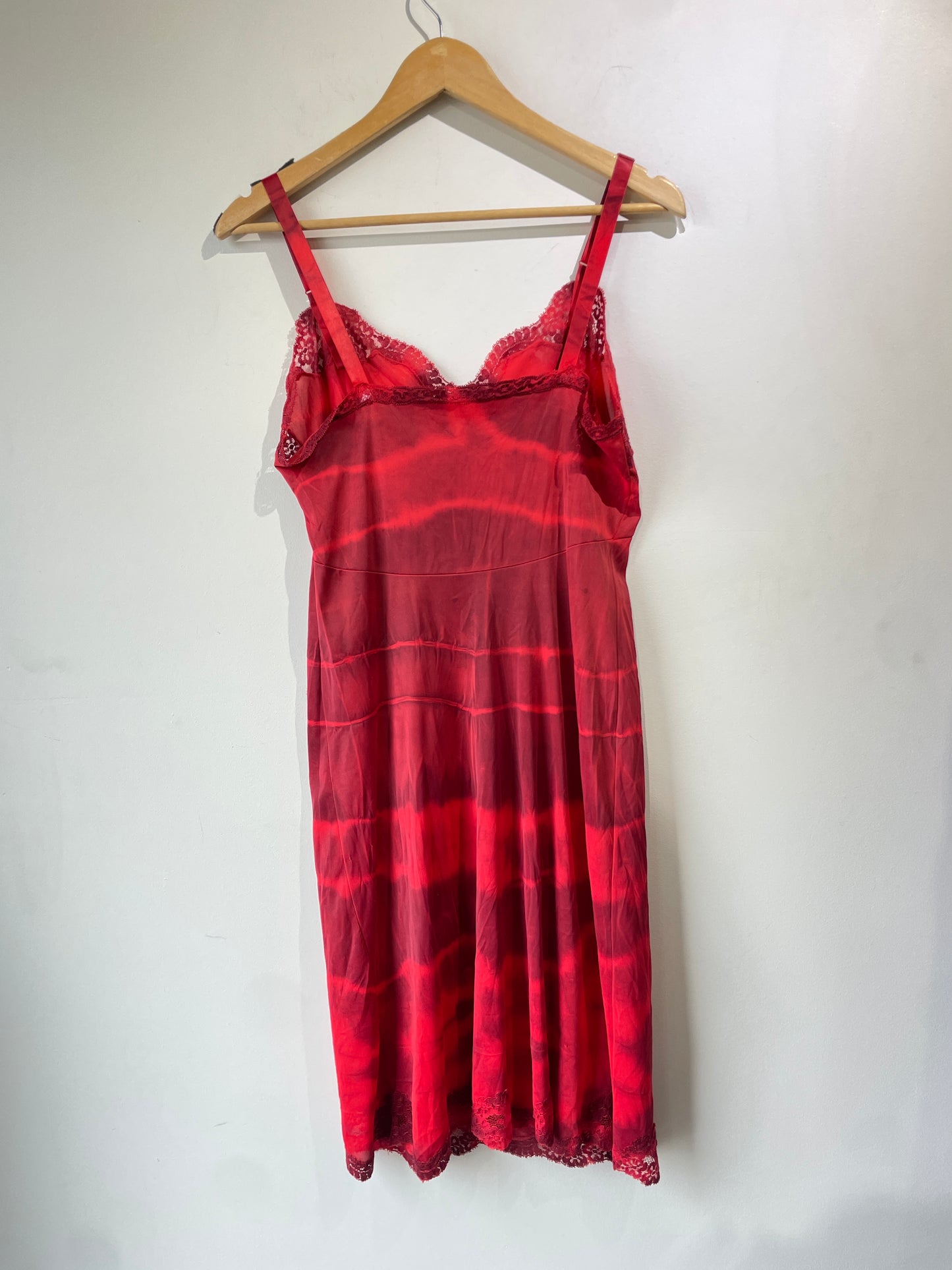 Vintage Tie Dye Slip Dress. Hand dyed and vintage with pretty lace detailing at the bust and hem. Marked size 36.
