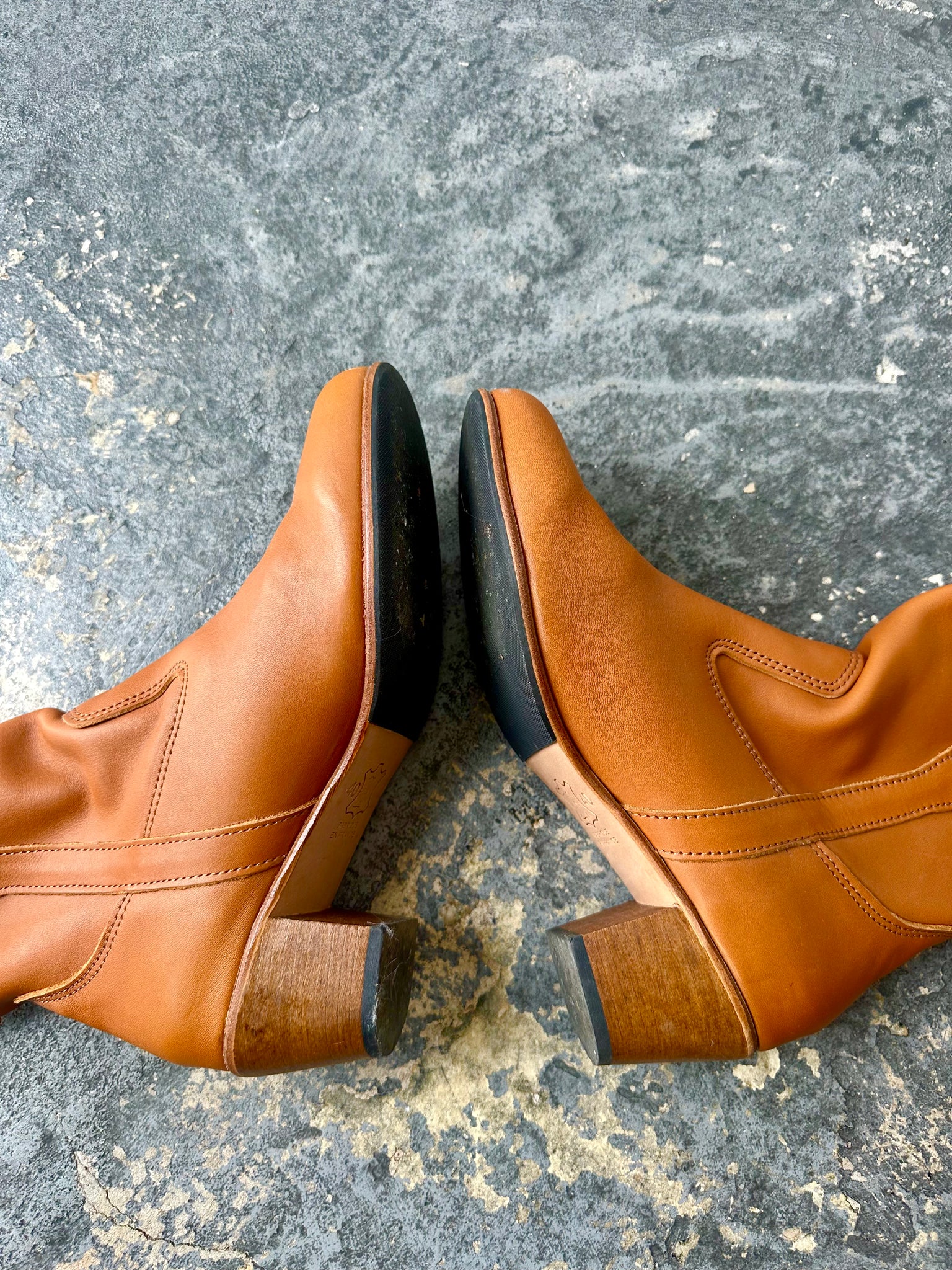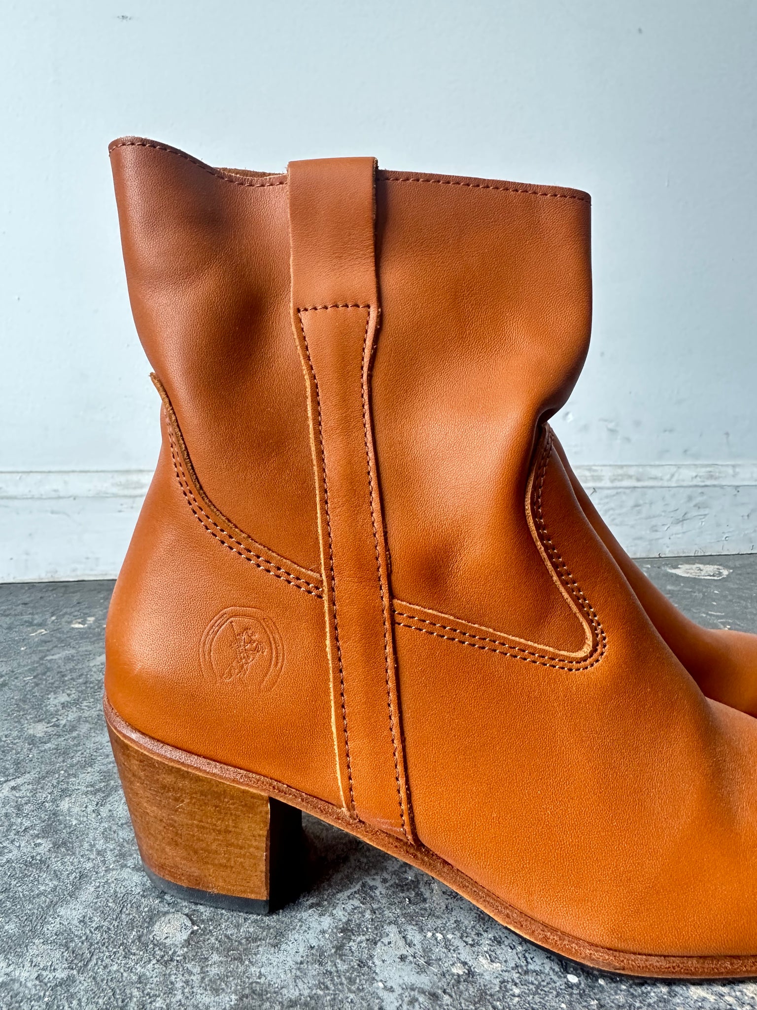 The La Botte Gardiane Leather Ankle Boots are artisanal shoes handmade in France. In a camel colored leather with a French heritage meets western style, these boots were made with quality, longevity, and timelessness in mind. Perfect condition.