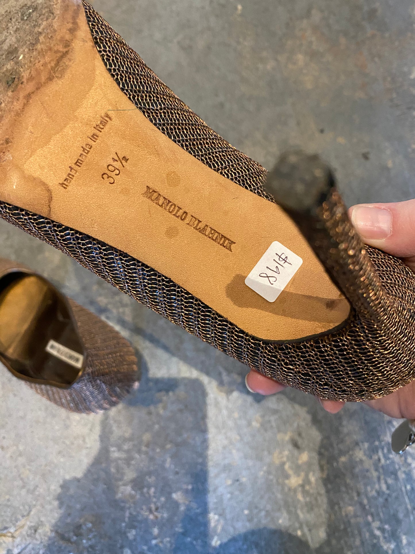 Manolo Blahnik Copper Textured Pointed-Toe Pumps! Sexiest shoe ever!