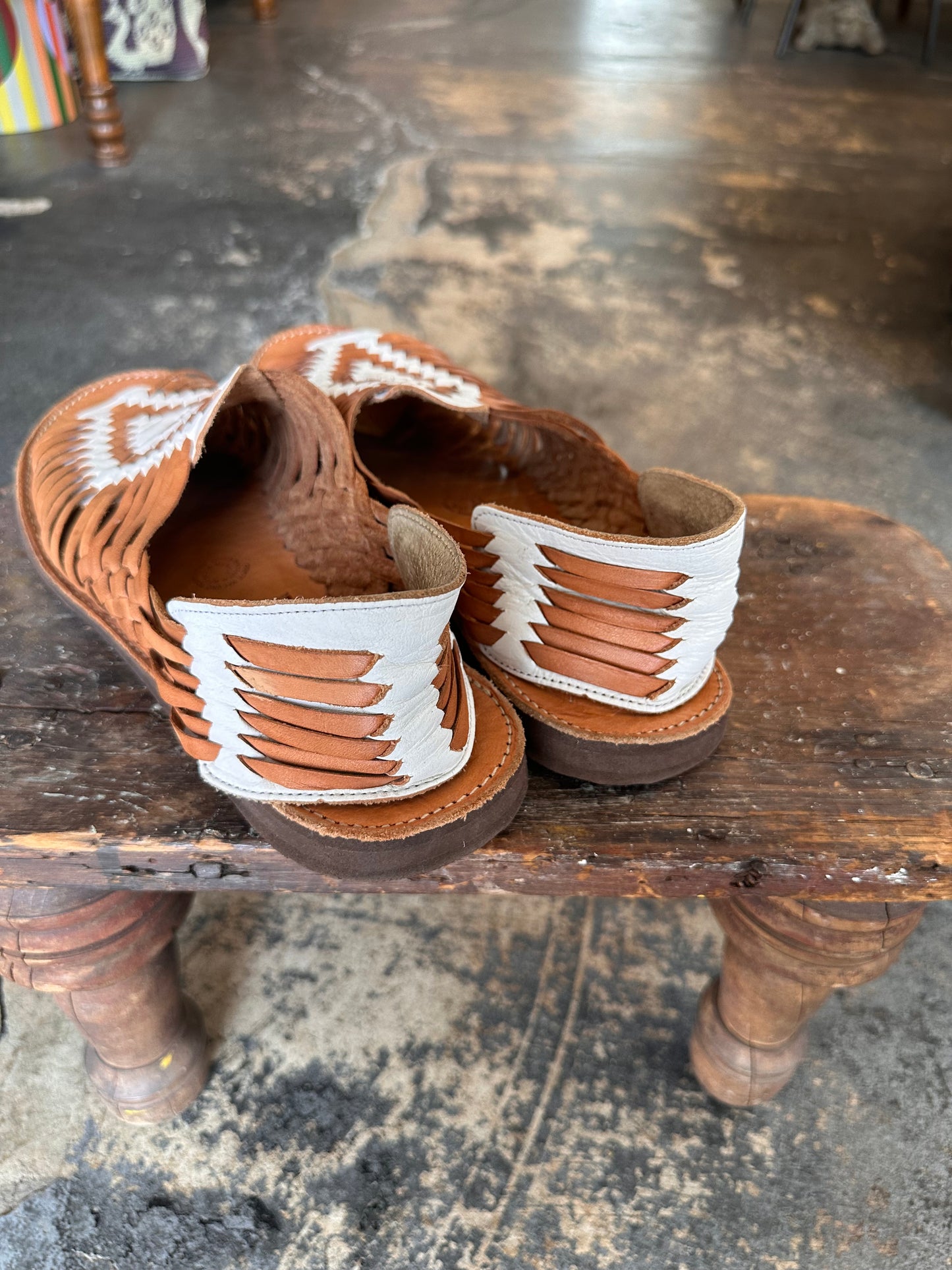 Chamula Harache Sandals. Woven with white and brown leather. Marked size 10. In excellent condition. Originally sold for $139.