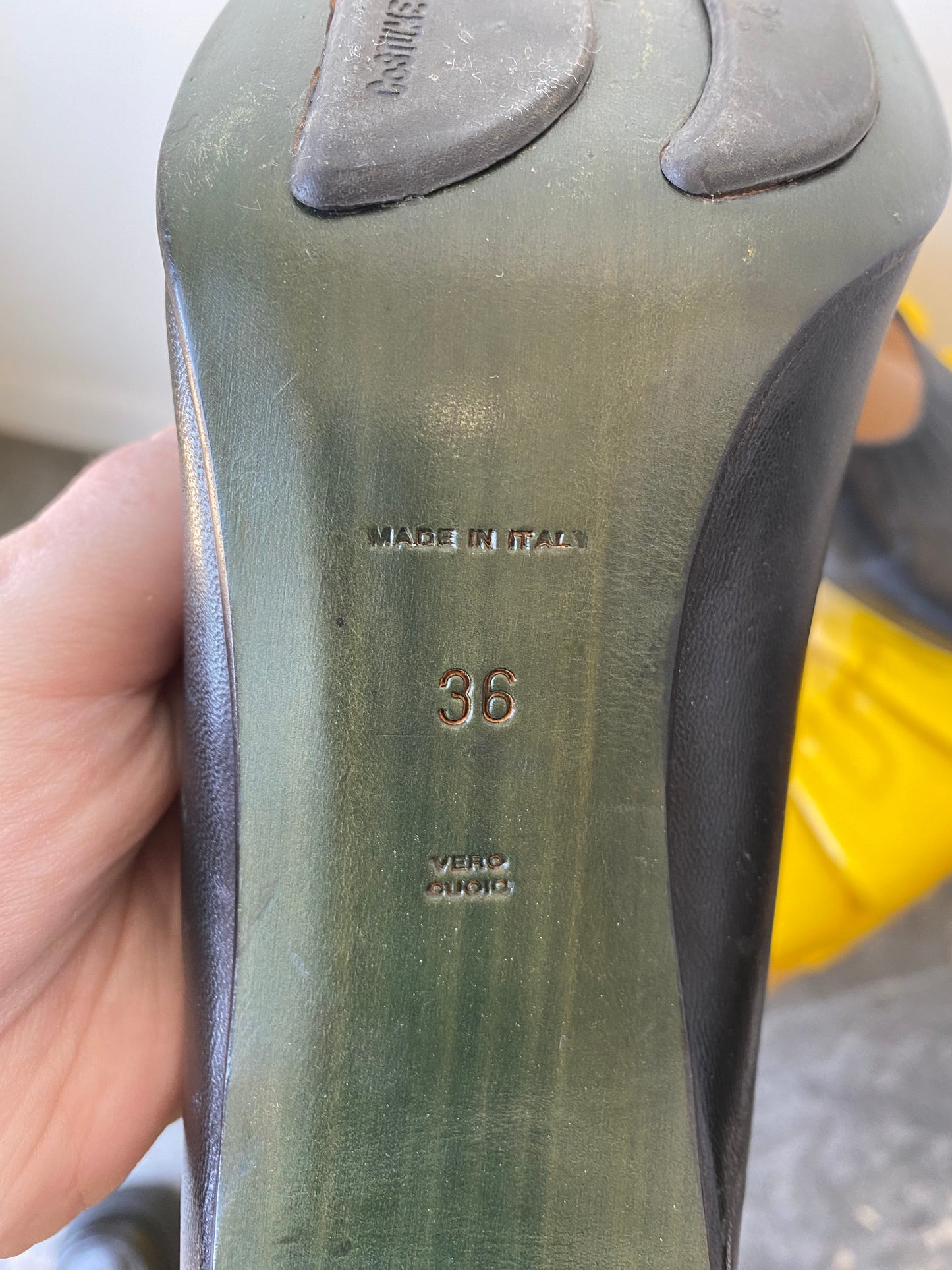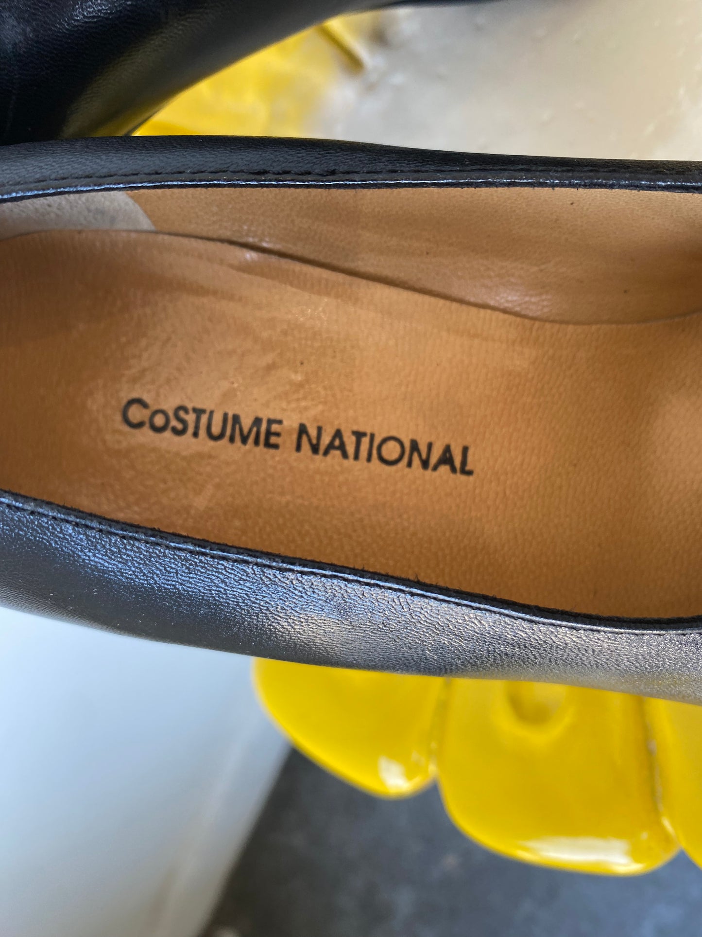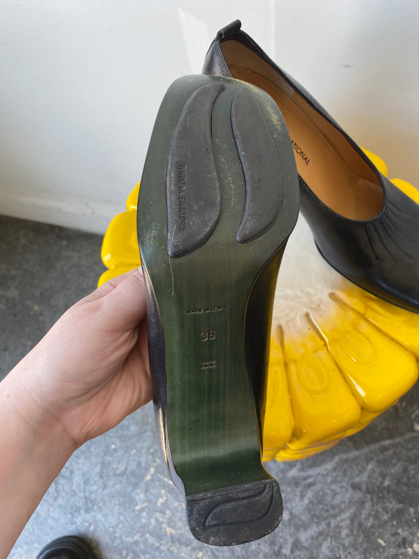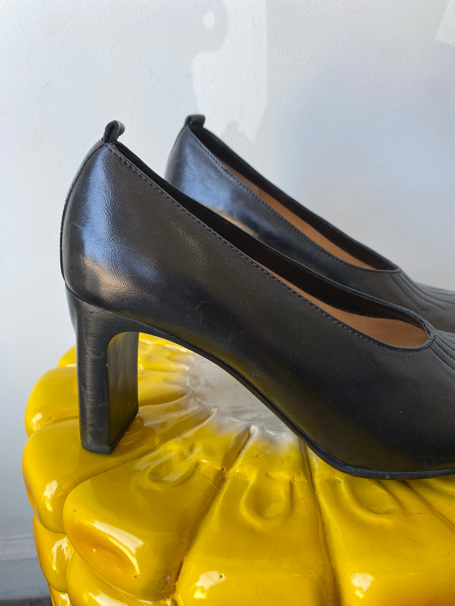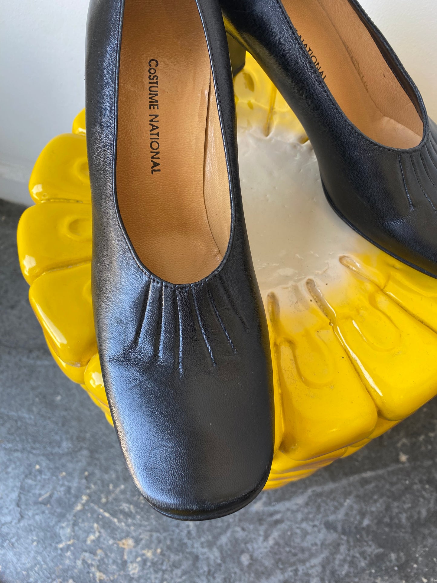 Costume National Black Leather Heels! Elongated squarish toe and a block heel. Size 36. In excellent condition!