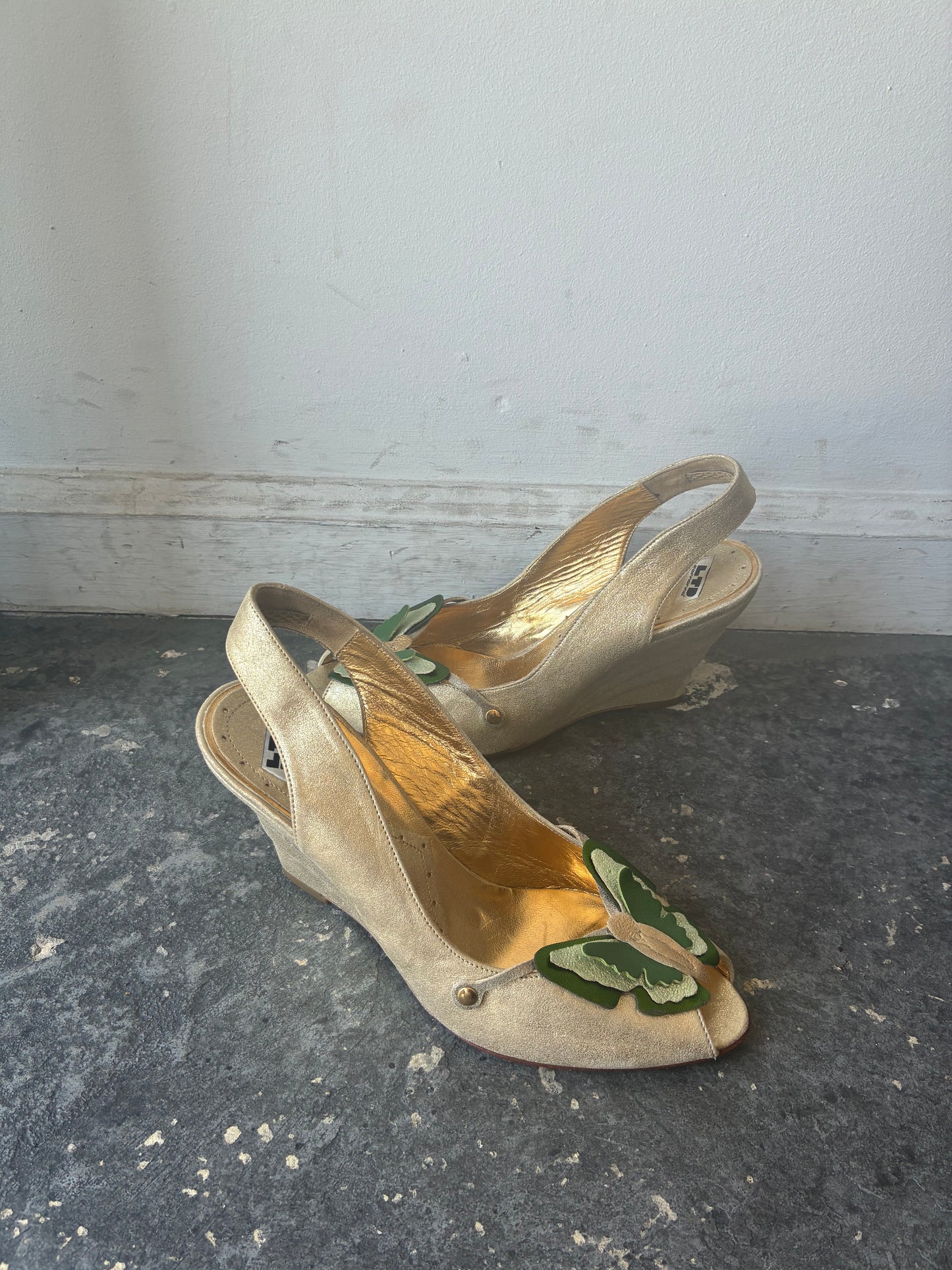 Ltd. Fornarina Butterfly Gold Wedges Size 37