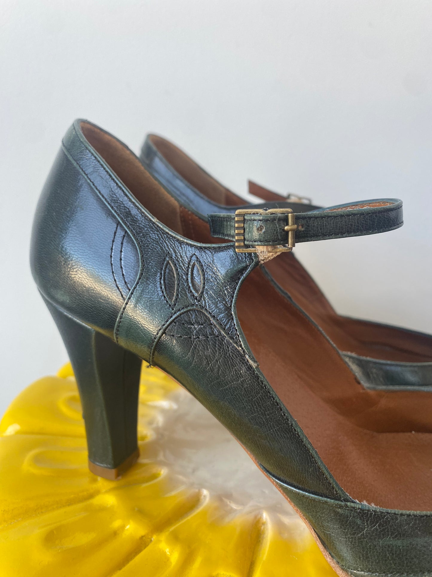 Marc Jacobs Green Mary Jane Heels! Cutest stitching details on the leather. Made in Italy. Size 9. In overall great condition with minor wear on the heels and delicate buckles.