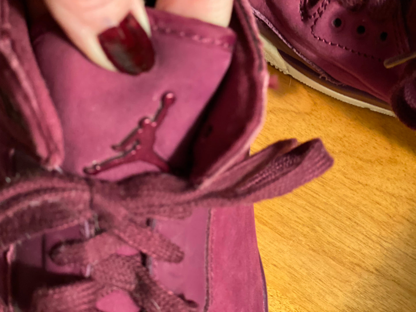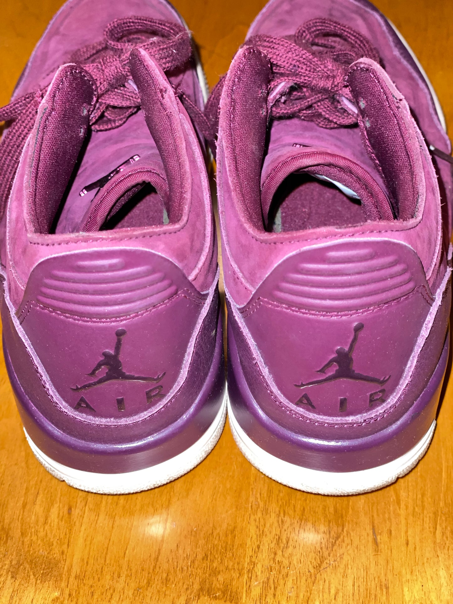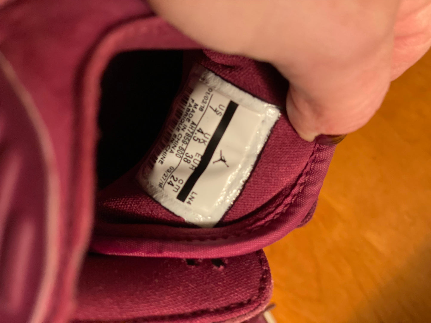 Nike Air Jordans in purple suede, size women’s 7 in excellent condition. Marked 6.5 but I think there’s a little room. Only worn for photo shoot.