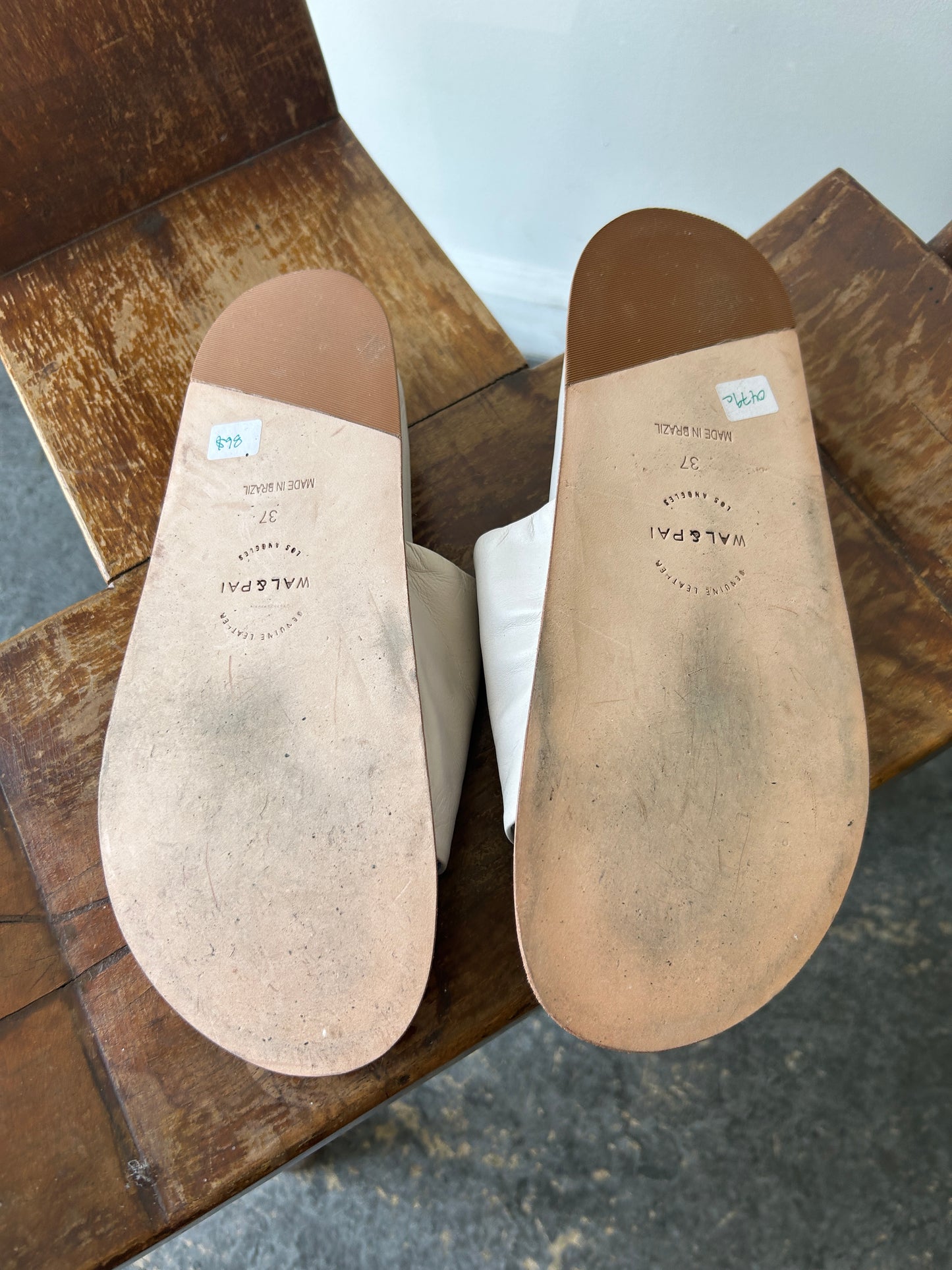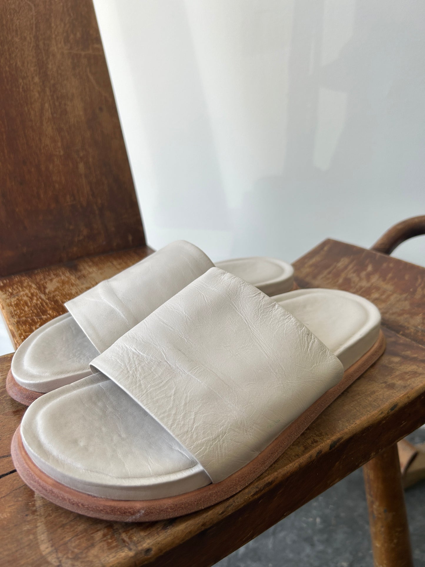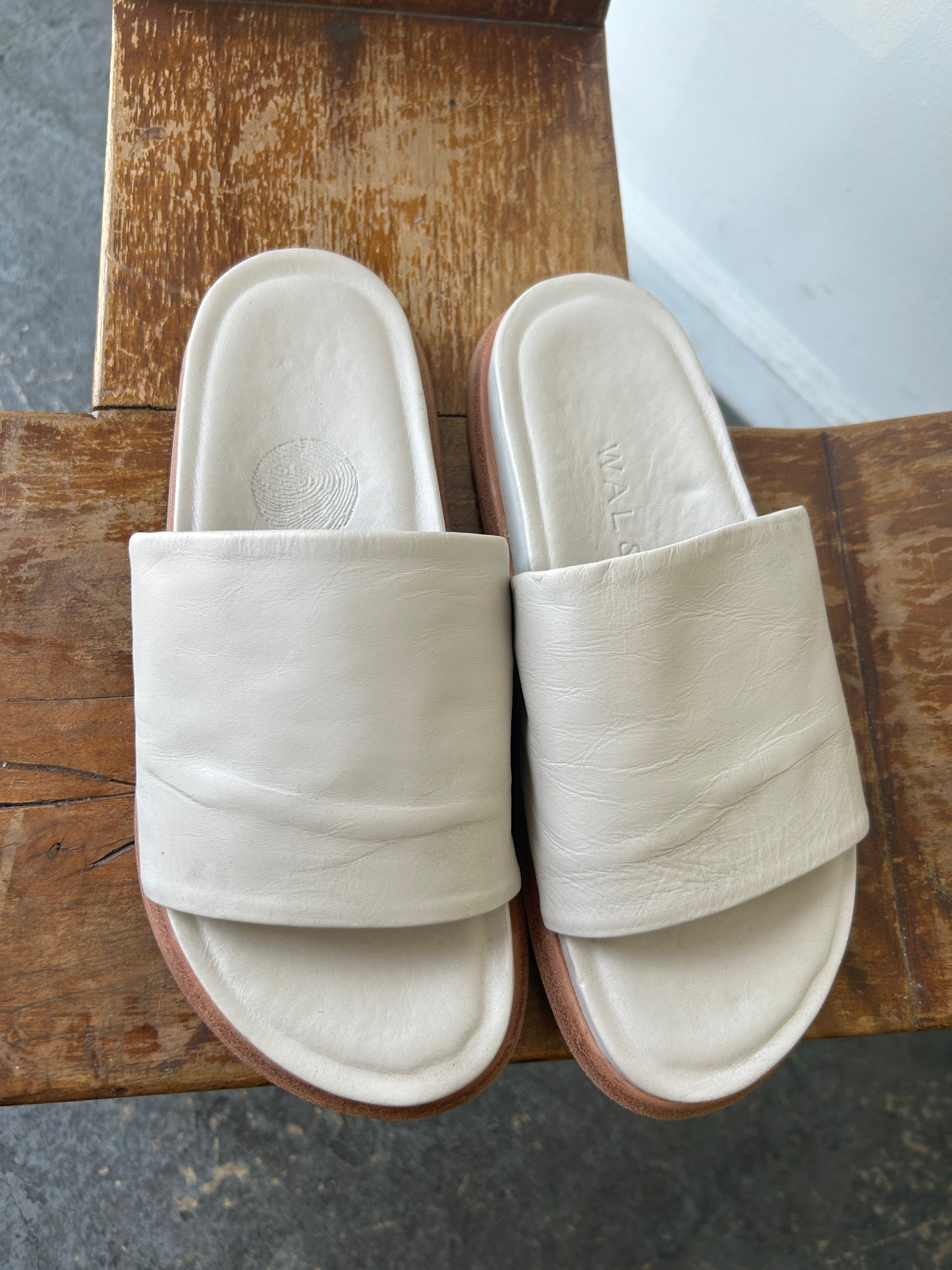 Wal and Pai White Leather Slides
