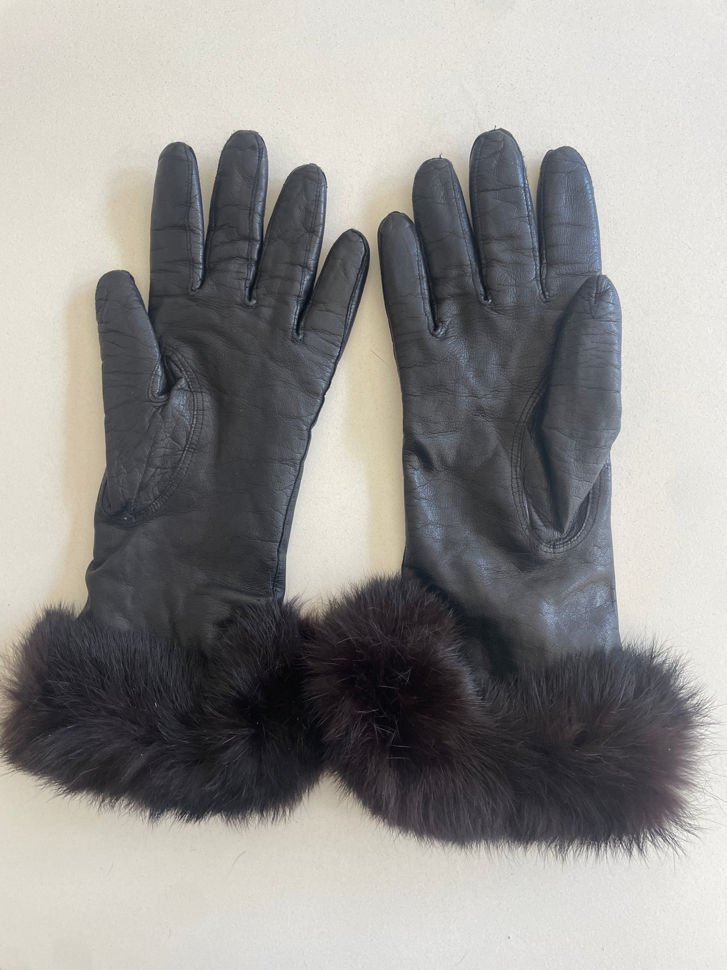 Vintage Fur Cuffed Kid Leather Gloves