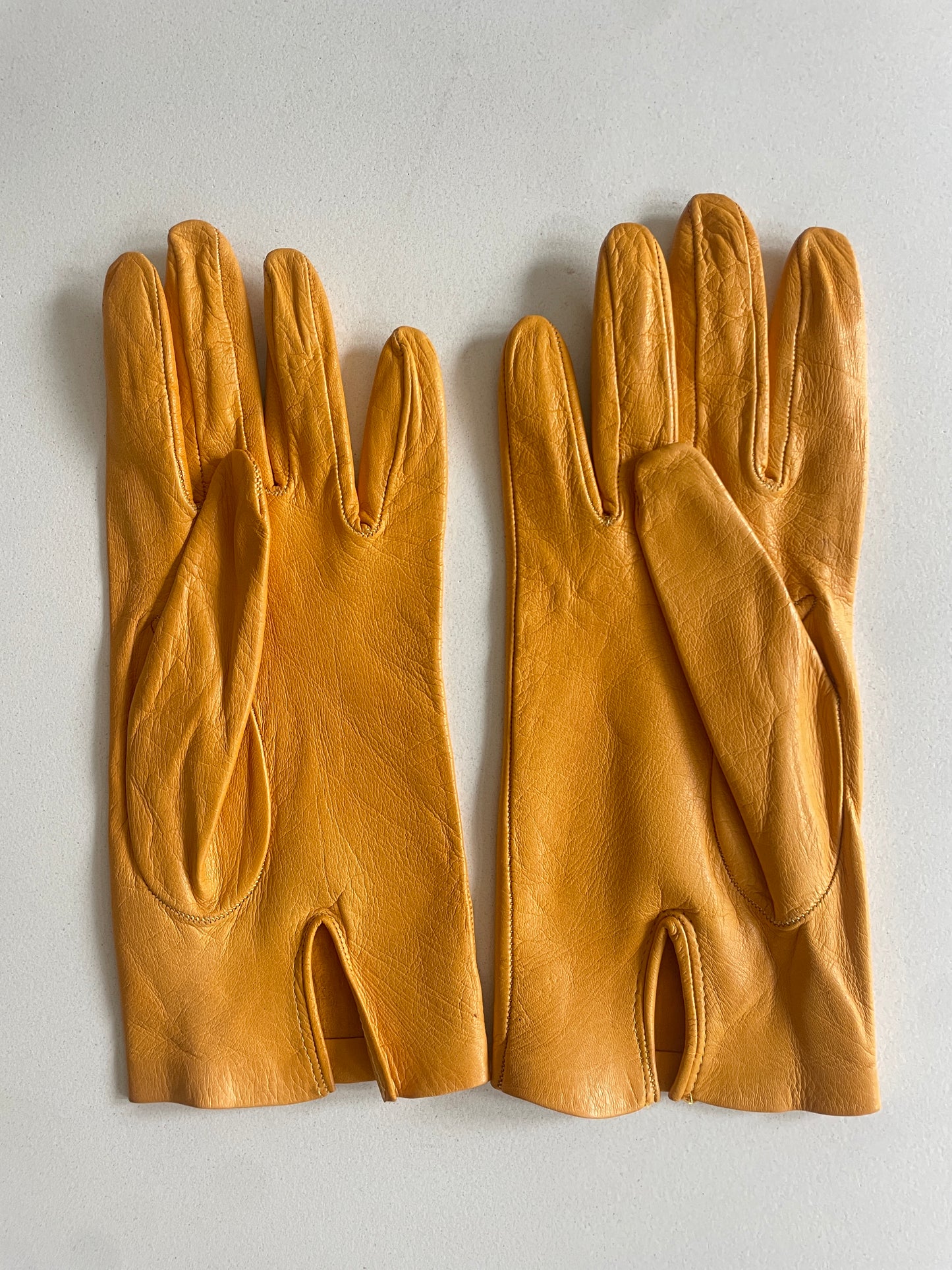 Vintage Mustard Yellow Kid Leather Gloves - The Curatorial Dept.