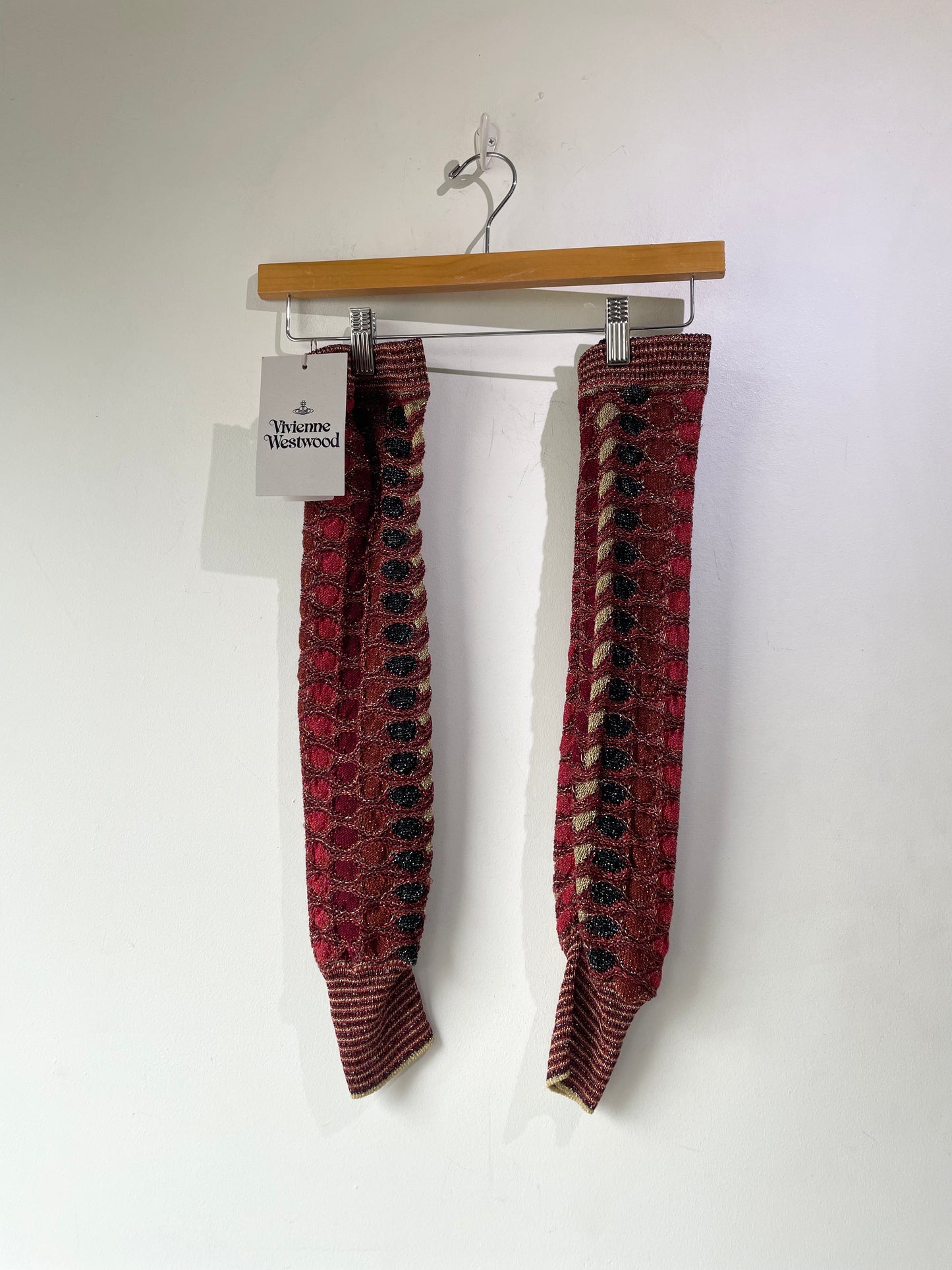 Vivienne Westwood Edith Red & Gold Knit Arm Warmers