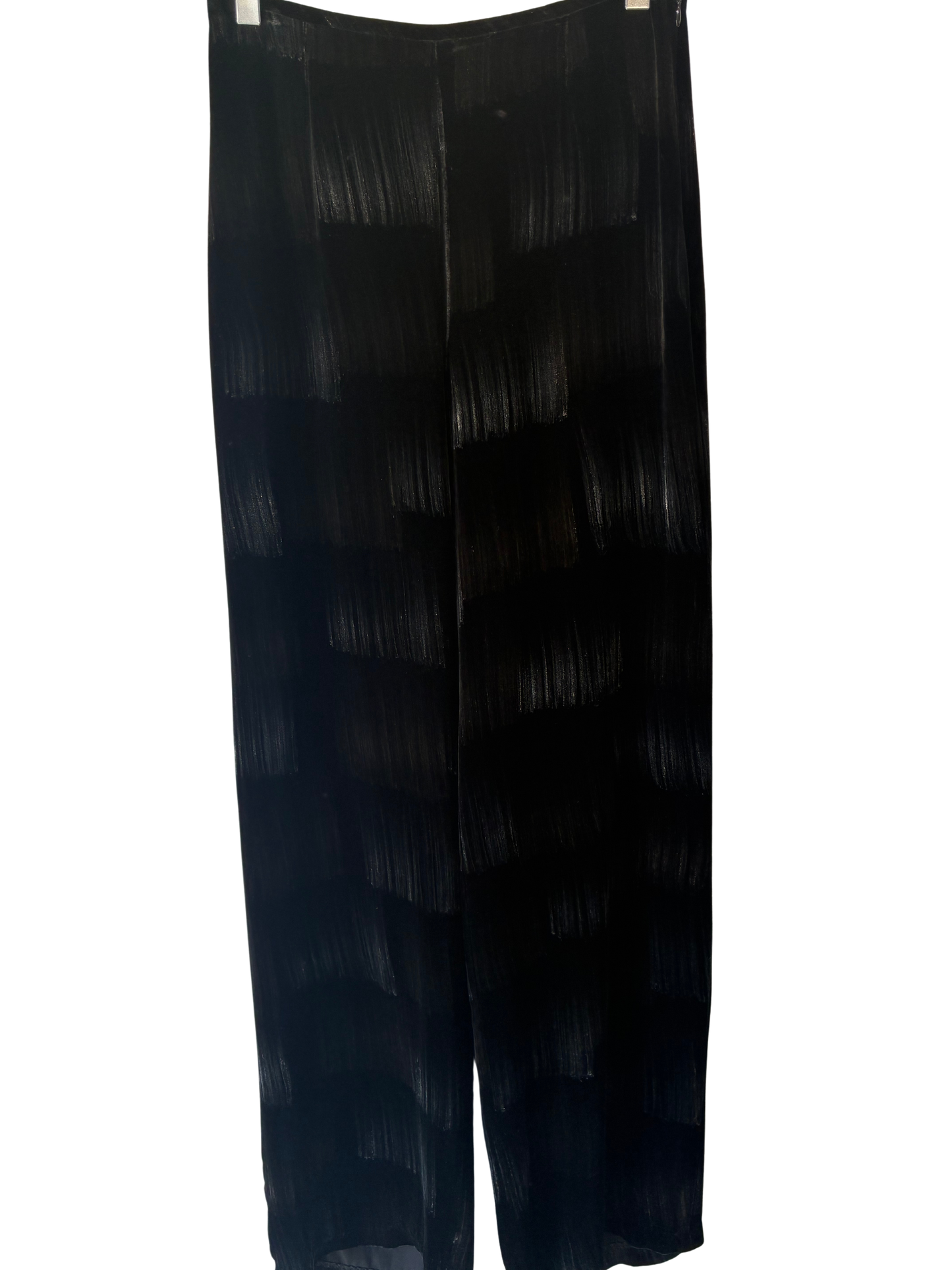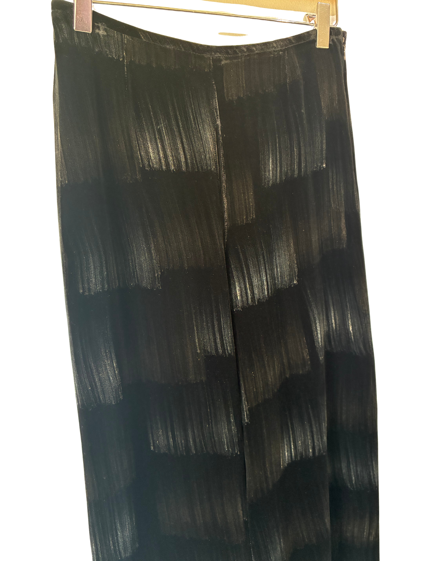 Plush black velvet is kissed with the subtlest bronze and silver brushstroke shimmer for just the right amount of intrigue. Silk lined with a sleek side zip and straight leg fit, they are party perfect and ever so much fun to accessorize!
