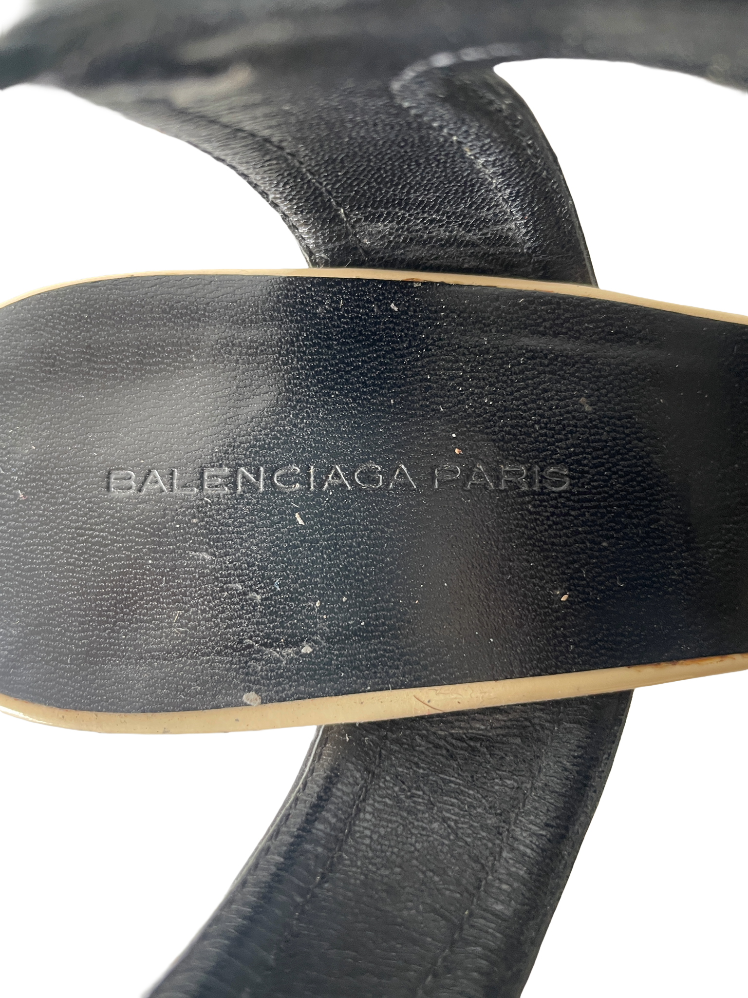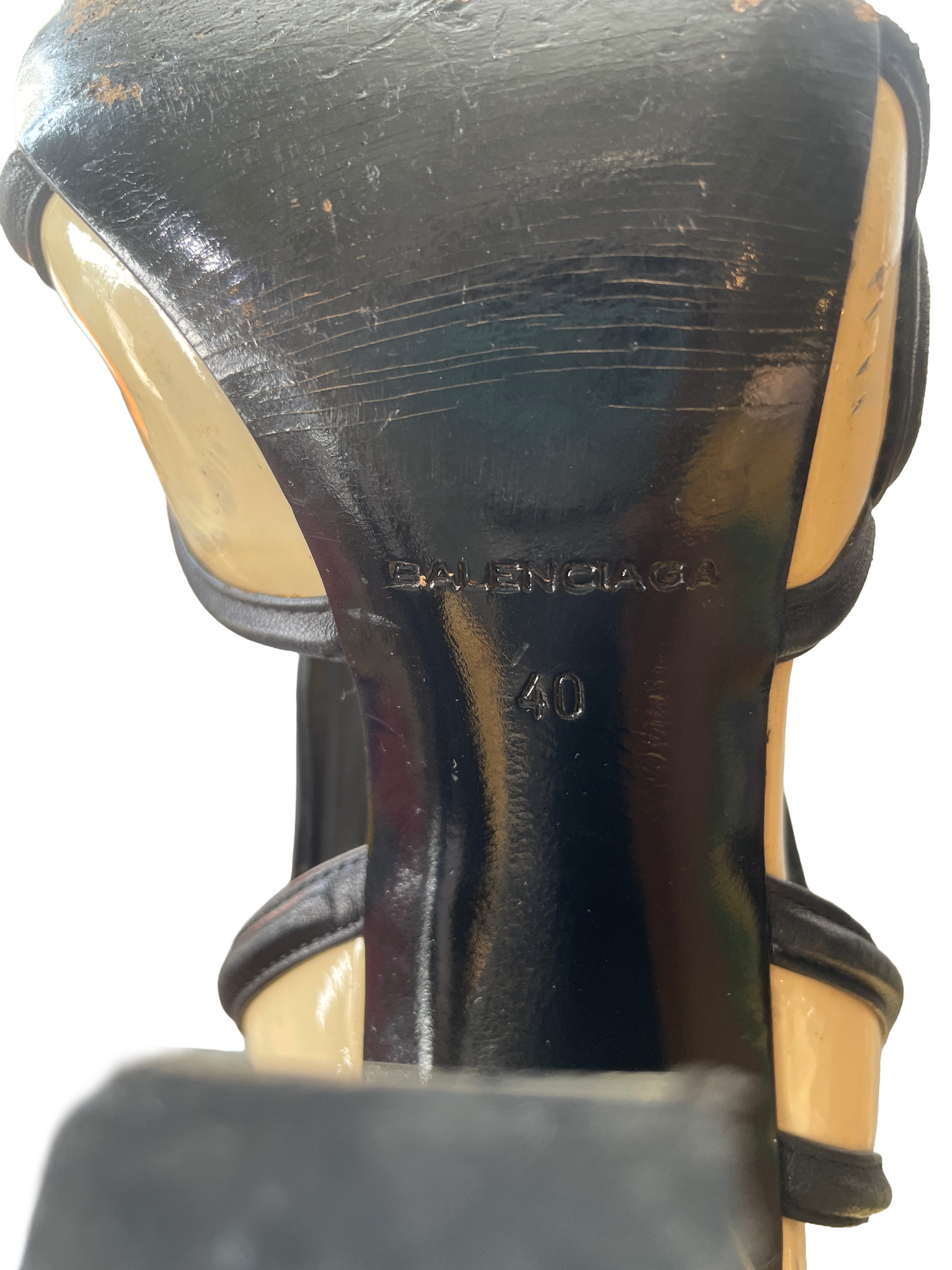 Balenciaga Black and Tan Heels 40. So sleek and super chic! These shoes make a definite statement with their unique design, almost cyber in look! Very futuristic and so so Balenci! In good condition with some light marks. Ready for many more fits and adventures! Size 40 or 8.5 W.